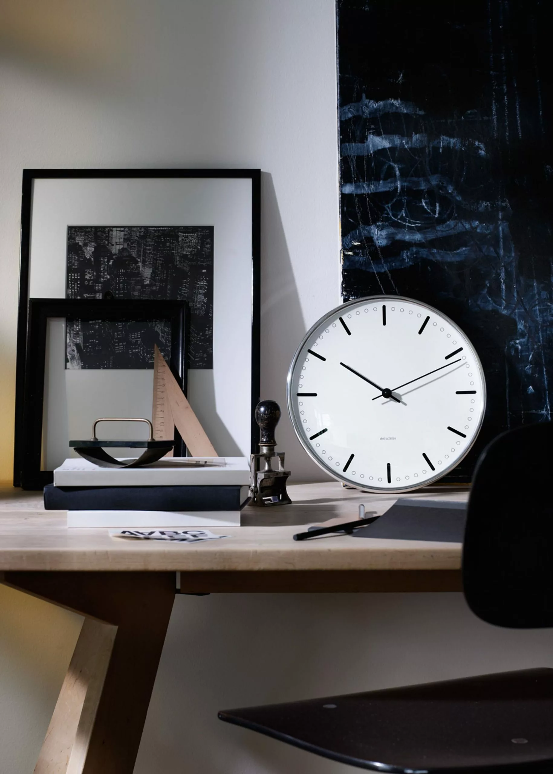 The wall clock is available in three different sizes and, with its classic and timeless design, will be comfortable in any room. The royal watch is in this beautiful dust blue.