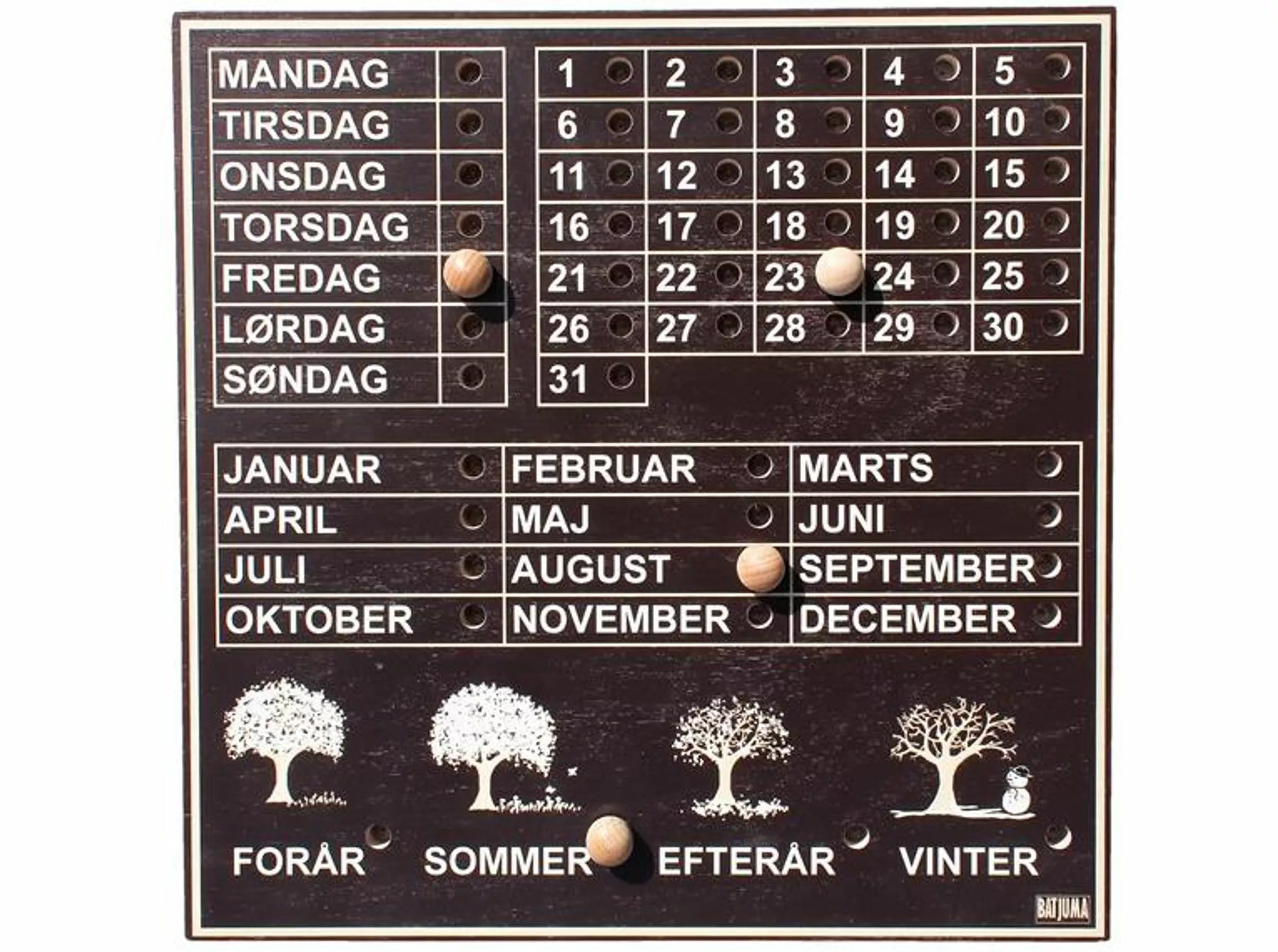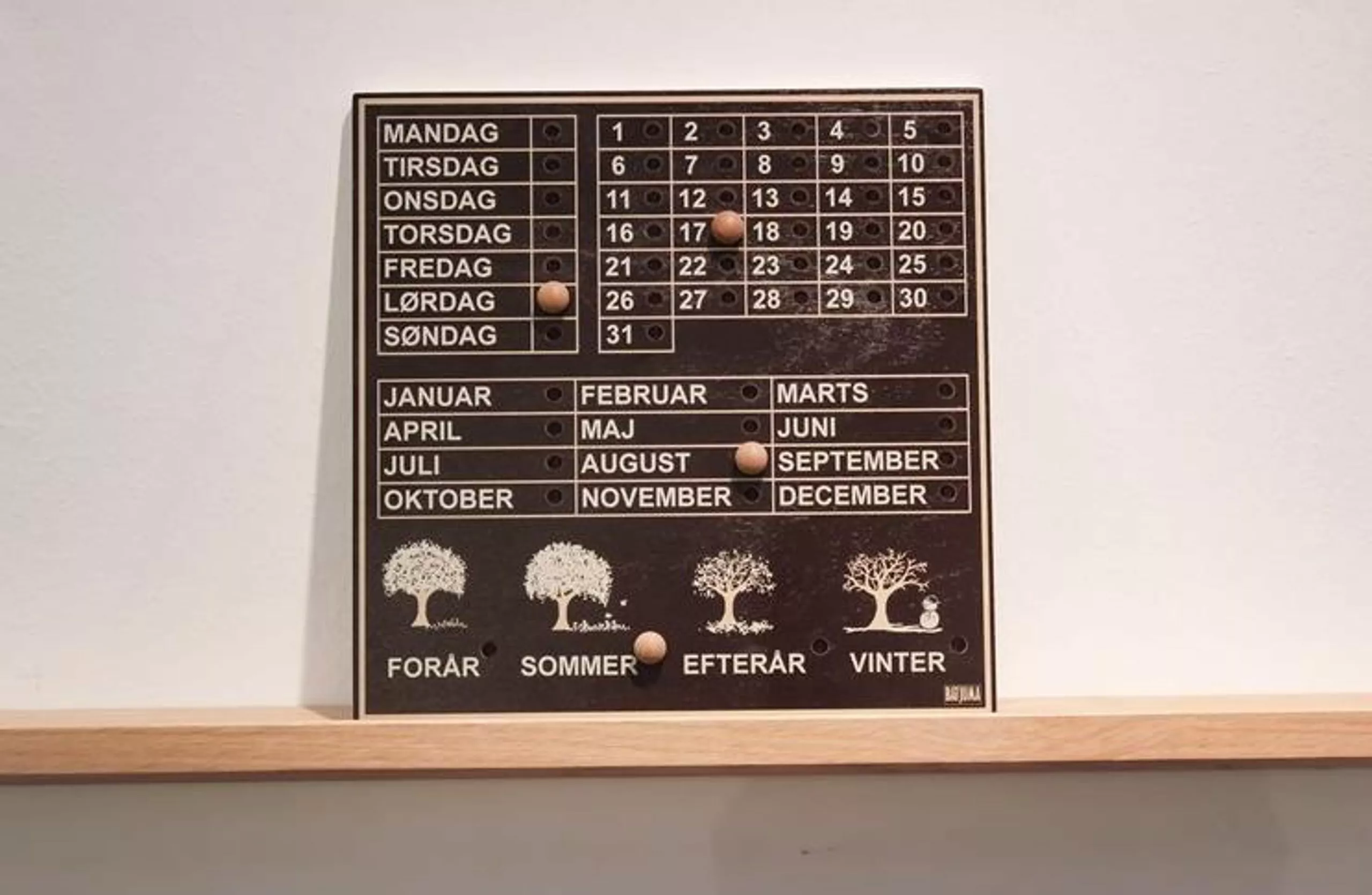 The pretty perpetual calender from the Danish company “BATJUMA Furniture” will fit in to every home and is the right solution for teaching your kids about Date and Seasons.