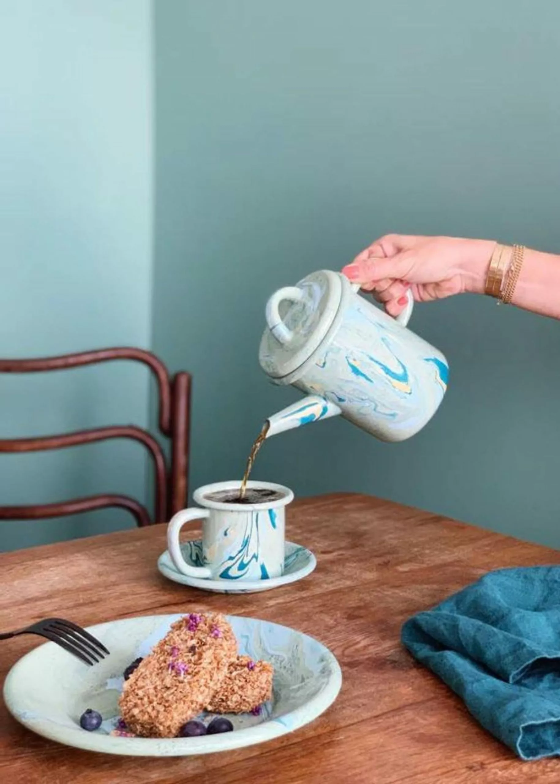 Marble jugs in beautiful colour combinations. All pots are handmade in Turkey. They are made of fused glass on hard steel and are therefore all unique.