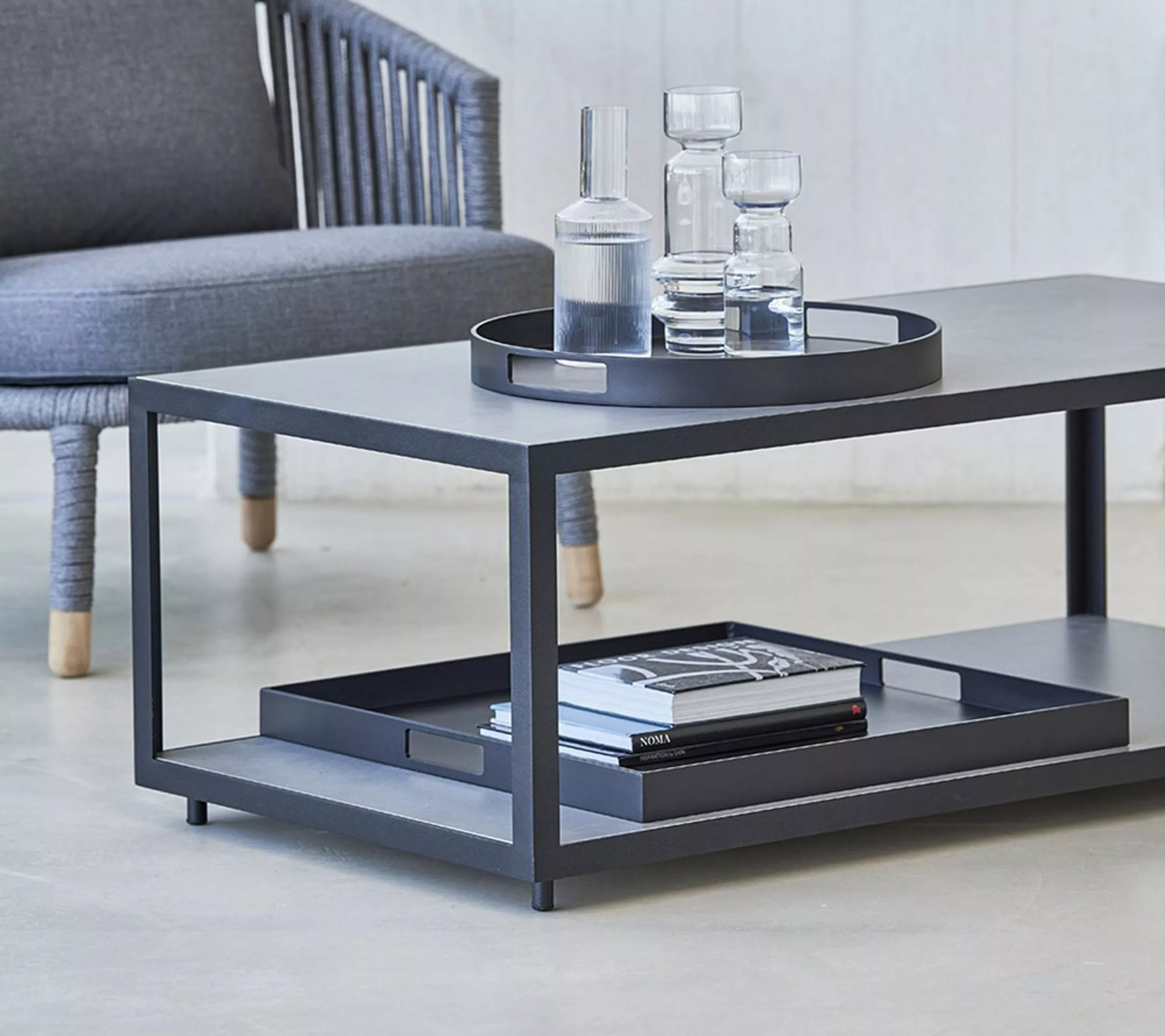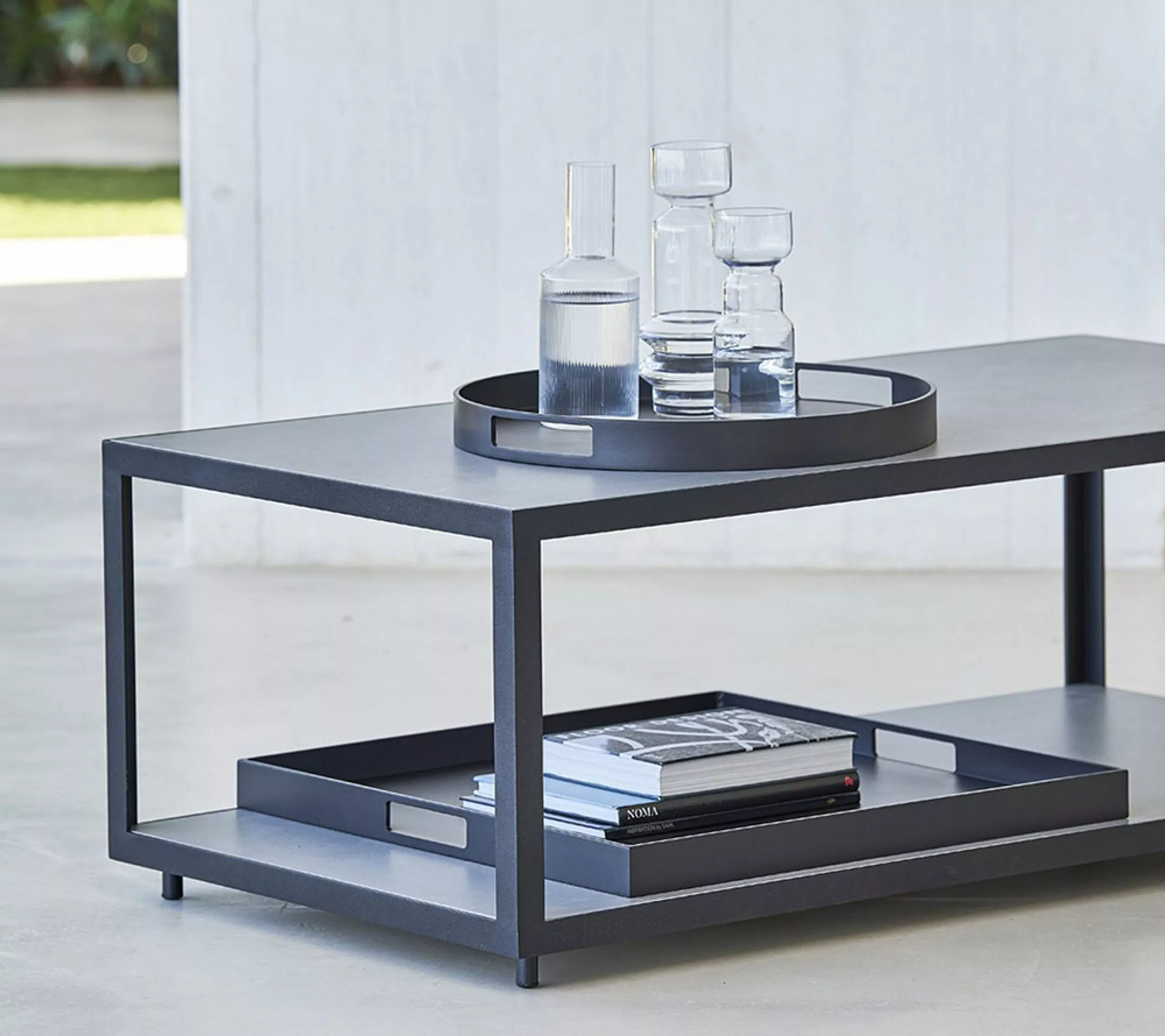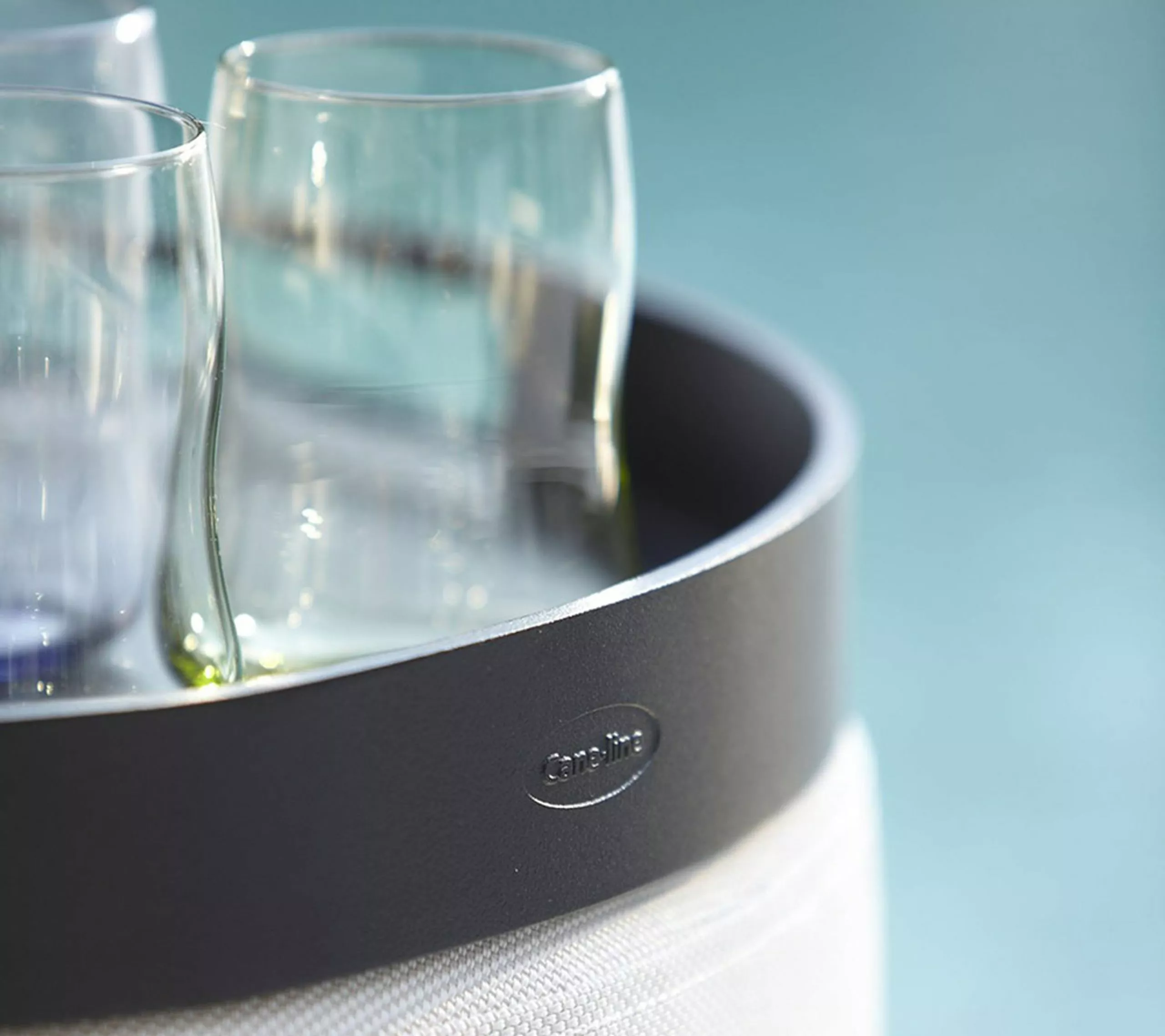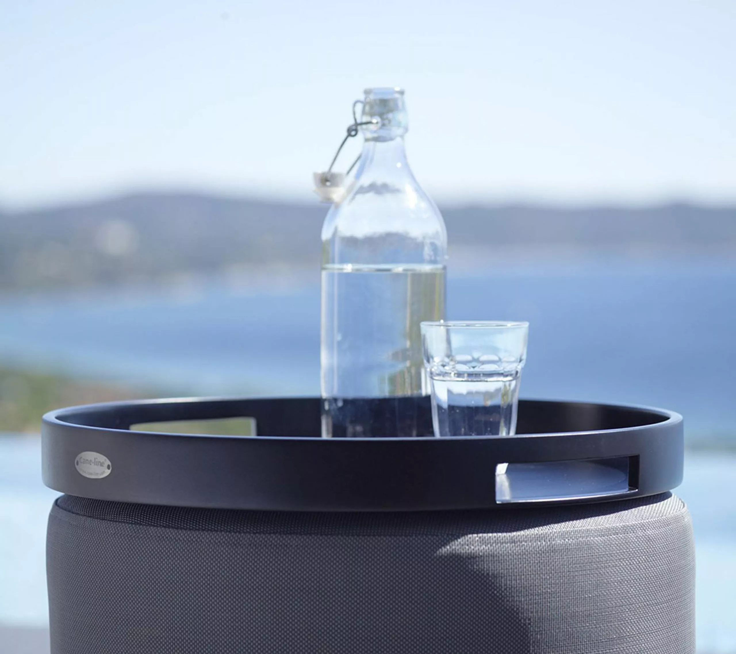 Club outdoor trays are designed by Cane-line. The trays are made of aluminum and come in two sizes. The round tray fits perfectly with the poufs from Cane-line. The square tray can transform the Chester or Diamond footstool into small, practical coffee tables. The trays can be left outside all year round and require minimal maintenance.
