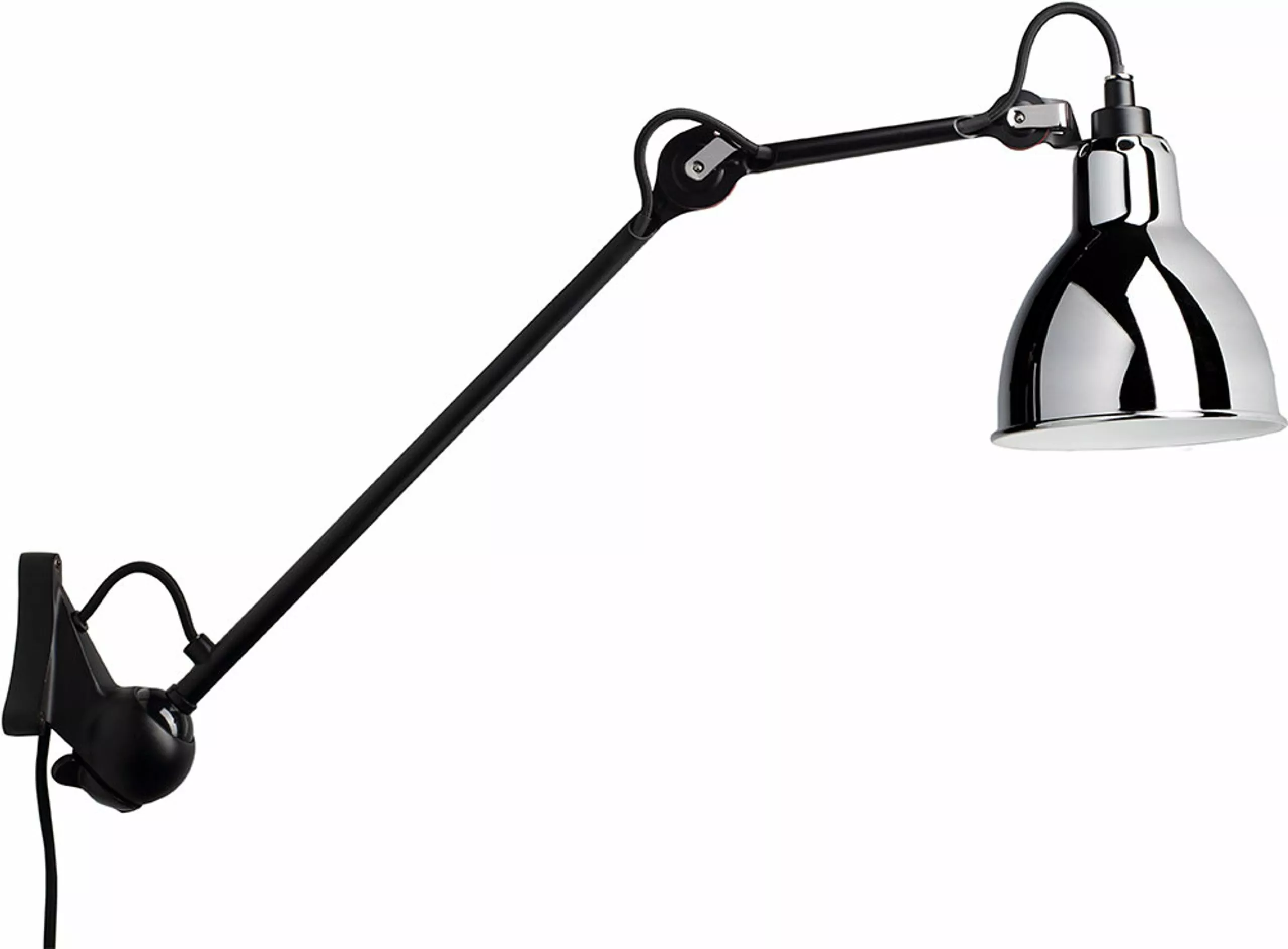 The N°222 wall lamp was designed by Bernard-Albin to be the perfect functional lamp. The steel lamp head can be adjusted, the central arm can be tilted down and up, as well as rotated 360 degrees out from the wall. Use the lamp at your desk, in hallways, in the entryway or next to your bed.