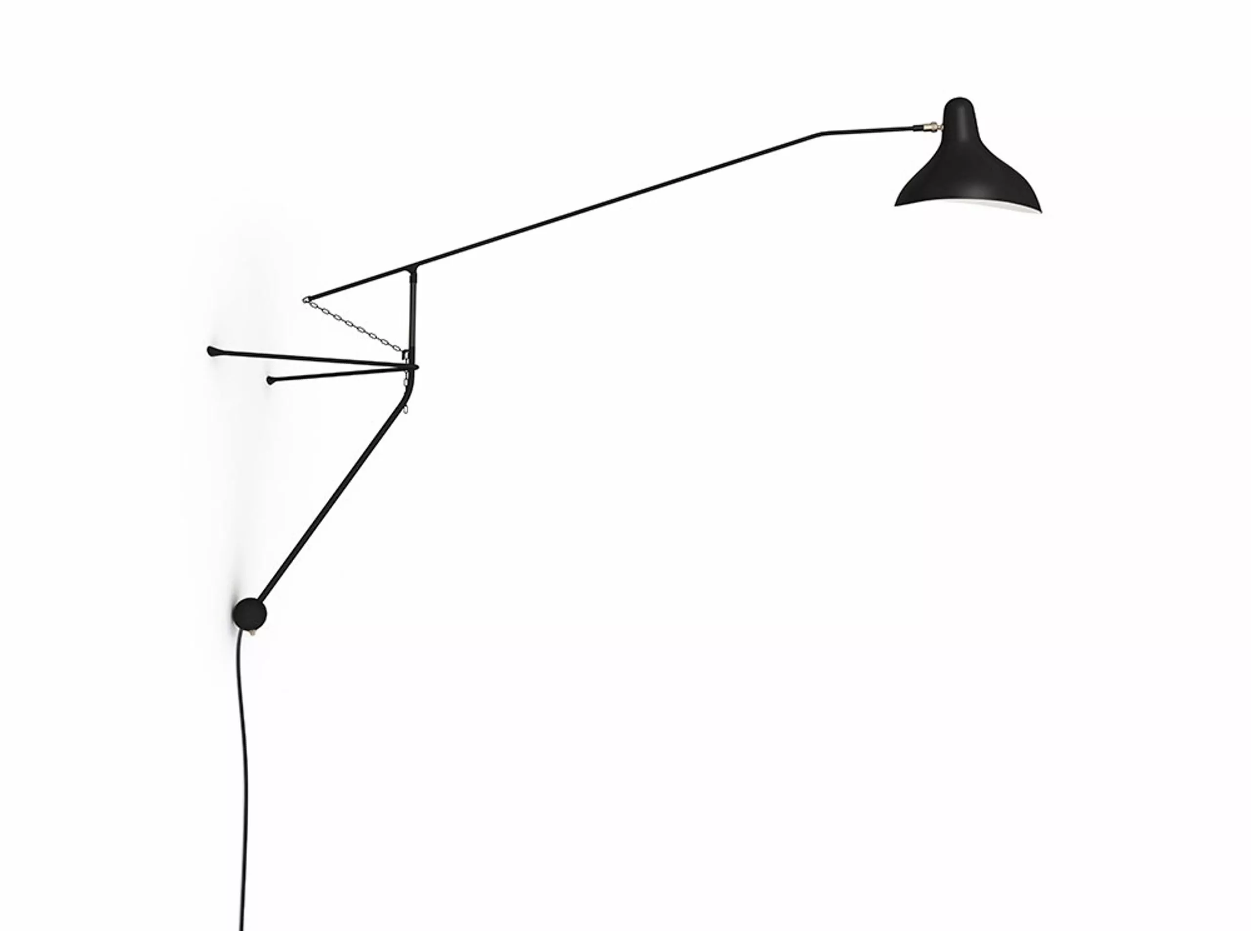Mantis BS2 wall lamp is designed by Bernard Schottlander. The unique shape of the shade makes the wall lamp stand out beautifully. The lamp is perfect for when a more focused light is needed. Therefore, you can ideally place the lamp on the wall in a cosy reading corner or above a desk.