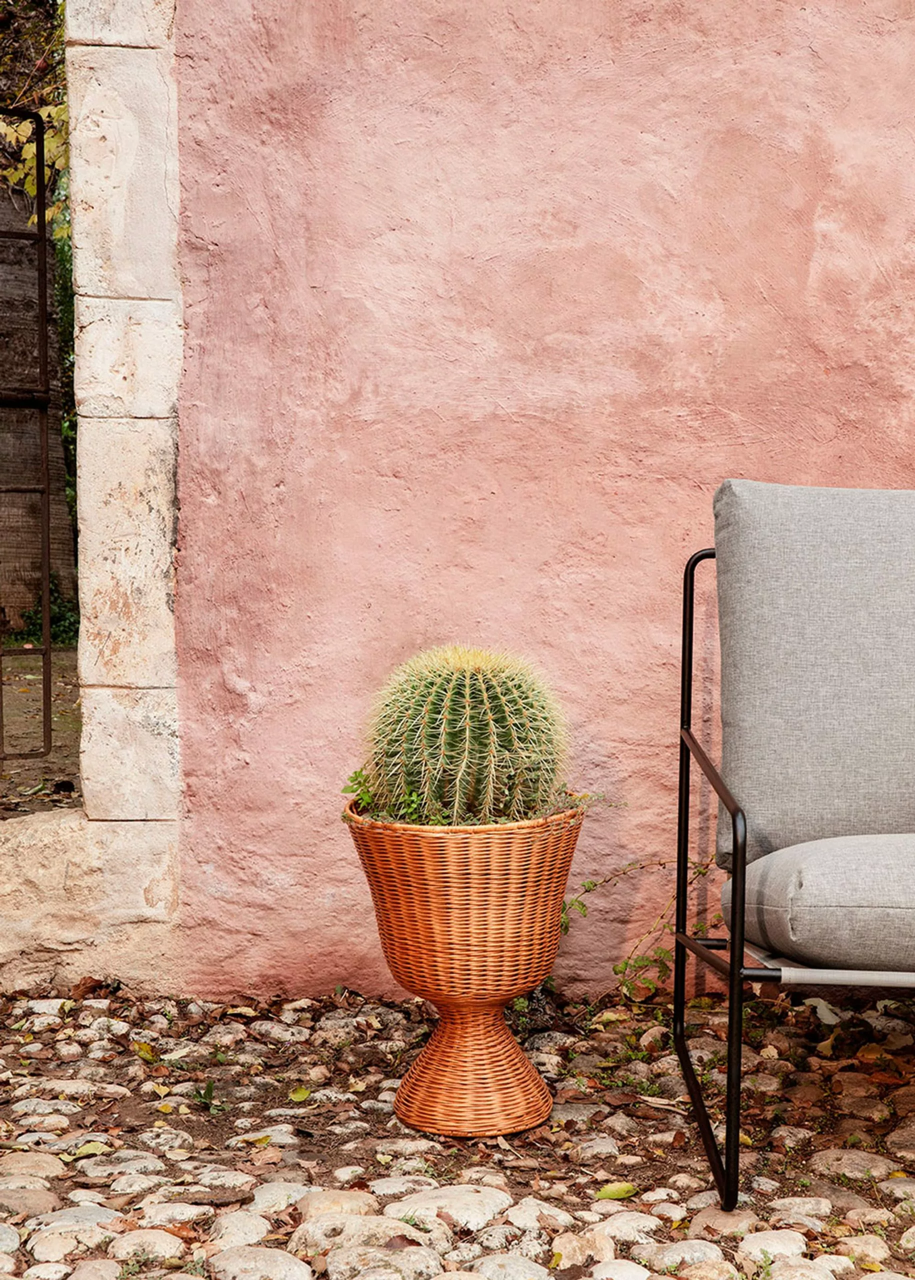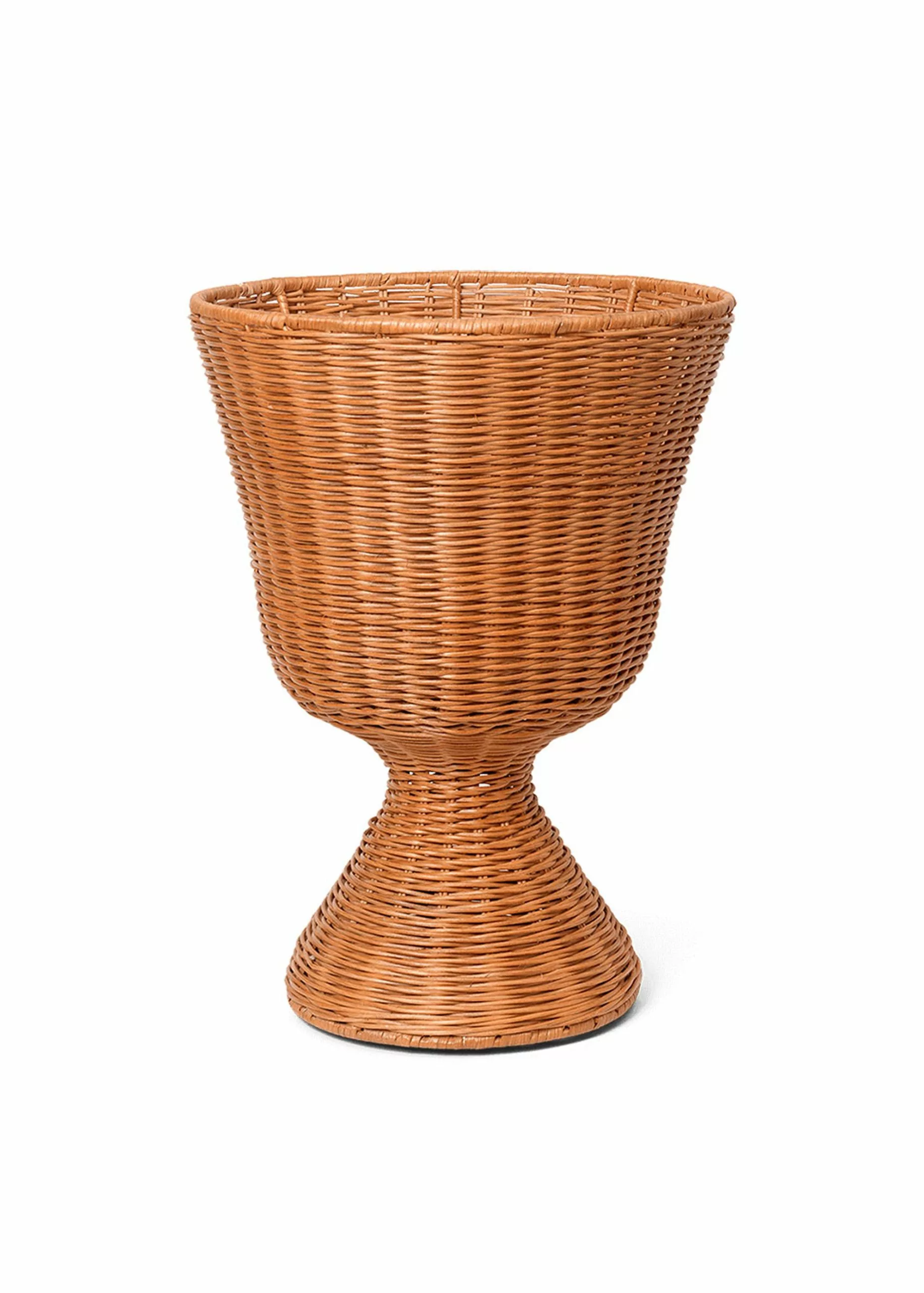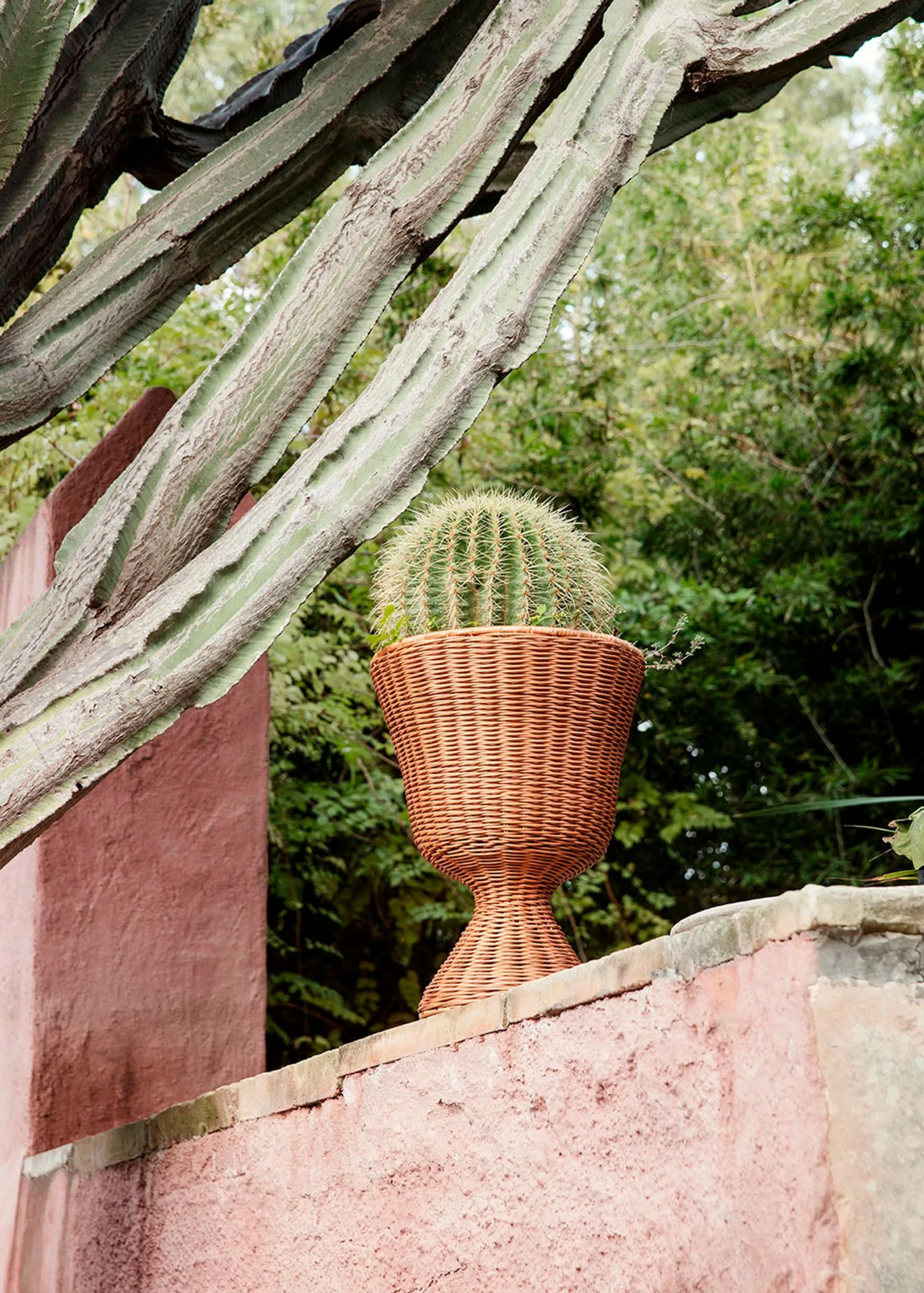 Designed as a pedestal, the Agnes plant stand is a decorative way to raise and display your favourite plants. The plant stand adds character and tactility to any space. The plant stand is hand woven and made from natural rattan with an iron structure, giving the elaborate container a unique and handcrafted look.
