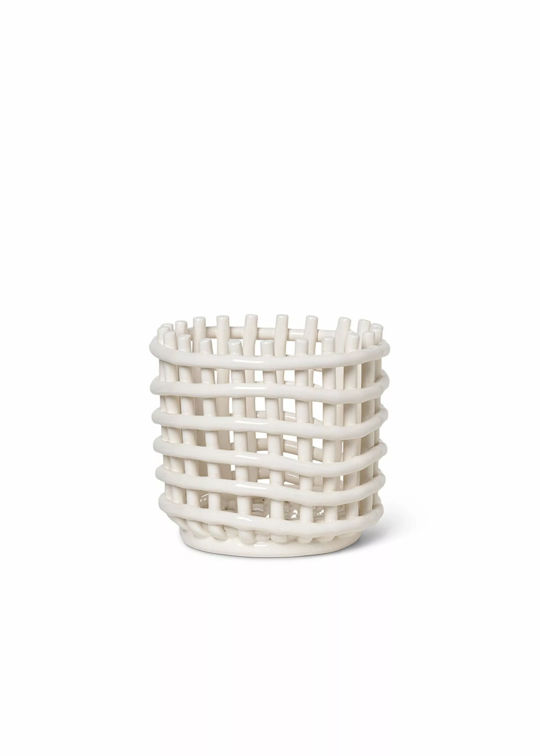 Beautiful handmade wicker baskets in ceramic from the Danish ferm living.