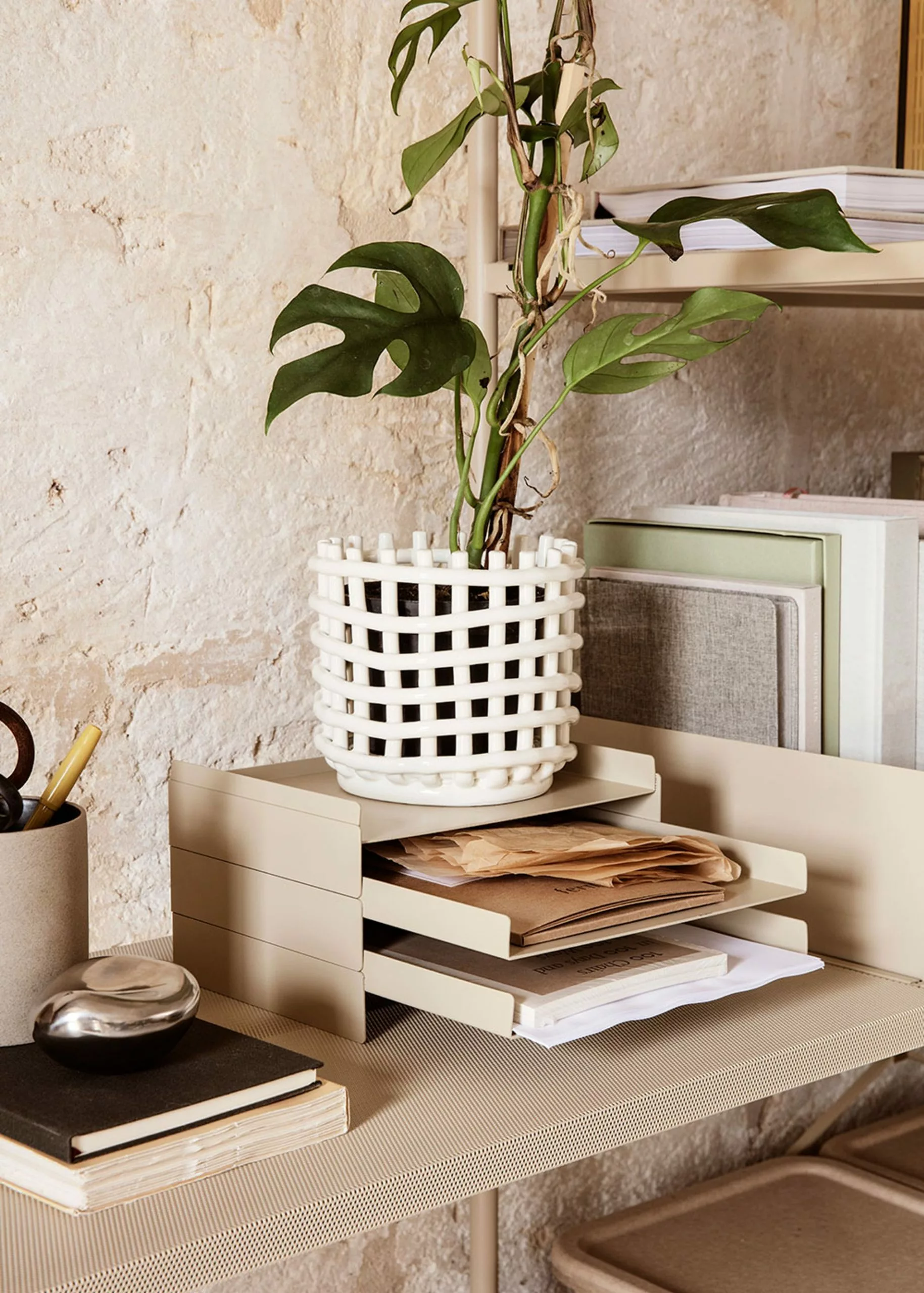Beautiful handmade wicker baskets in ceramic from the Danish ferm living.