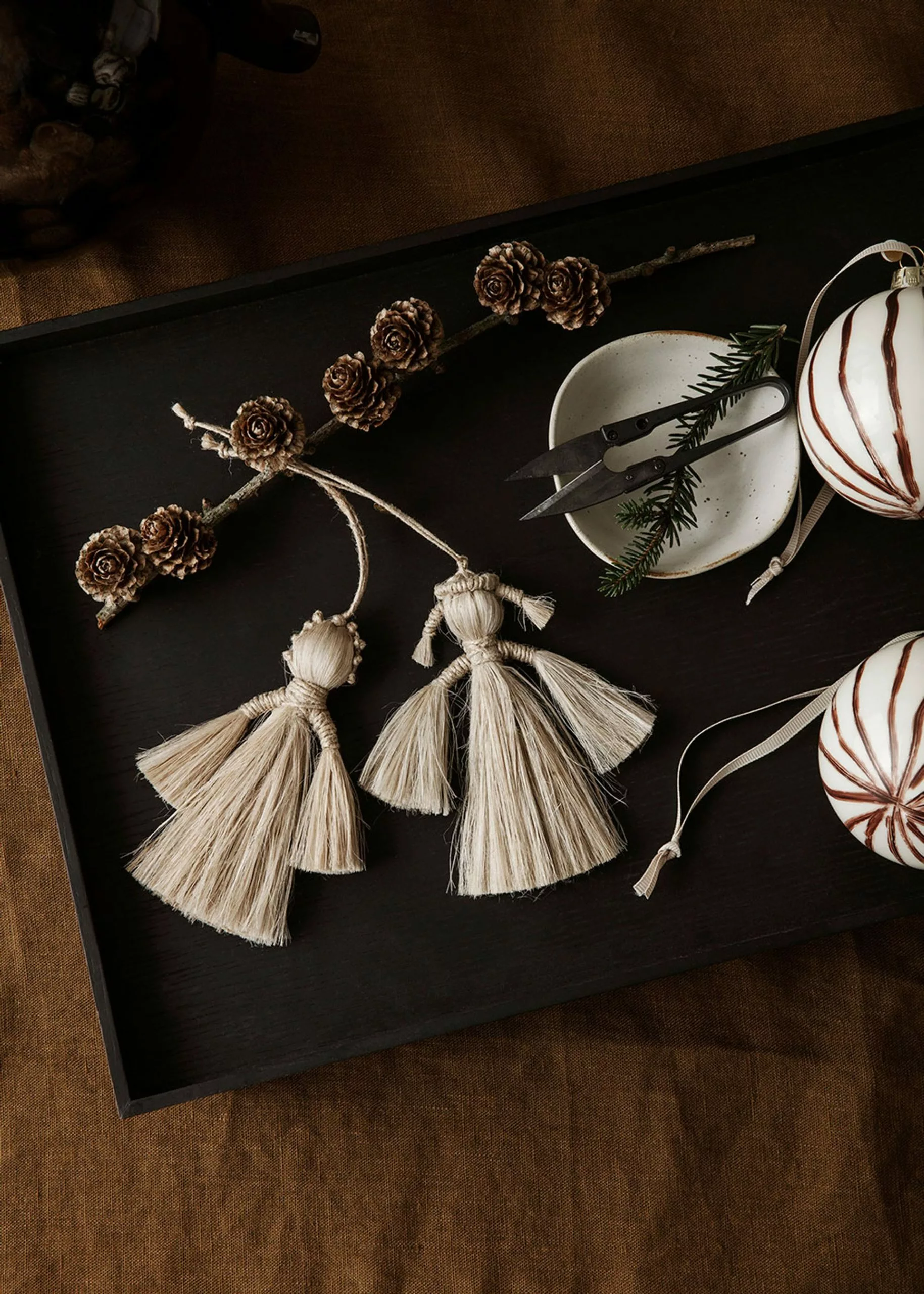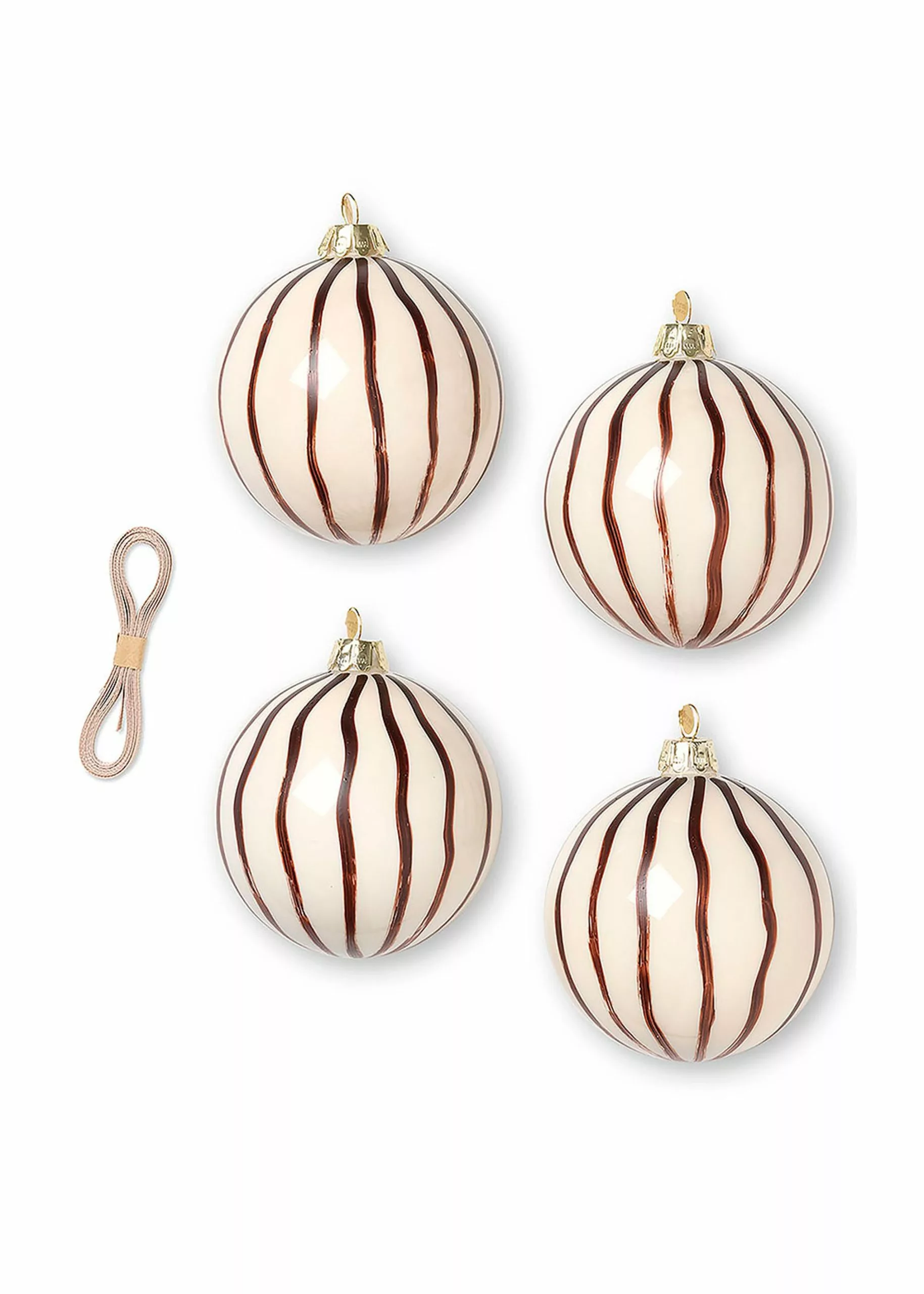Let the beautiful hand-painted Christmas baubles hang and decorate the annual Christmas tree. The unique Christmas baubles from Ferm Living come in sets of four and are available in two different colour combinations. As each bauble is hand painted, variations may occur in the products, making each bauble unique.