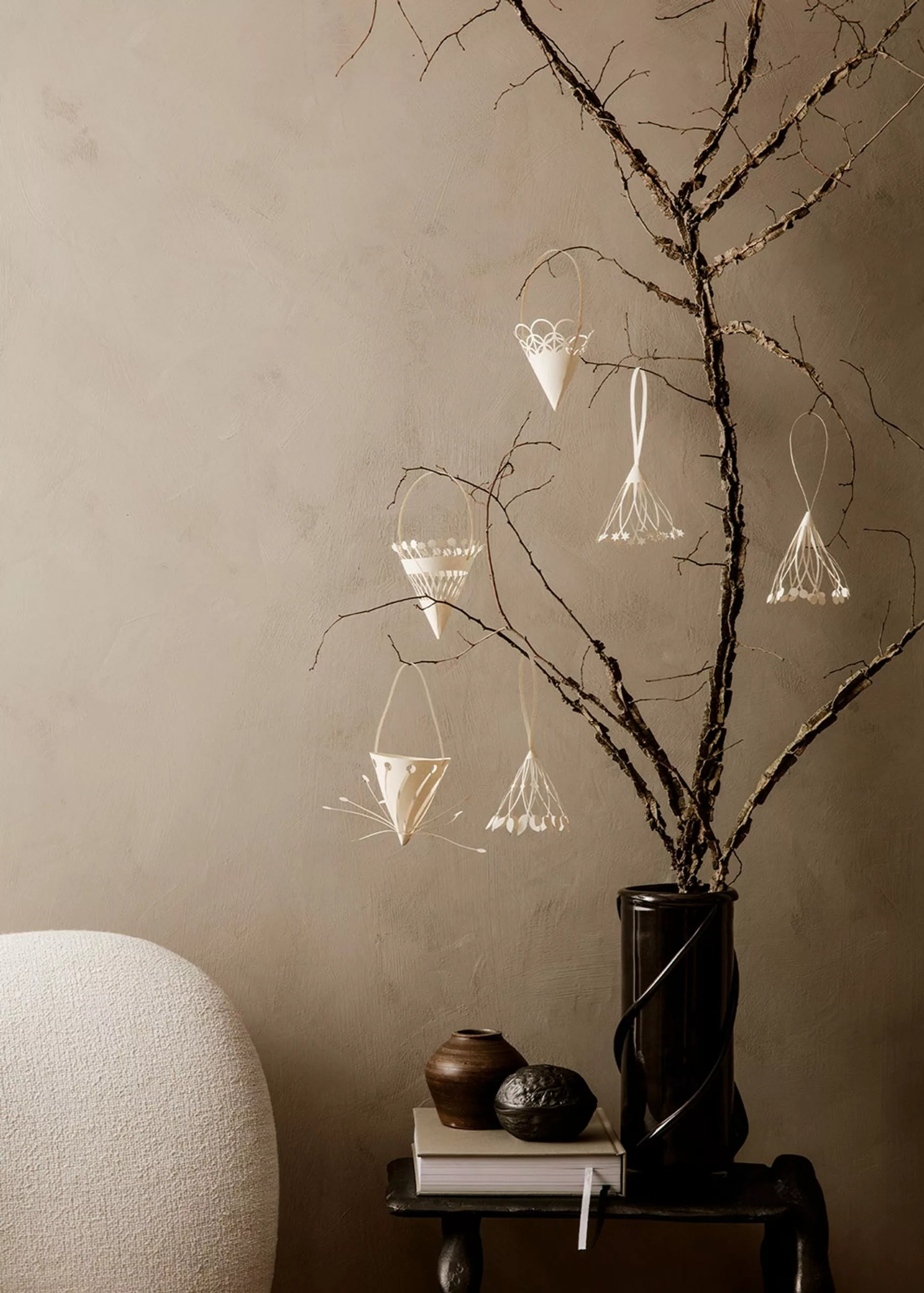 Add a cosy atmosphere to your Christmas decor with these elegant Christmas paper hangers. Inspired by the nostalgia of family-made paper decorations, these beautiful hangers create a detailed new look. The delicate pieces have been laser cut and carefully hand folded. Let the beautiful shapes make their mark and adorn your Christmas decor or hang them from branches or hooks throughout your home. The ornaments come in a beautiful storage box, so you can safely store the beautiful hangings, for use year after year.