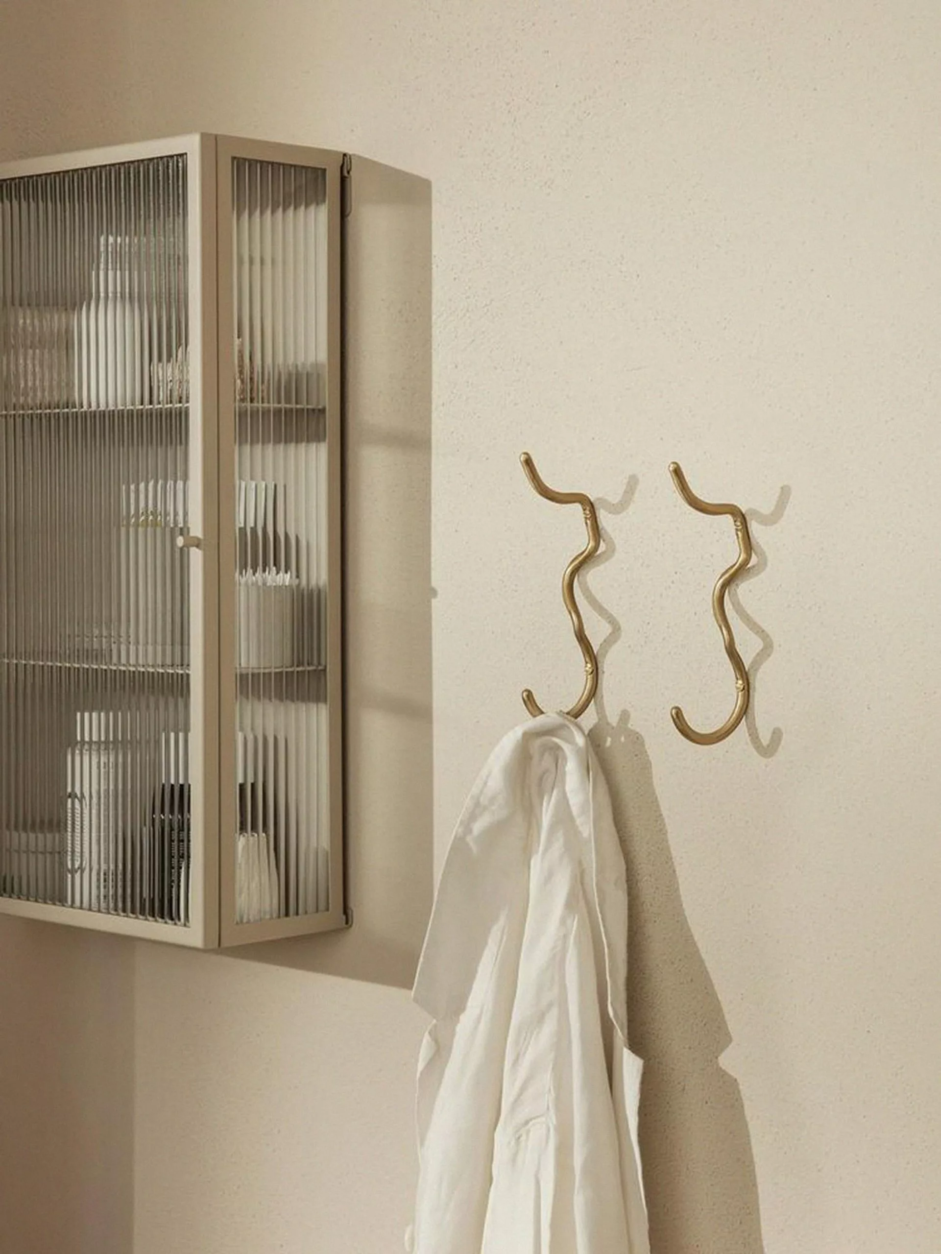 The Curvature series by Ferm Living embraces a range of hooks and hangers in matt brass. The series is characterized by their organic forms where each hook is hand-shaped into their own unique piece. The whimsical curves contrast with the solid material and form a playful, functional addition to any bedroom, bathroom, hallway or kitchen.