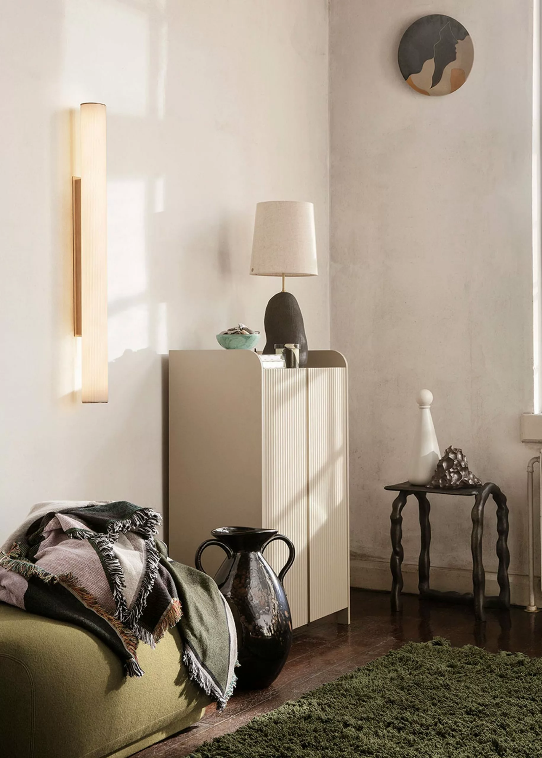 This beautiful and modern wall lamp from Ferm Living emits a soft, diffused light into the room. The Vuelta wall lamp is a combination of textual complexity and modern simplicity in one design. The lamp's design is cylindrical translucent opal glass with a beautiful grooved surface and a brushed metal finish. The wall lamp comes with an LED light source, which emits a fine light that can be regulated using the included remote control for dimming. The Vuelta wall lamp ensures that you have ultimate control over the mood of the room.