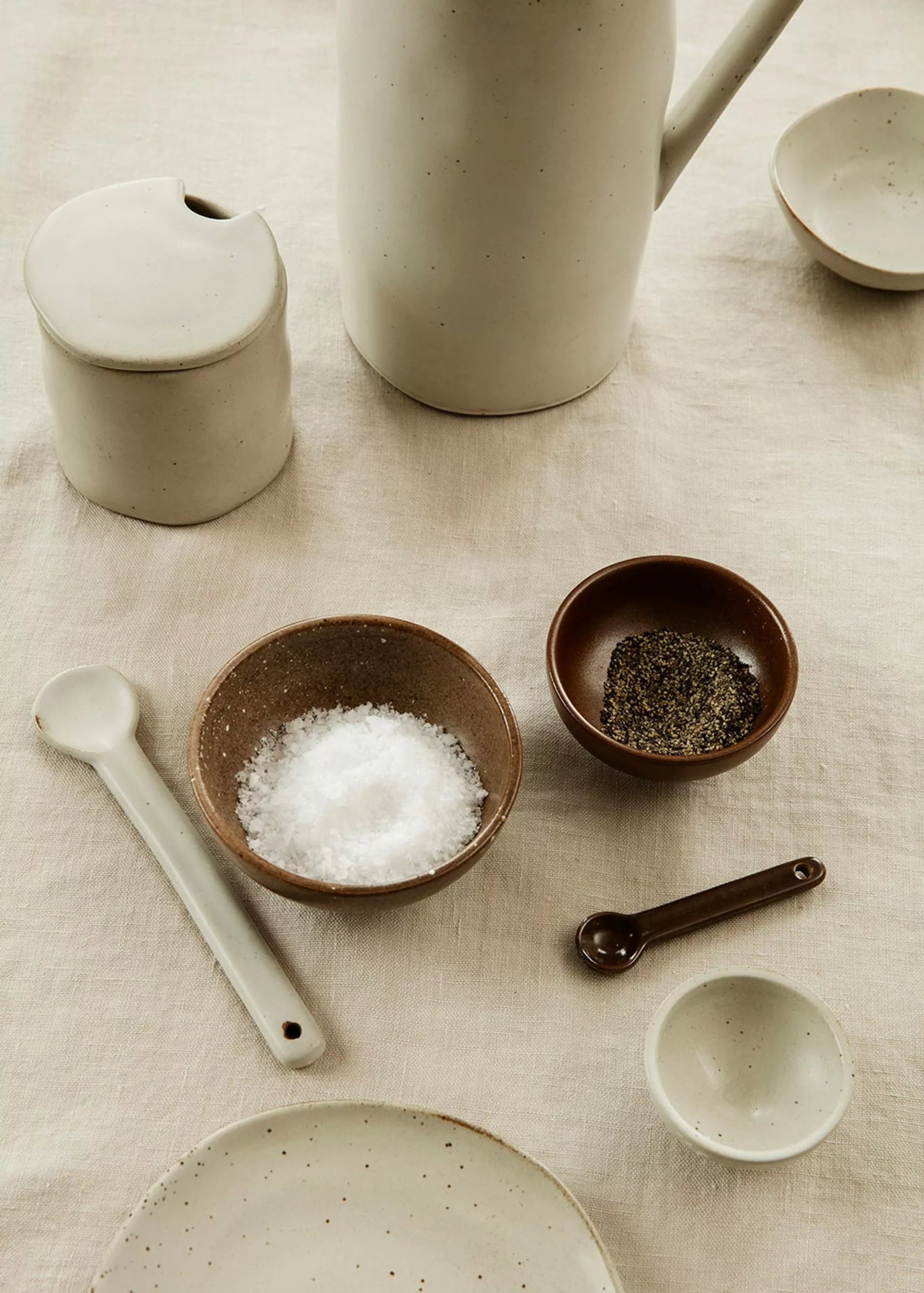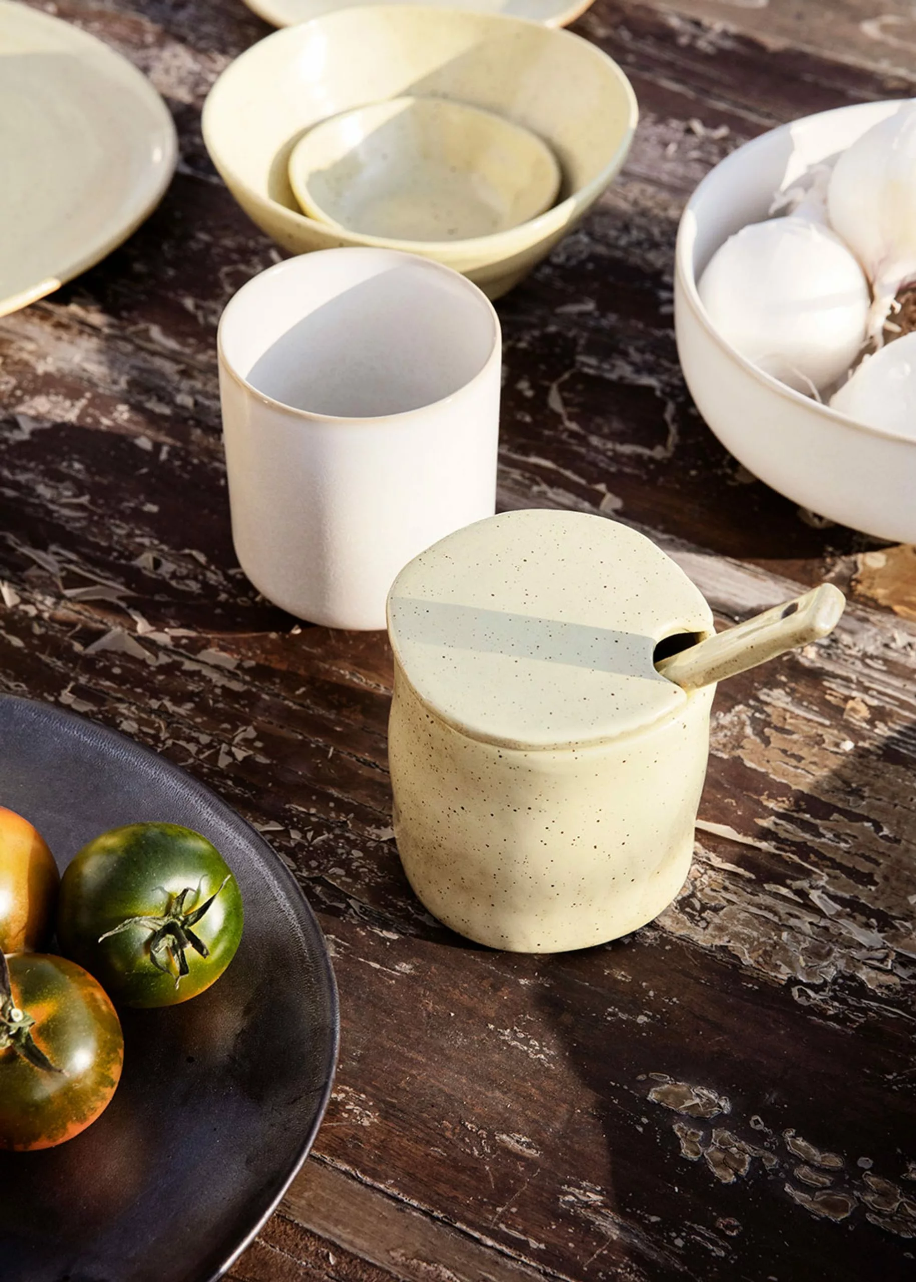 The beautiful and unique small jars with matching spoon from Ferm Living unfold in a casual and elegant way in the table setting.