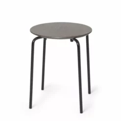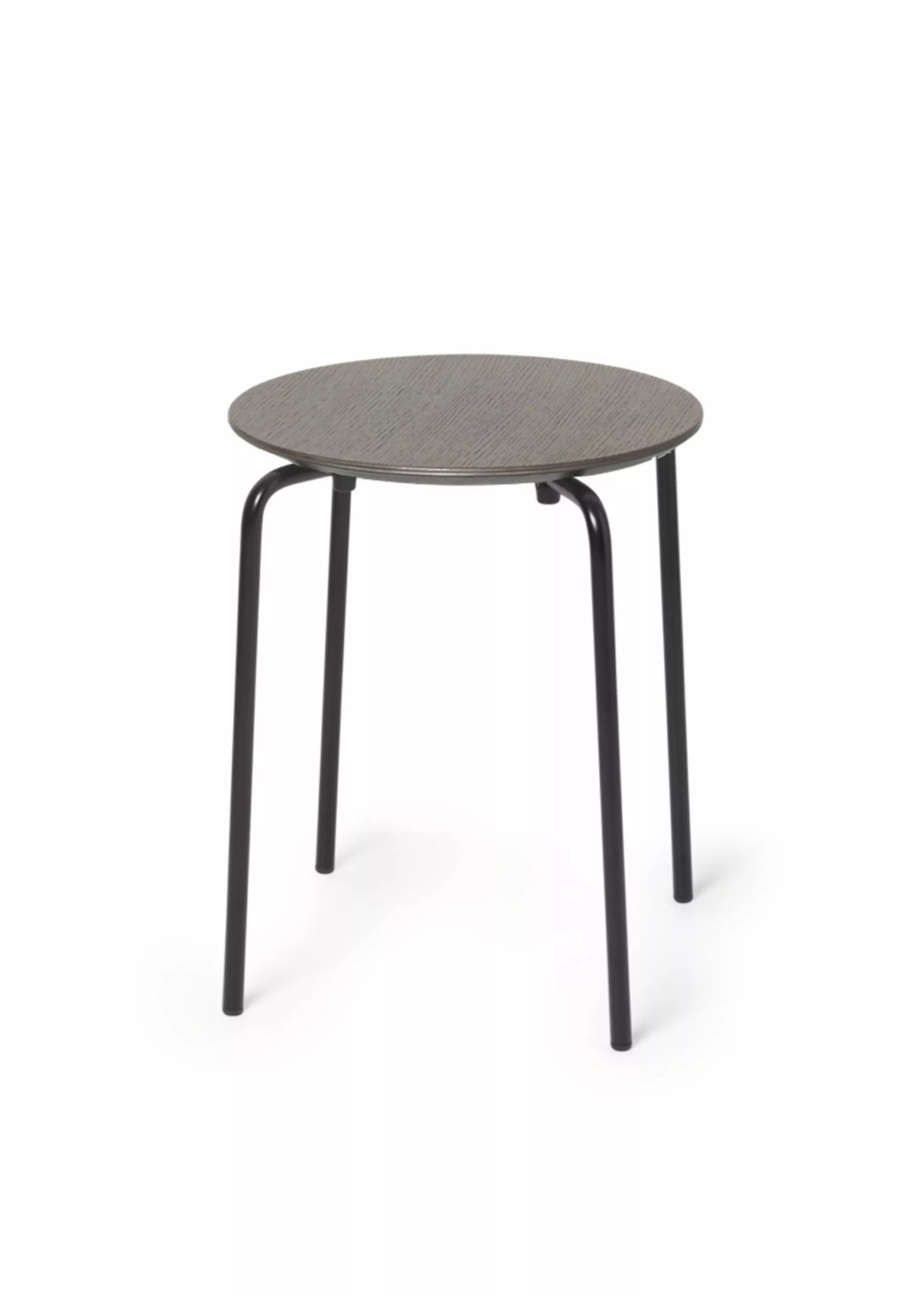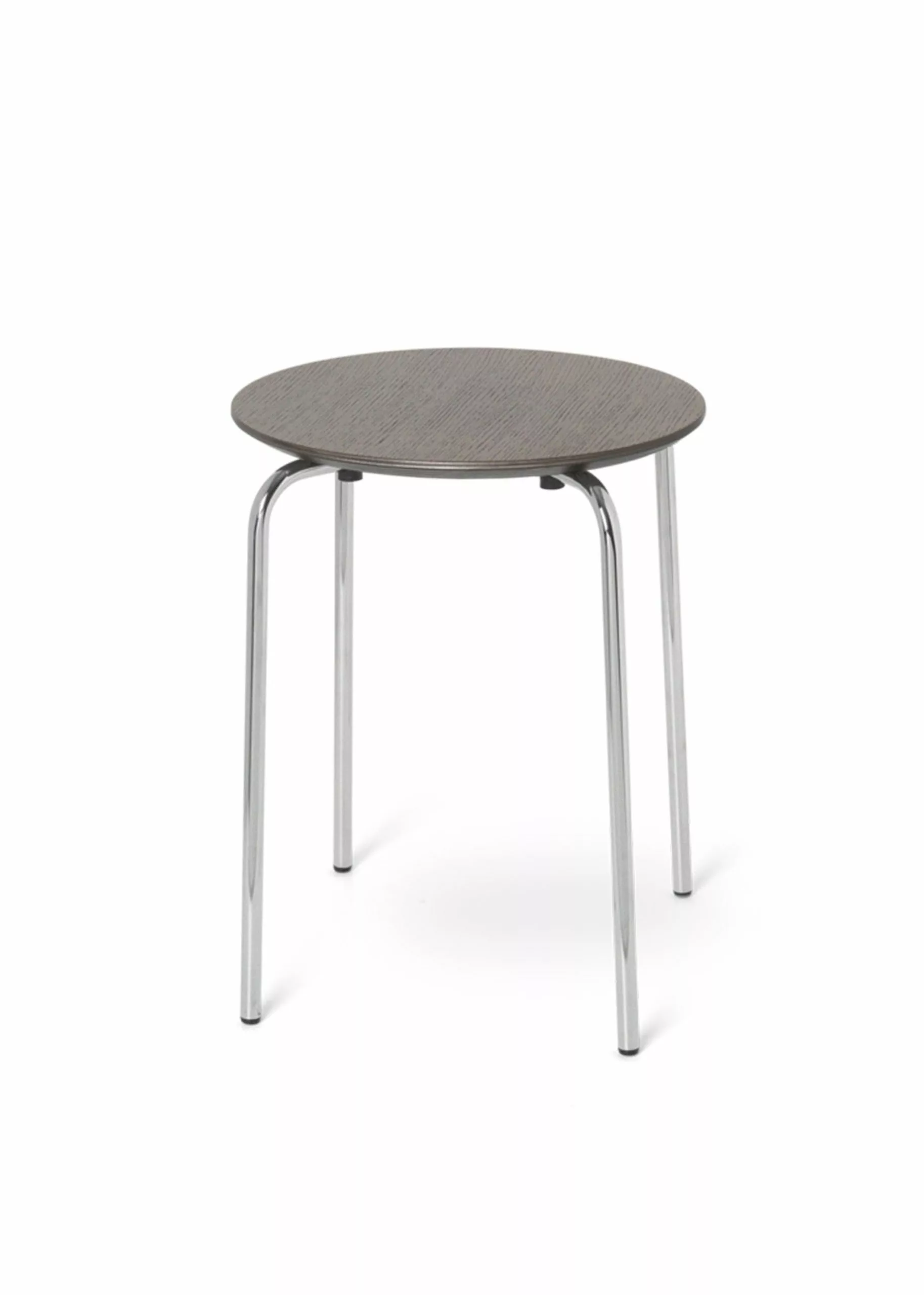 Ferm LIVING's stool in the Herman series is available in elegant and modern color games, contrasts and textures. Available with a seat in either stained oak veneer or lined with a layer of durable and sustainable linoleum on a classic powder-coated metal or chrome frame. This stackable stool, designed by Herman Studio, has a large oval seat.
