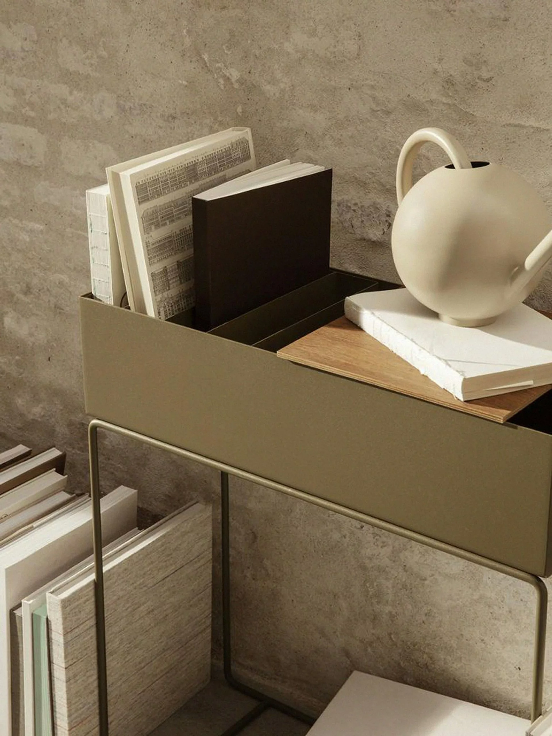 Practical storage boxes that are perfectly combined with the rest of the "Green Living" series from Ferm Living, with the minimalist design made of powder coated steel. The bent ends of the box make them easy to hang on the edge of the popular "Plant Box" from Ferm Living and open up new storage options.