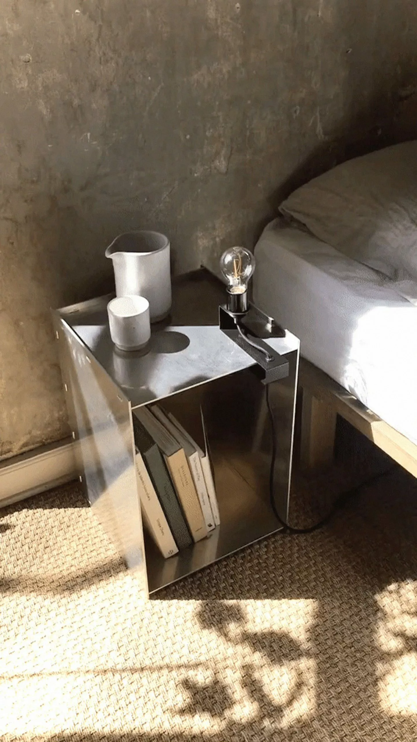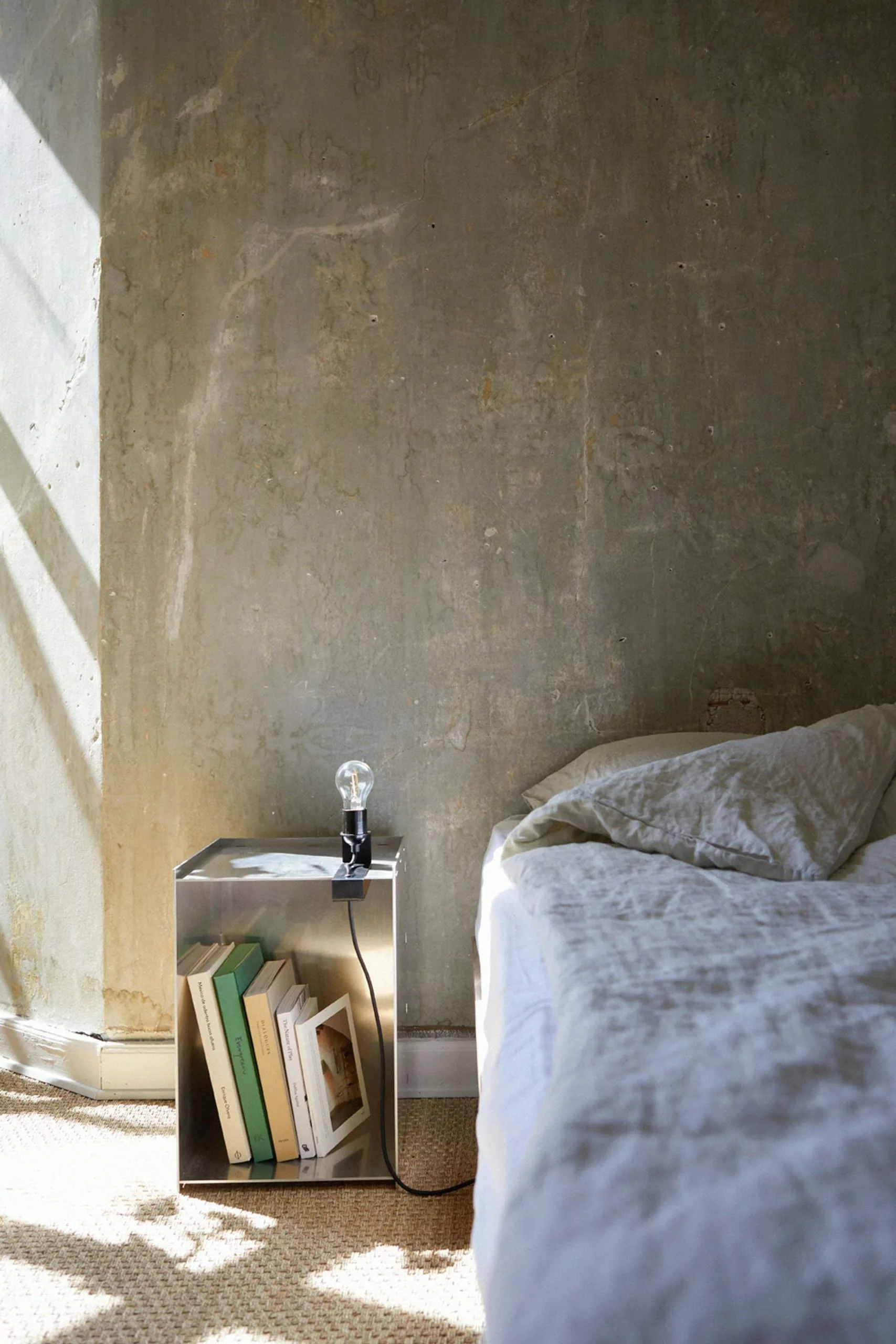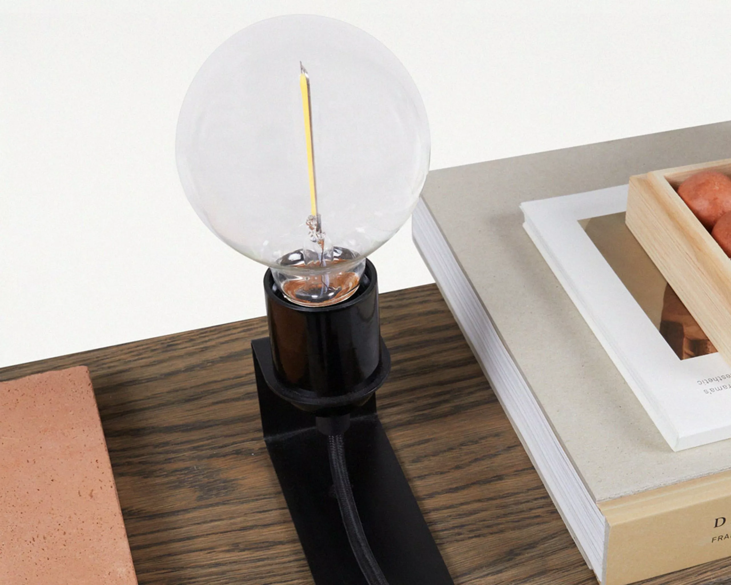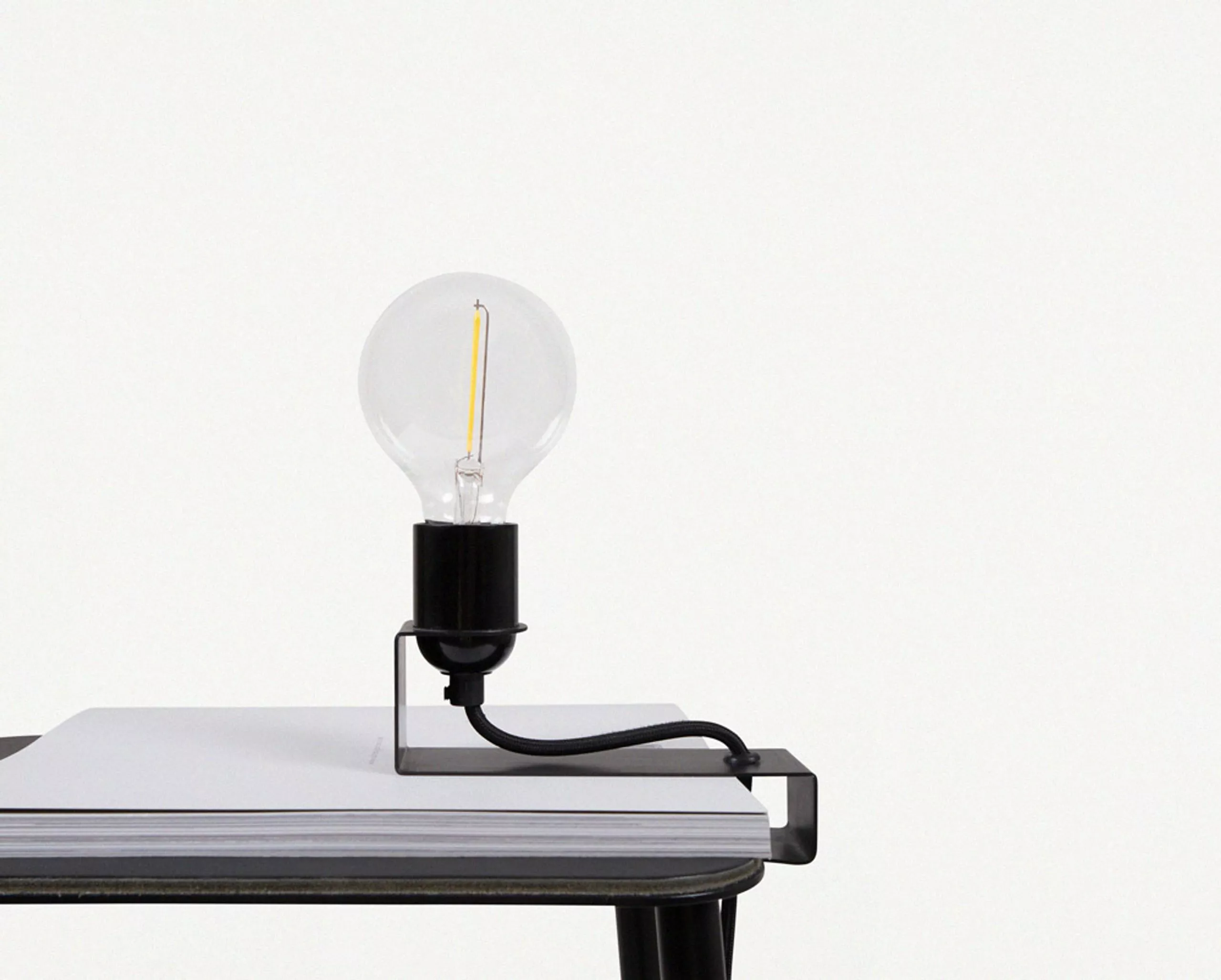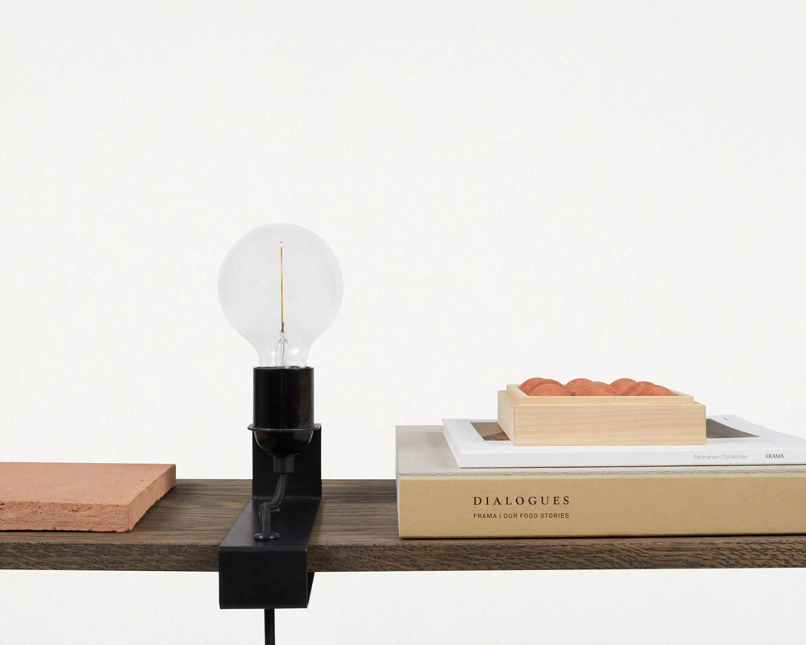 FRAMA's Clamp Lamp makes lighting flexible and practical, with a sleek minimalist design. The base of the lamp, made of rustic lacquered metal, is shaped so that it can be easily mounted on shelves, window sills or a stack of magazines. Complimented by an elegant bulb, the Clamp Lamp is perfect in any room and in any decor.