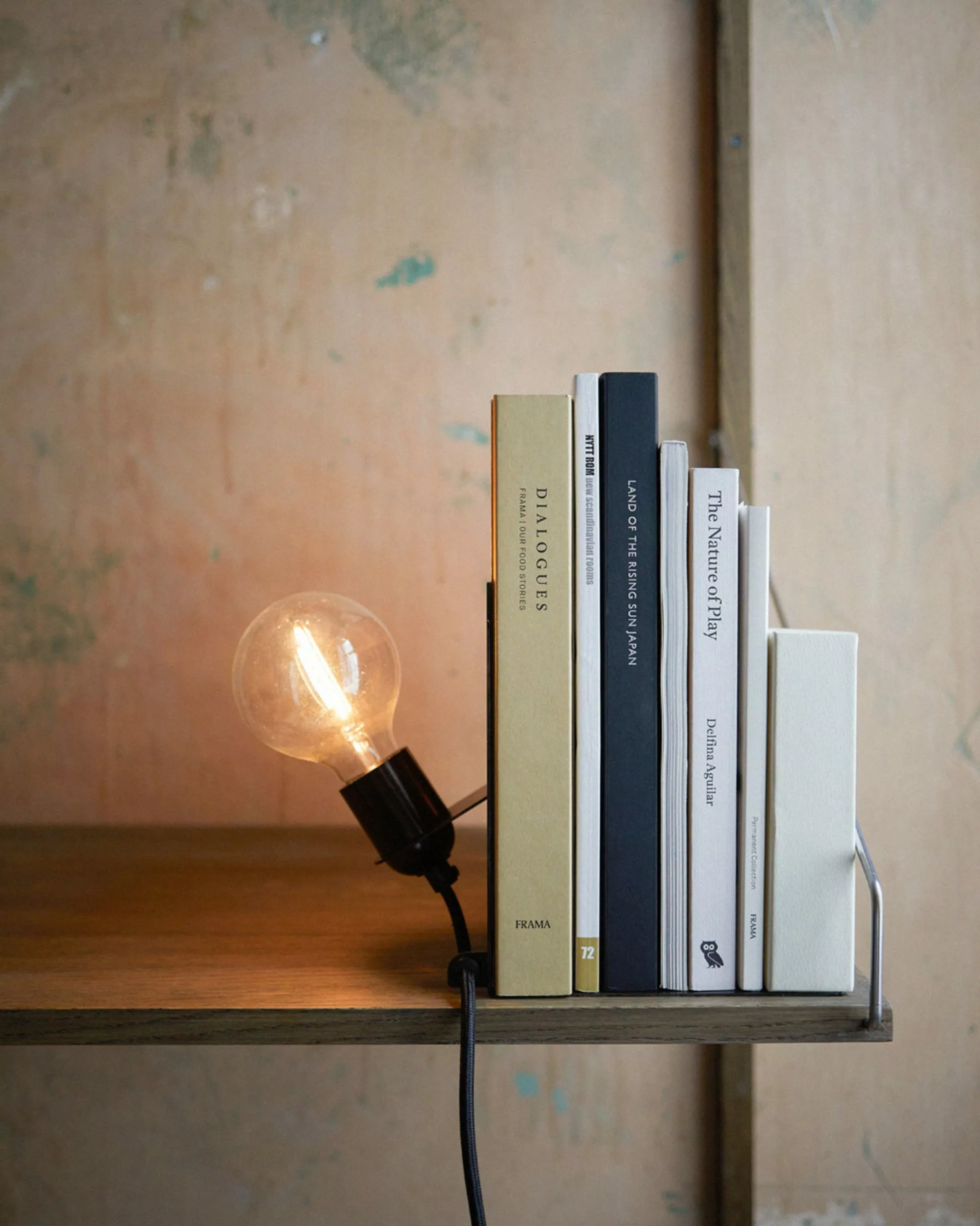 Library Lamp is created with a simple and minimalist design that combines function and aesthetics. The lamp is made of a single metal plate with a bend that creates an accountant and creates a space for a single bulb. Place the lamp at the end of a shelf or alone on a table to create the perfect reading corner.