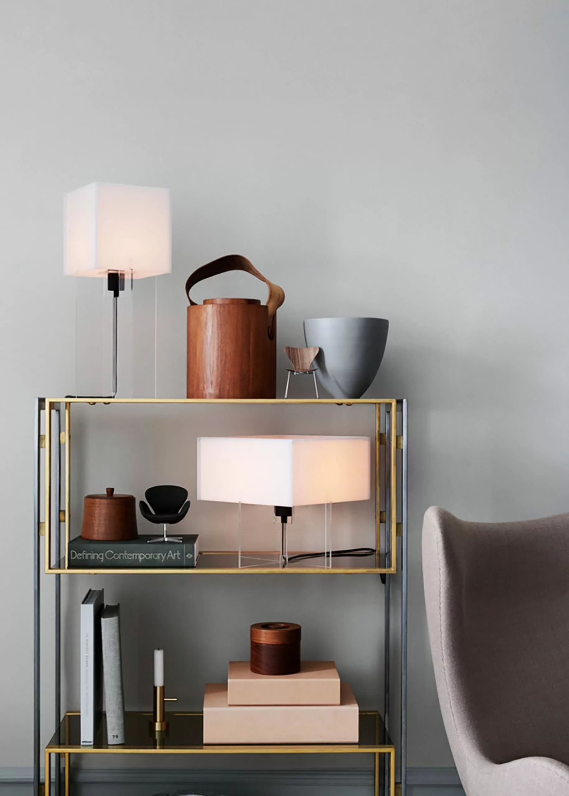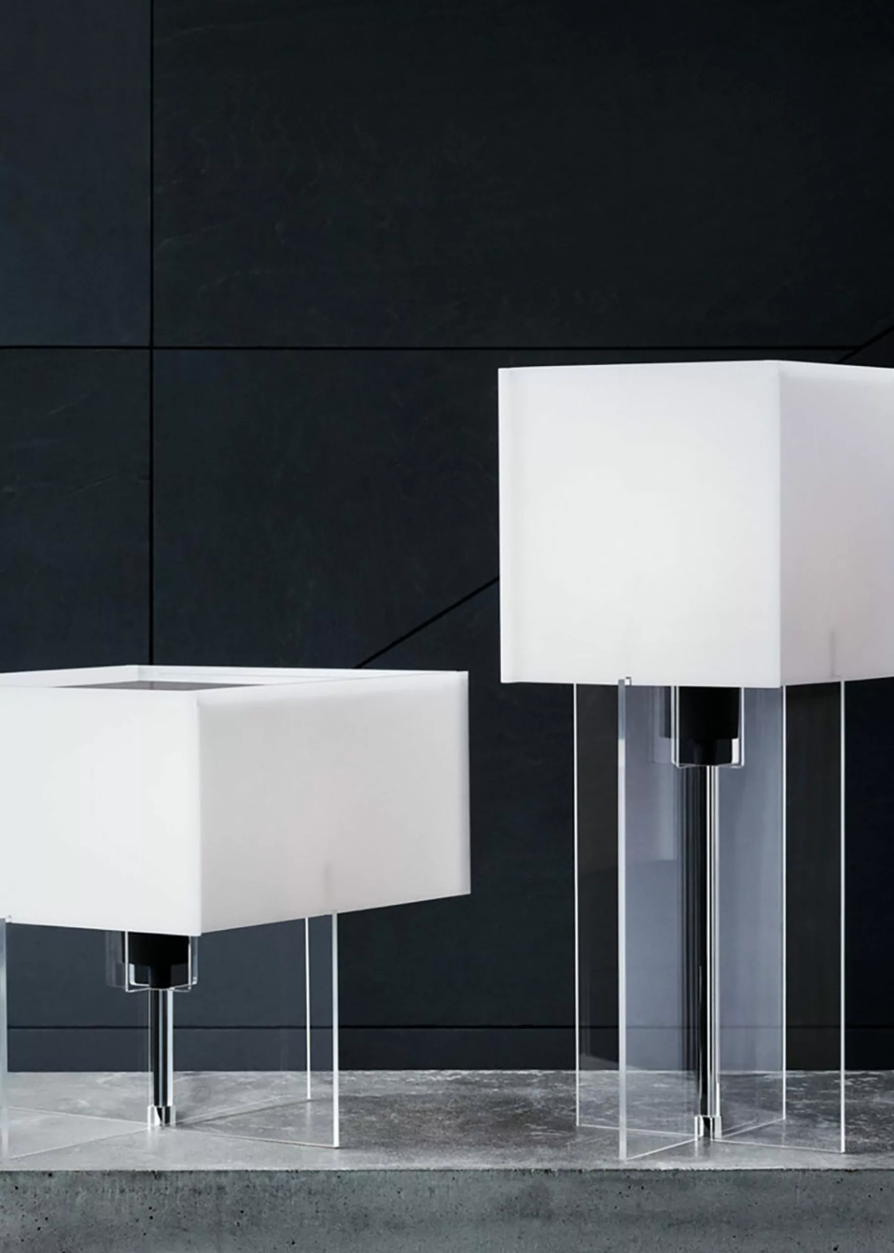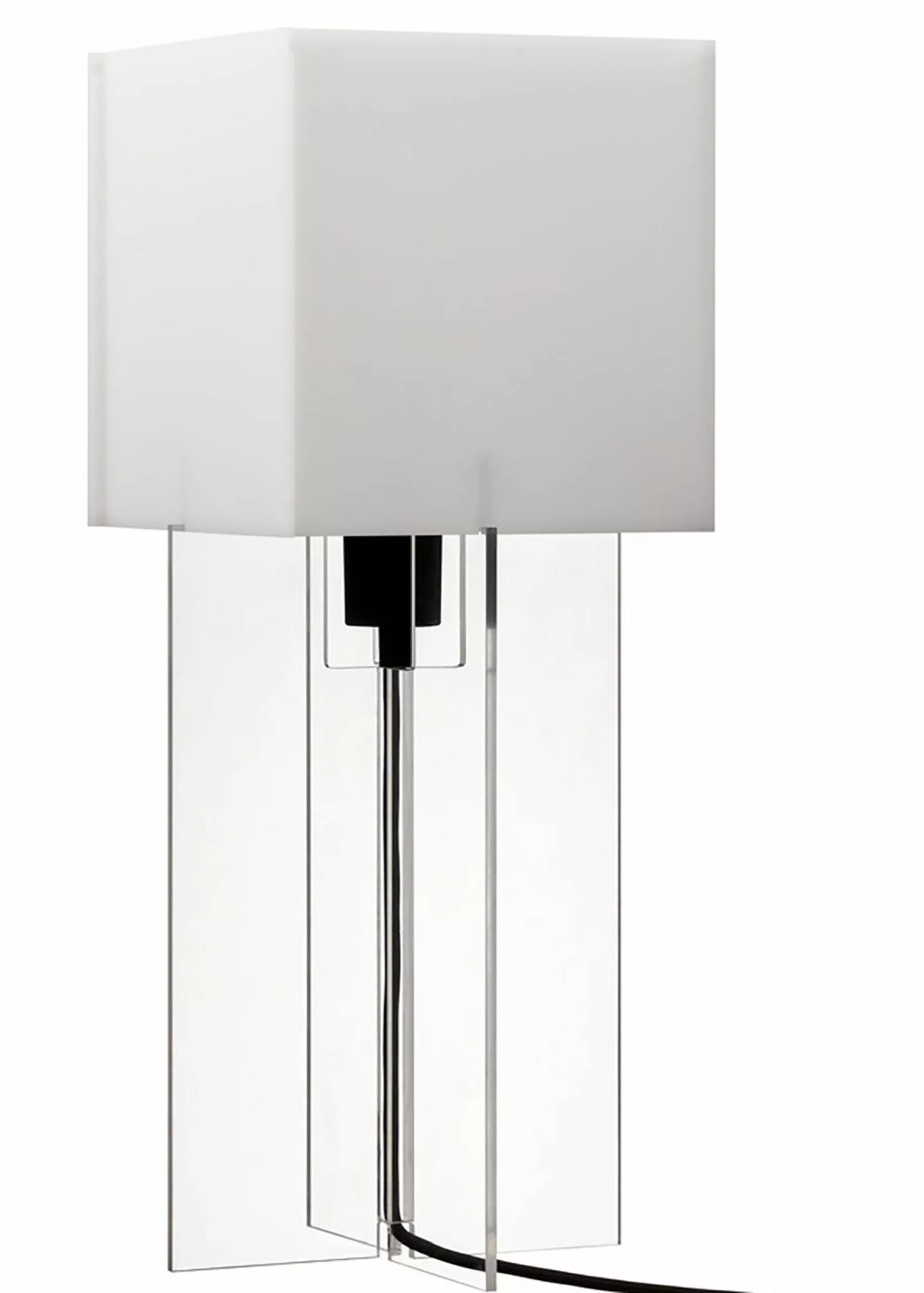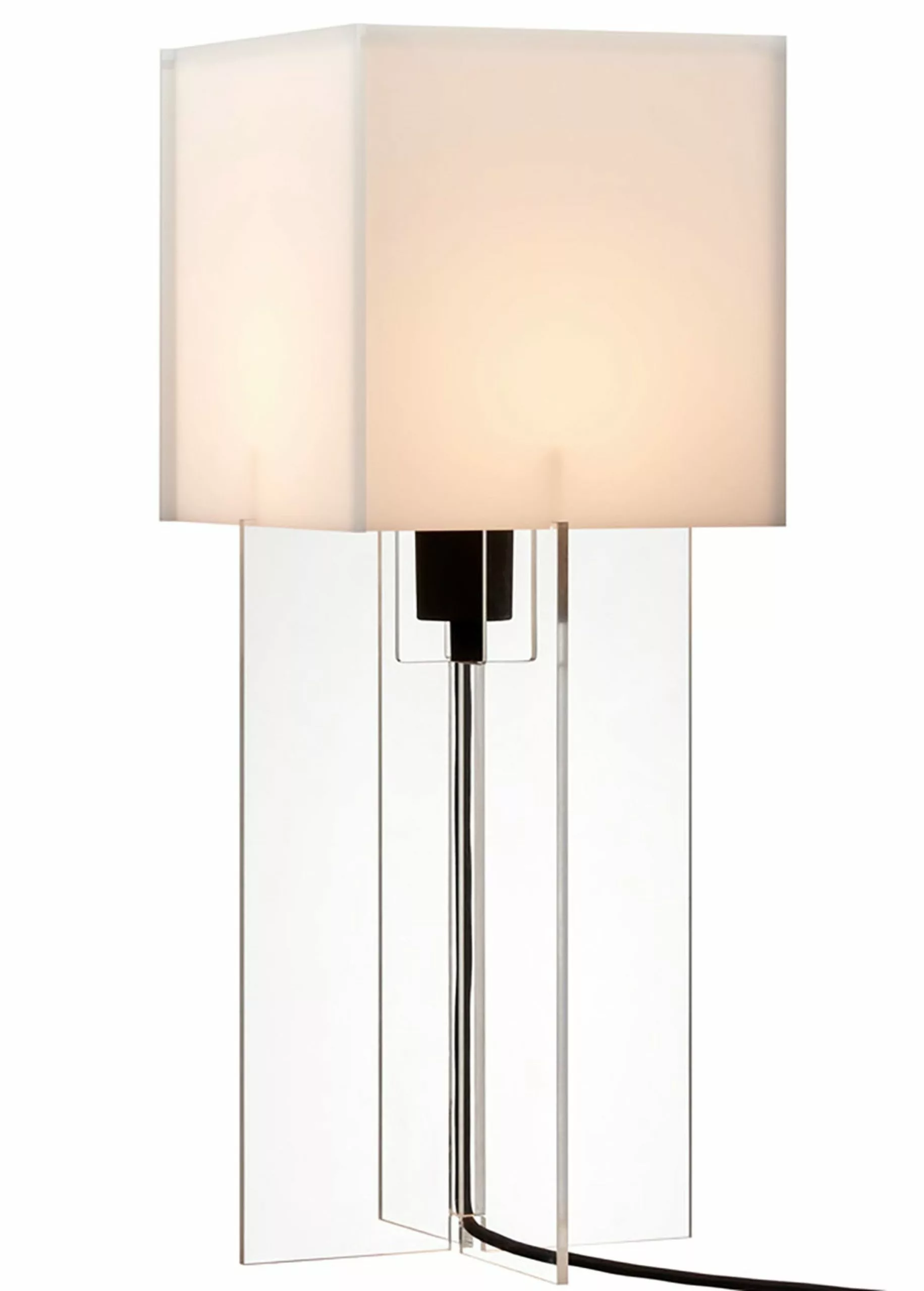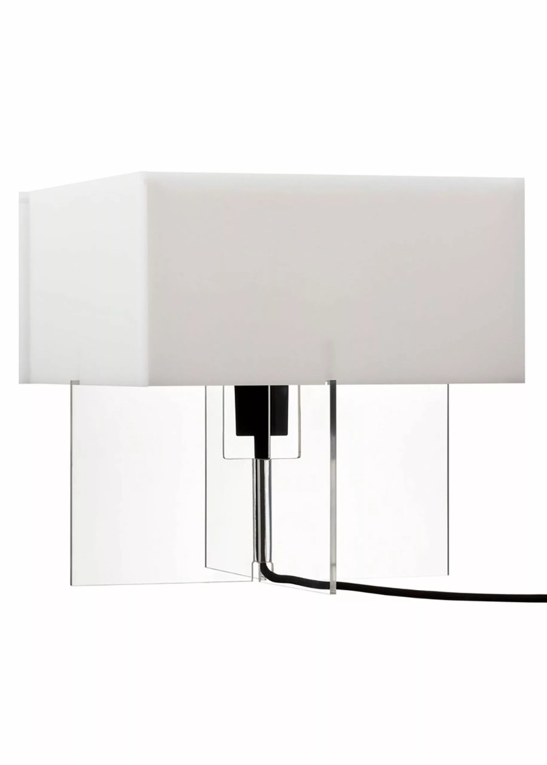 Cross-Plex was designed by Bodil Kjær in 1961. The lamp is shaped like a cross and molded in plexiglass, hence the name. Cross-Plex shows Bodil Kjær's clean, straight lines, which are characteristic of her design. The table lamp is almost like a small building. The lamp is available in two sizes, the T-300 & T-500.