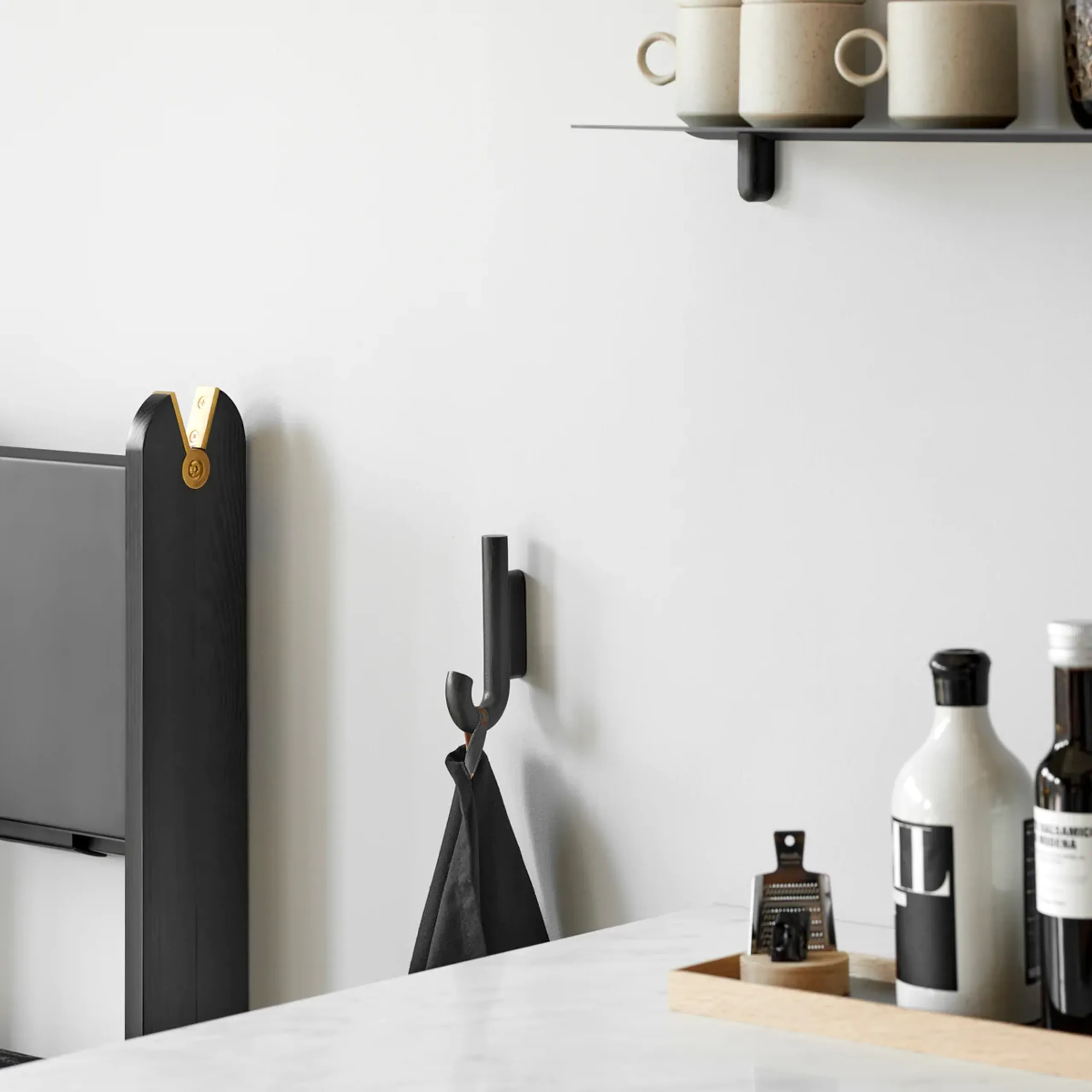 These beautiful Hook Mini are a beautiful addition to your home. You can use the hooks in a variety of places in your home. For example, you can choose to use them outside in your entrance hall where their simple design invites everyone to either hang up their jacket, umbrella or scarf. In addition to your hallway, you can also use them in your bathroom where they will be perfect for hanging towels and bathrobes. Otherwise, you can also use the hooks in your kitchen where tea towels and aprons can be hung. The hooks are available in three different colours. Either in a warm walnut, or oak that has been treated with white pigment and matt lacquer, and finally one in black oak.
