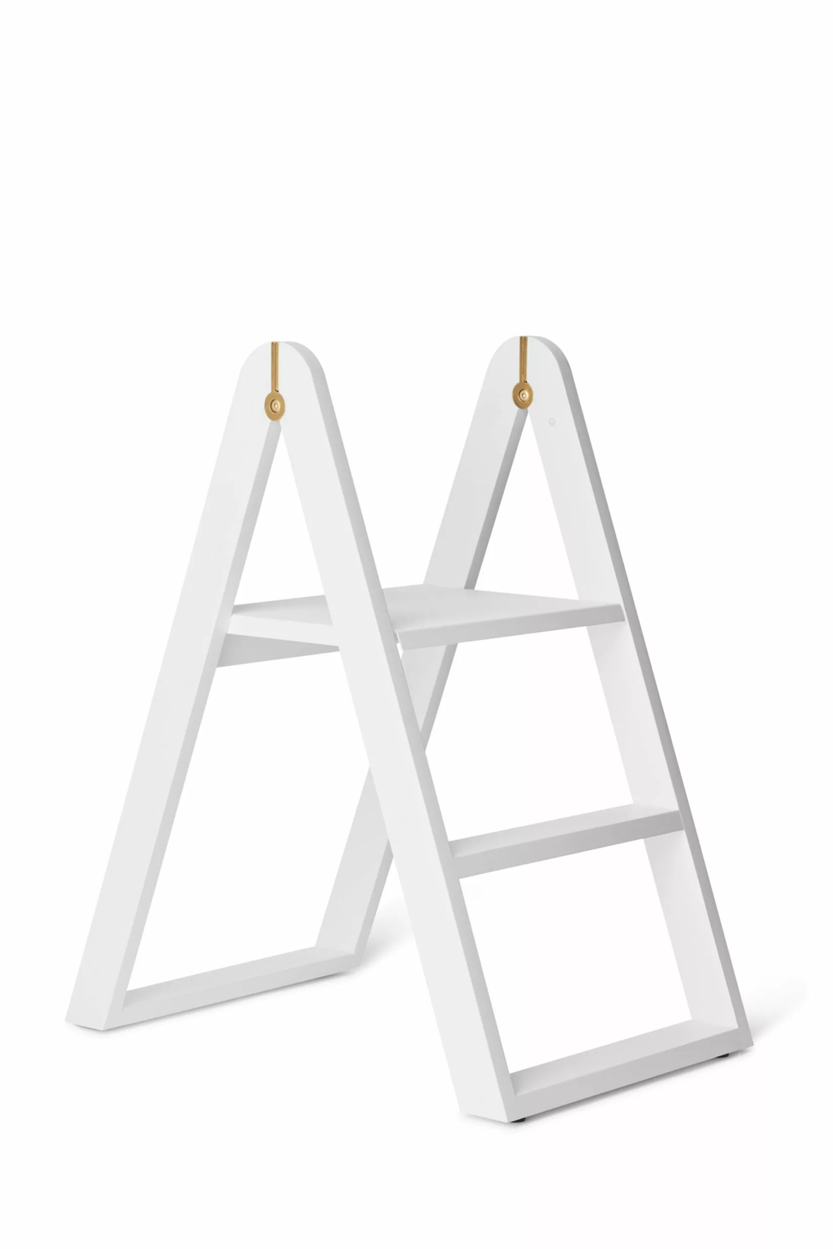 On the ladder there is an almost invisible magnet that keeps the top step in place when the ladder is folded and not in use. Then, when you need to use the stairs, you unfold them most of the way. Then you fold down the top step and then you unfold the whole ladder so that the steps lock in place in the frame and don't move anywhere. The "Reech Stepladder" also comes with a handy bracket that allows you to hang the ladder on a wall, or put it in a cupboard and therefore hide it away. If you choose to hang it on the wall, the wall bracket is hidden behind the top step. This makes it almost look like the ladder is floating in the air.
