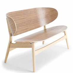 The GE1935 Venus bench was designed by the renowned Danish furniture architect Hans J. Wegner in 1948. The bench's shell-like design harks back to Botticelli's painting of Venus, the goddess of love. The voluminous shells that form the seat and backrest give the bench a sculptural character that is a hallmark of many of Wegner's designs. The frame is simple in its expression and creates a sharp contrast between the seat and base, precisely to focus on the elegant shells. The bench is constructed in moulded chrysd veneer, which was a typical technique in the construction of aircraft during World War II. The use of this technique for the bench's Venus-inspired shells, lends a lightness and elegance that simultaneously make cultural and historical connotations.