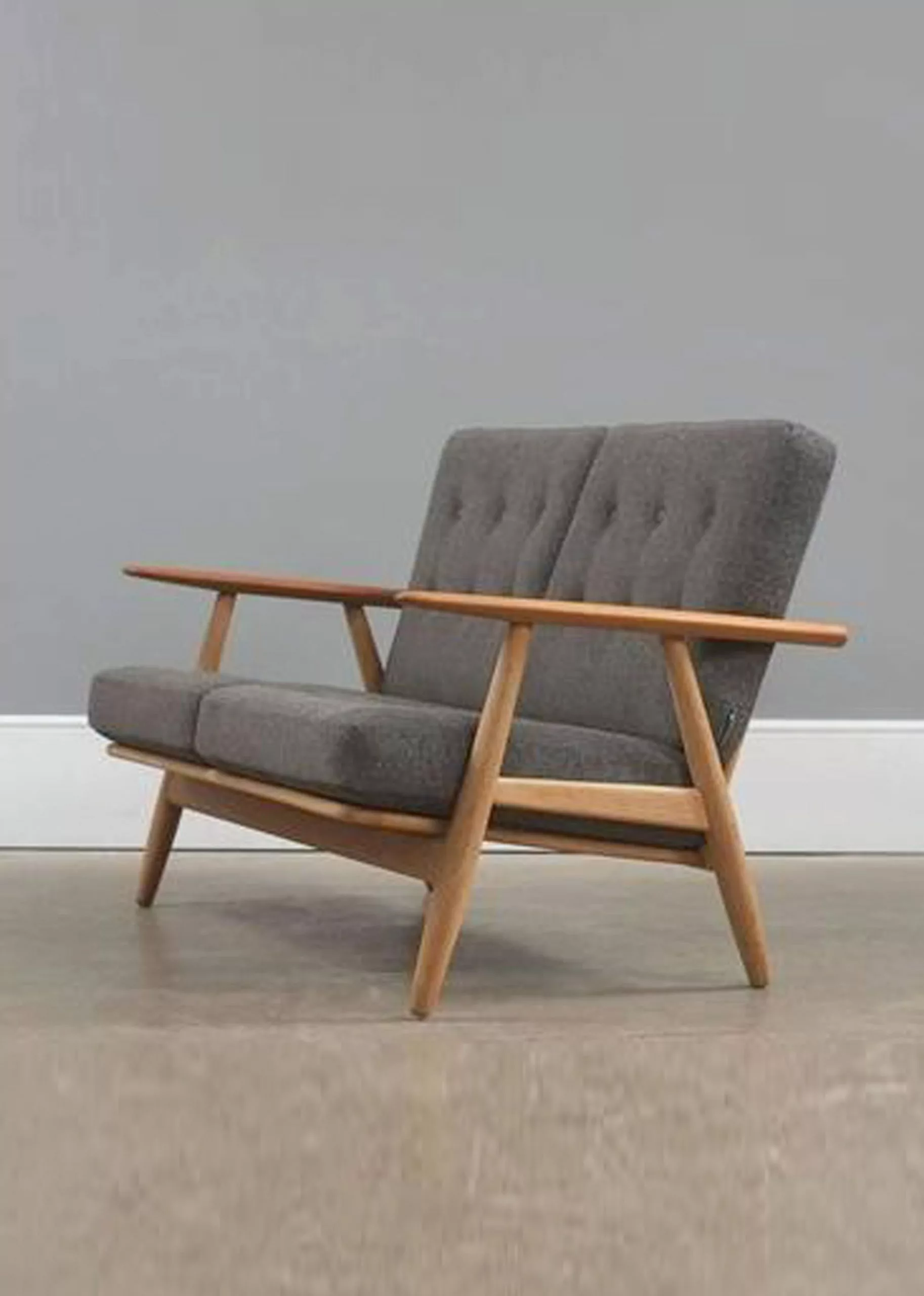 240'er series, the Cigar series, is designed by the world famous Danish architect, Hans J. Wegner for Getama, back in 1954, and especially the chair knows as the Cigar Chair in the 240’er series is of Wegner’s best known furniture. The series consists of the Cigarchair, the Cigarsofa, and a pouf / stool.