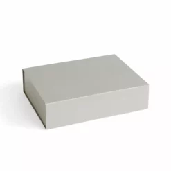 Colour Storage from HAY. This is a series of decorative and useful storage containers. The rectangular shape of the box is made from a durable extra thick FSC certified cardboard blend. A beautiful glossy finish has been applied to the top of the box. Use the boxes to organise and store small items on your desk, shelves or in cupboards.The boxes are available in 3 different sizes and come in a wide range of beautiful colours. Use the boxes in your interior design for example by stacking the boxes. There are options for colourful displays or just simple statements in the home.