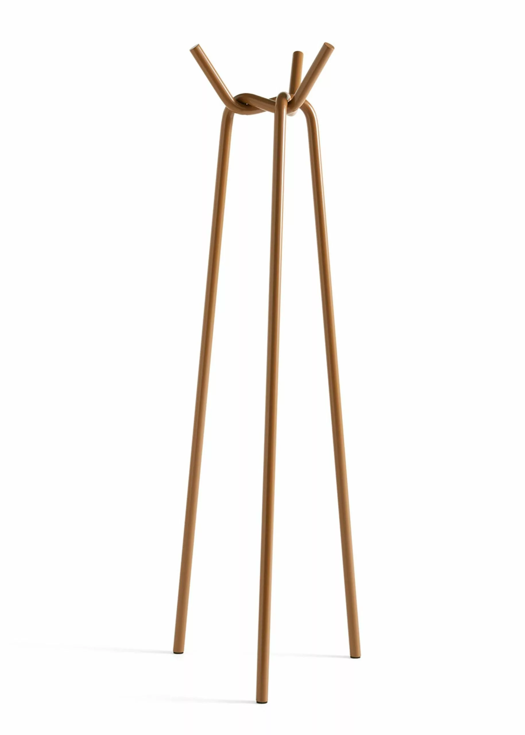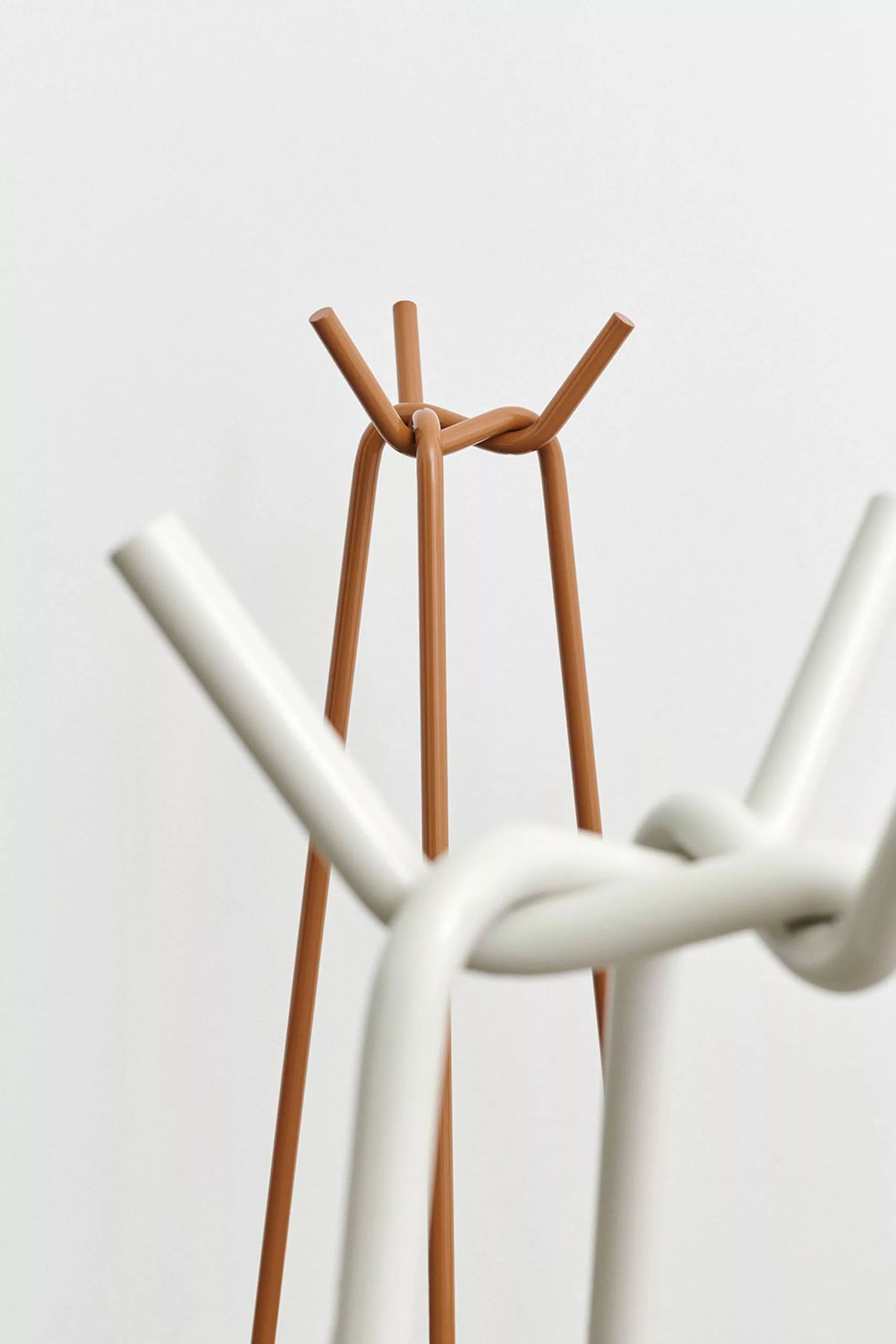 The 'Knit' pedestal table, designed by Japanese Jin Kuramoto, combines the sculptural with the functional with its artistic and three-dimensional design. Constructed from three minimalist iron tubes 'knitted' together in the middle to mimic the soft pattern created by the yarn, the 'Knit' is an elegant addition to the entrance hall or wardrobe where it acts as a holding place for outerwear, scarves and bags.