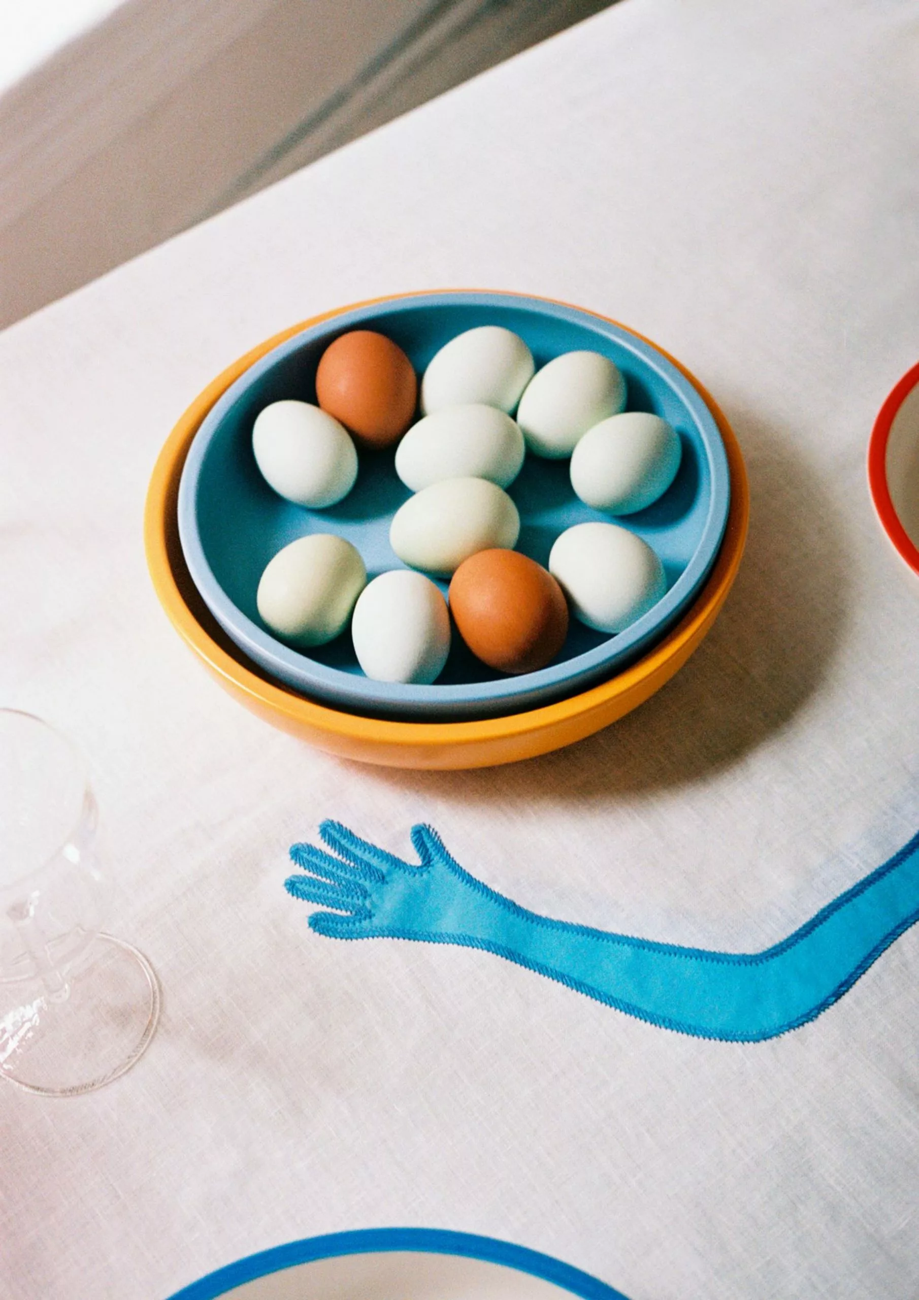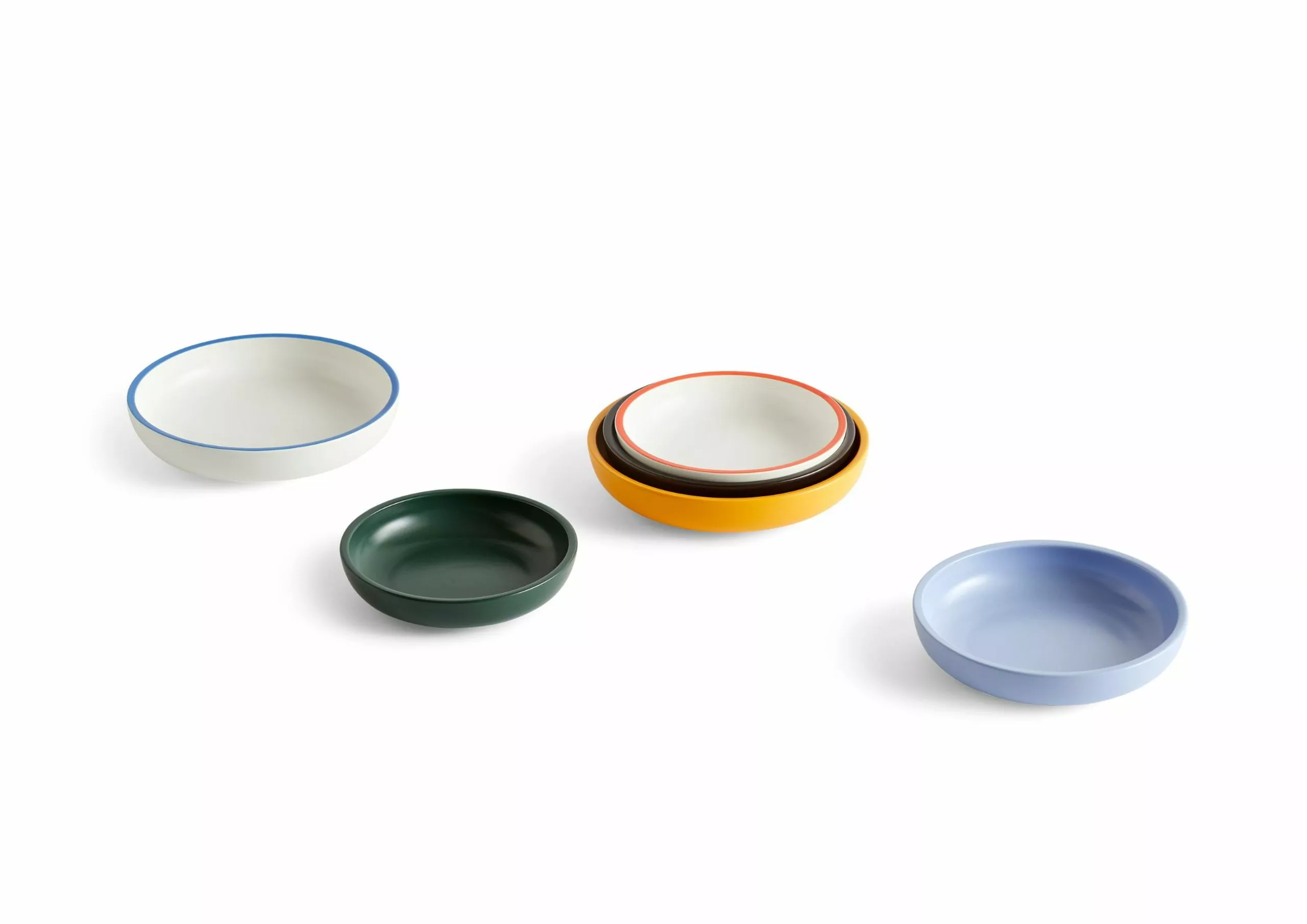 Sobremesa Serving Bowl is part of a design collaboration between HAY and artist Laila Gohar. Enjoy the joy of a good meal with the colourful bowls. They are made of ovenproof porcelain and are available in several colours and sizes. Mix the bowls to give your table setting a fresh and playful look.