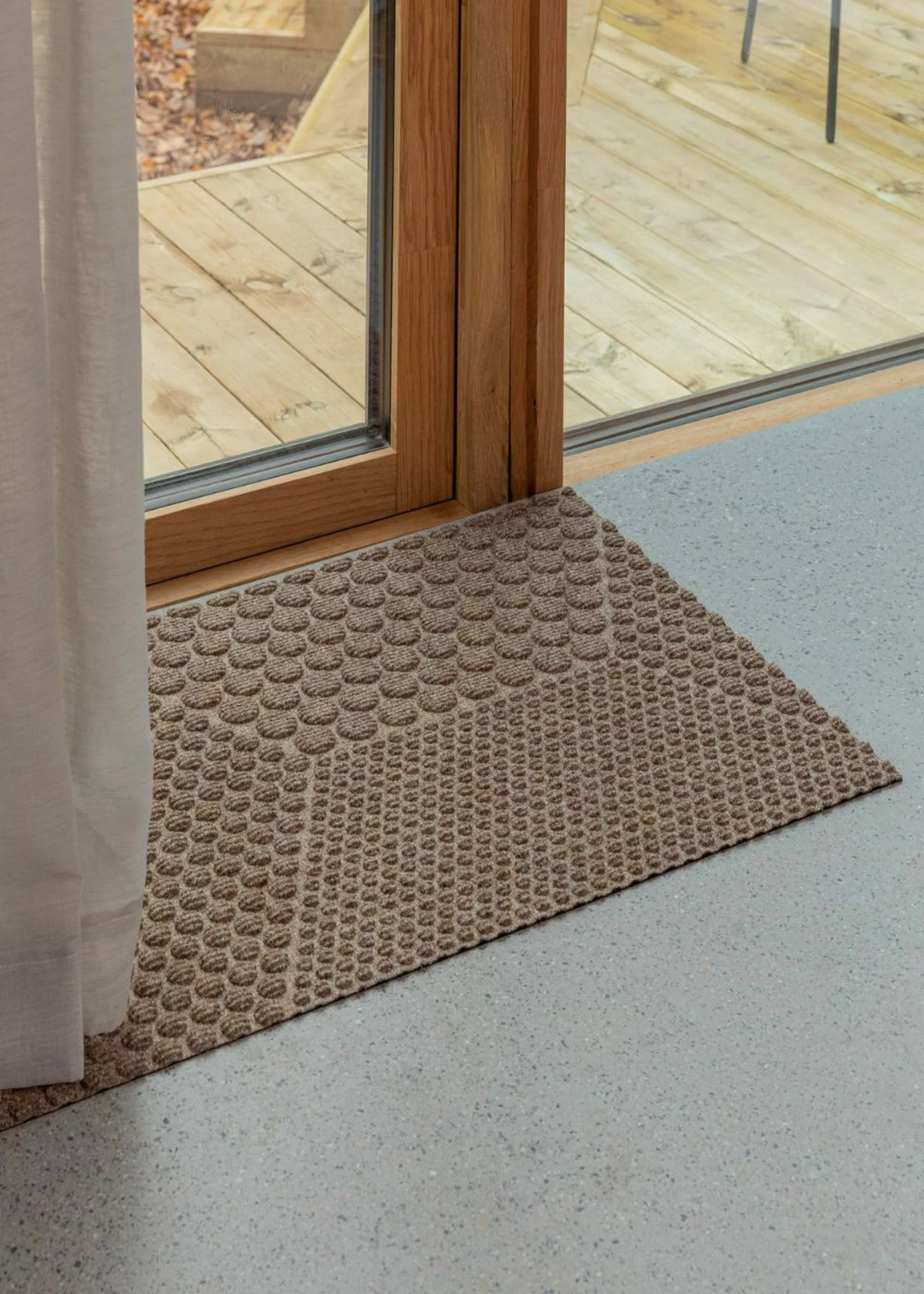 Hex Desert from Heymat is an elegant doormat, with unique beige shades. The pattern of the mat is based on the hexagon and the circle, which are strongly connected in geometry. Repetition and order give a calm expression in your home.