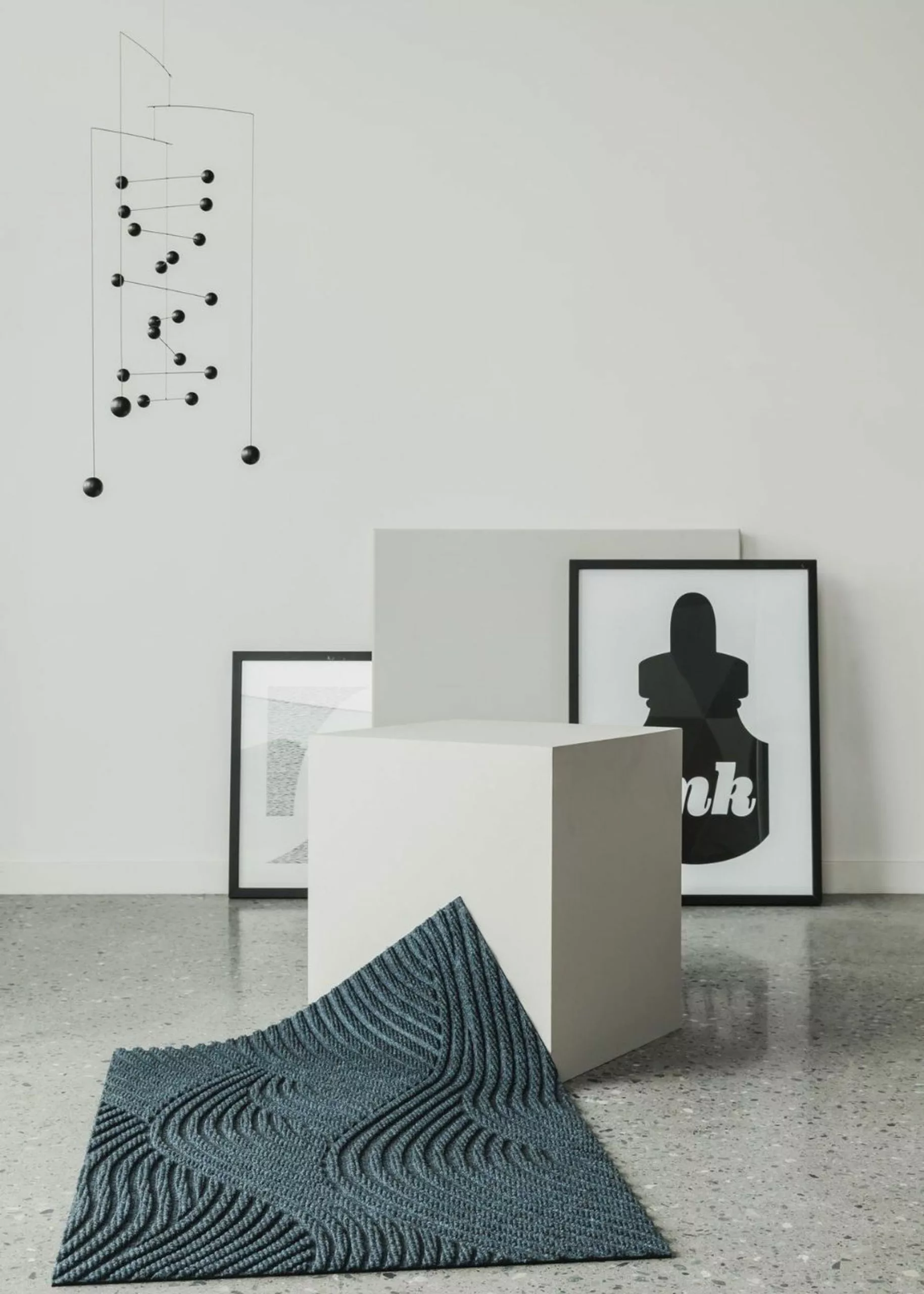 The three-dimensional pattern in blue, creates a modern as well as classic pattern, reminiscent of traditional woven textiles.