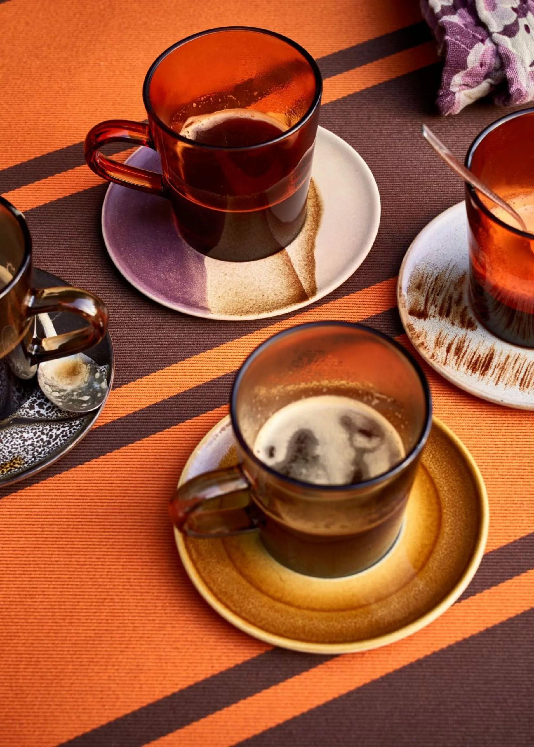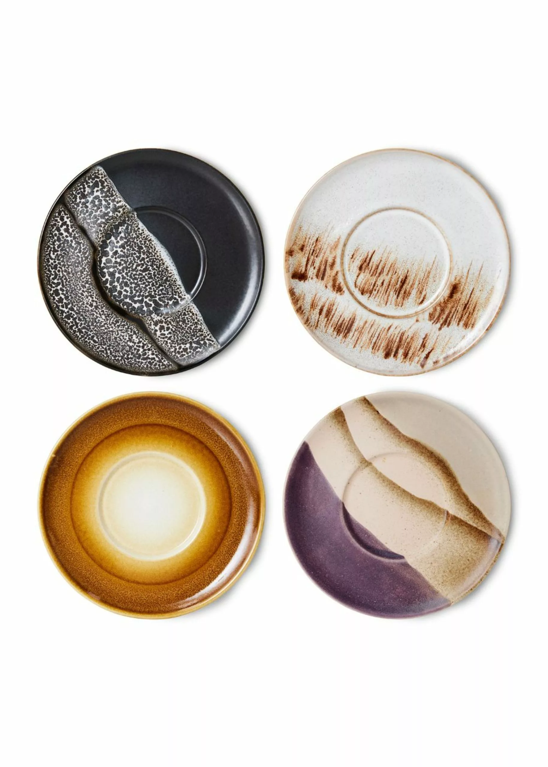70's Ceramics Saucers, Big Sur from HKliving is a set of beautiful ceramic saucers inspired by the earthy colours of the 70s and California's magnificent Big Sur coastline. The saucers are perfect for those who want to add a little colour and life to the coffee table.
