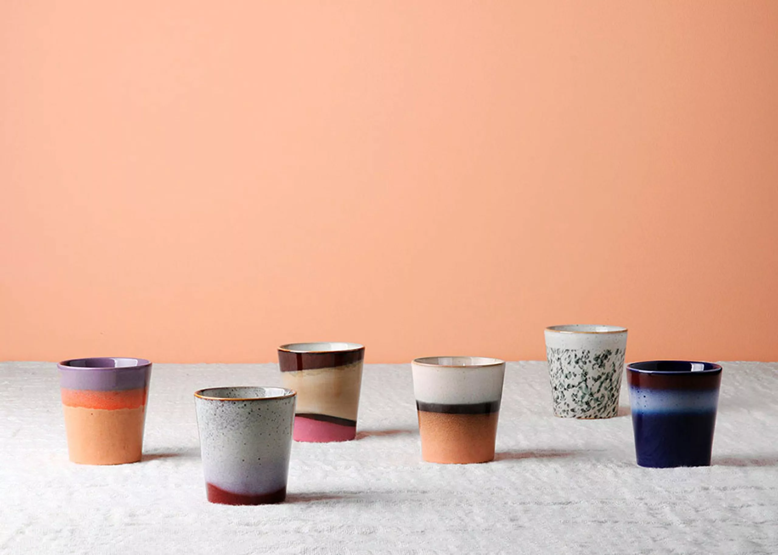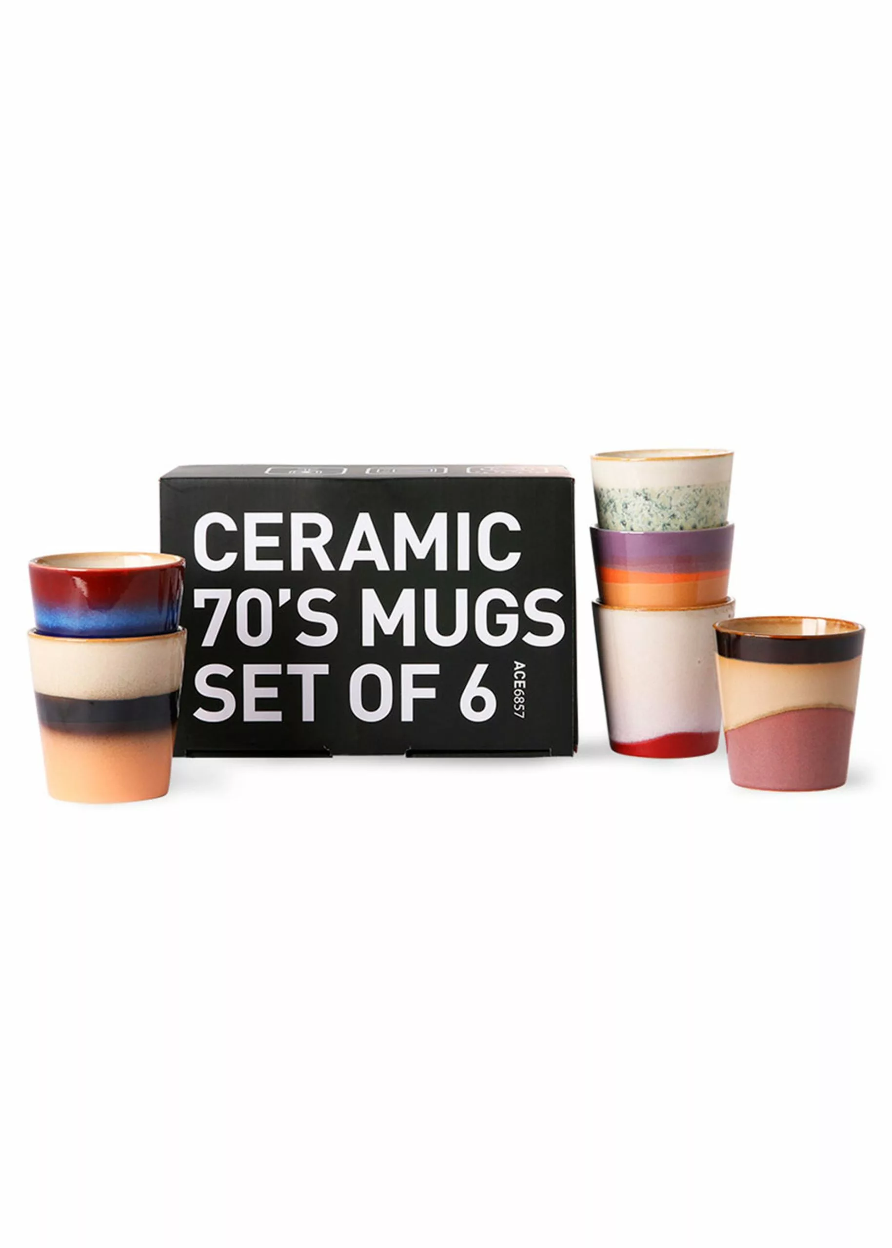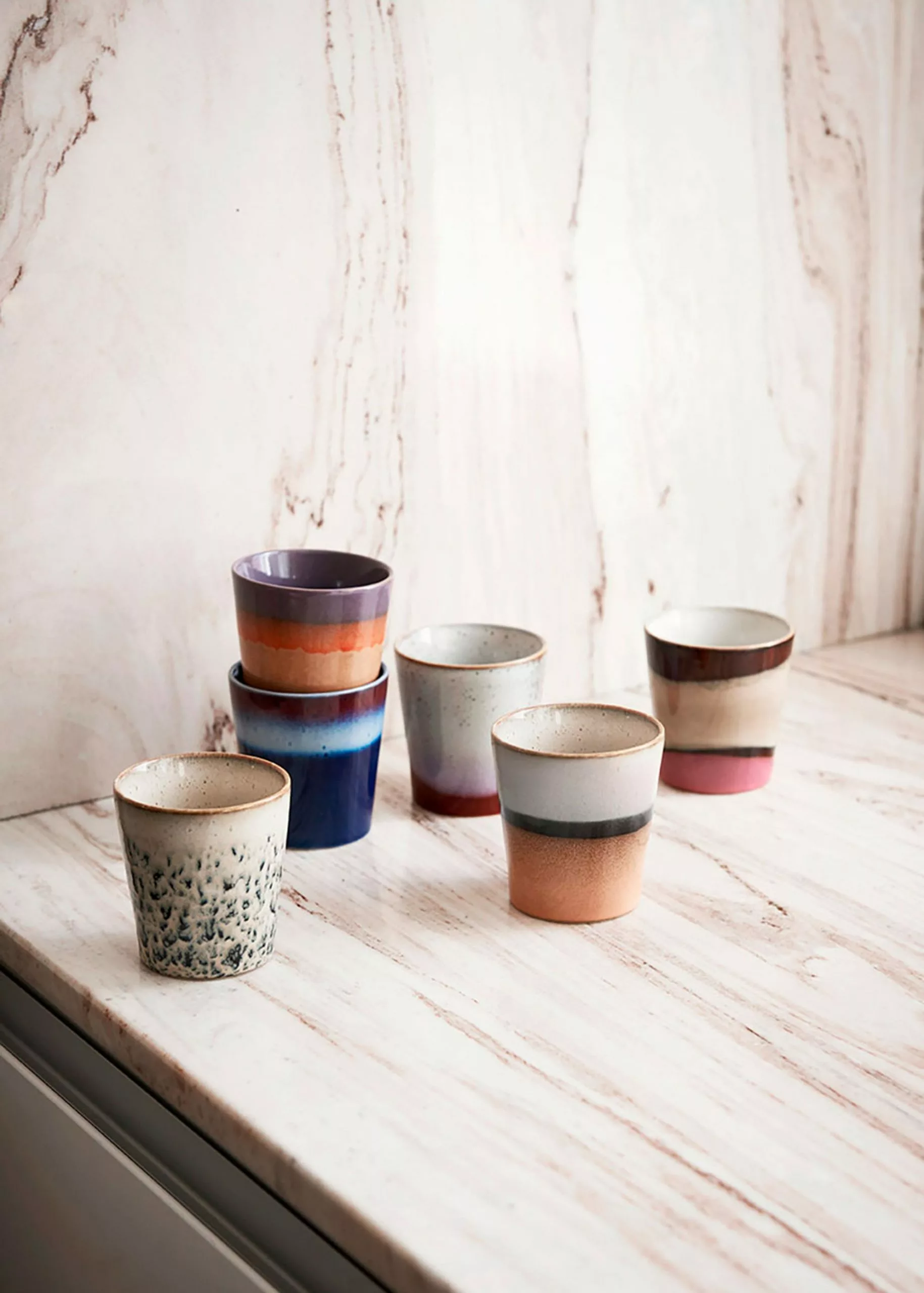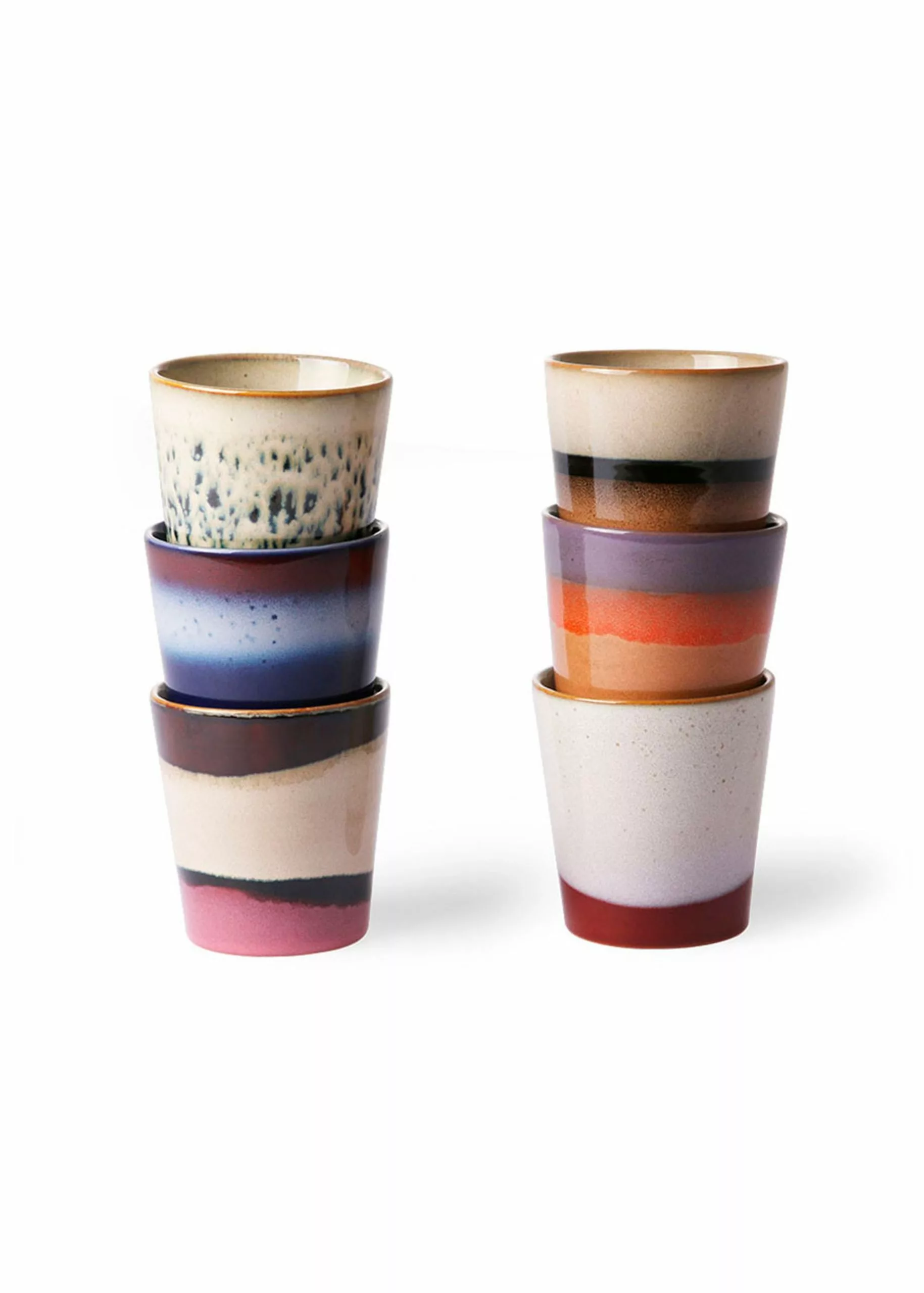 70s Coffee Mug from HK Living is a set of fine coffee mugs in several different colours and patterns. The cups are perfect for a delicious cup of coffee. The 70s collection is a mix of the modern pastel colours and the retro look reproduced in a cup. The entire 70s range is made from handmade stoneware, which helps to give variations in colour and pattern, so each mug is unique.