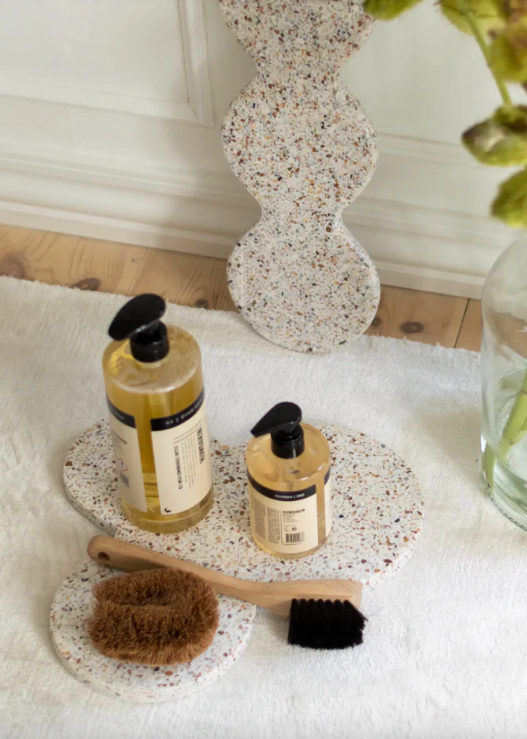 The Milan Terrazzo Board from Humdakin is a durable dish with many useful features. The dish can be used to store your Humdakin kitchenware, condiments and oils. However, the dish can also be used to create a beautiful corner with candles and flowers.
