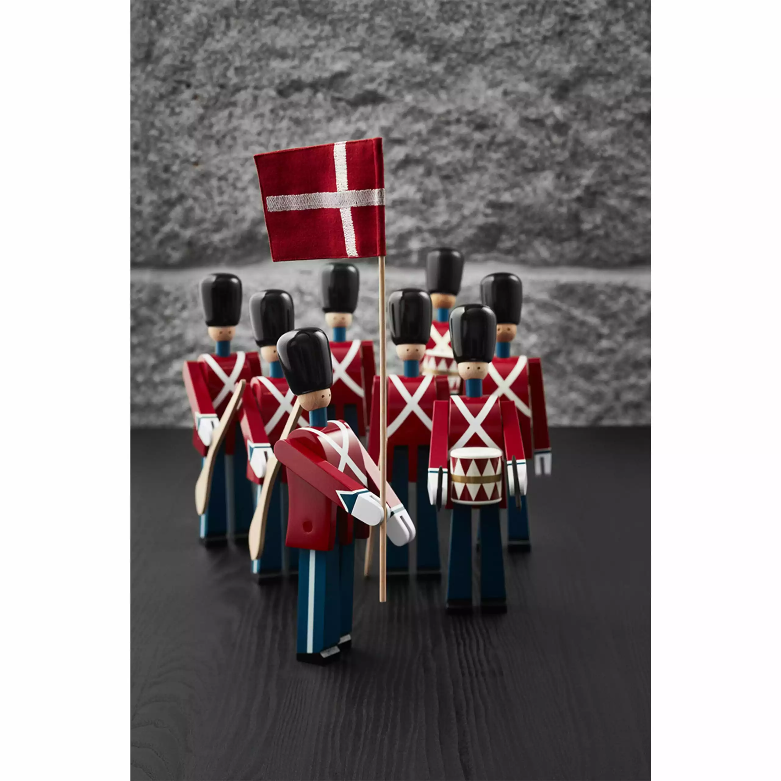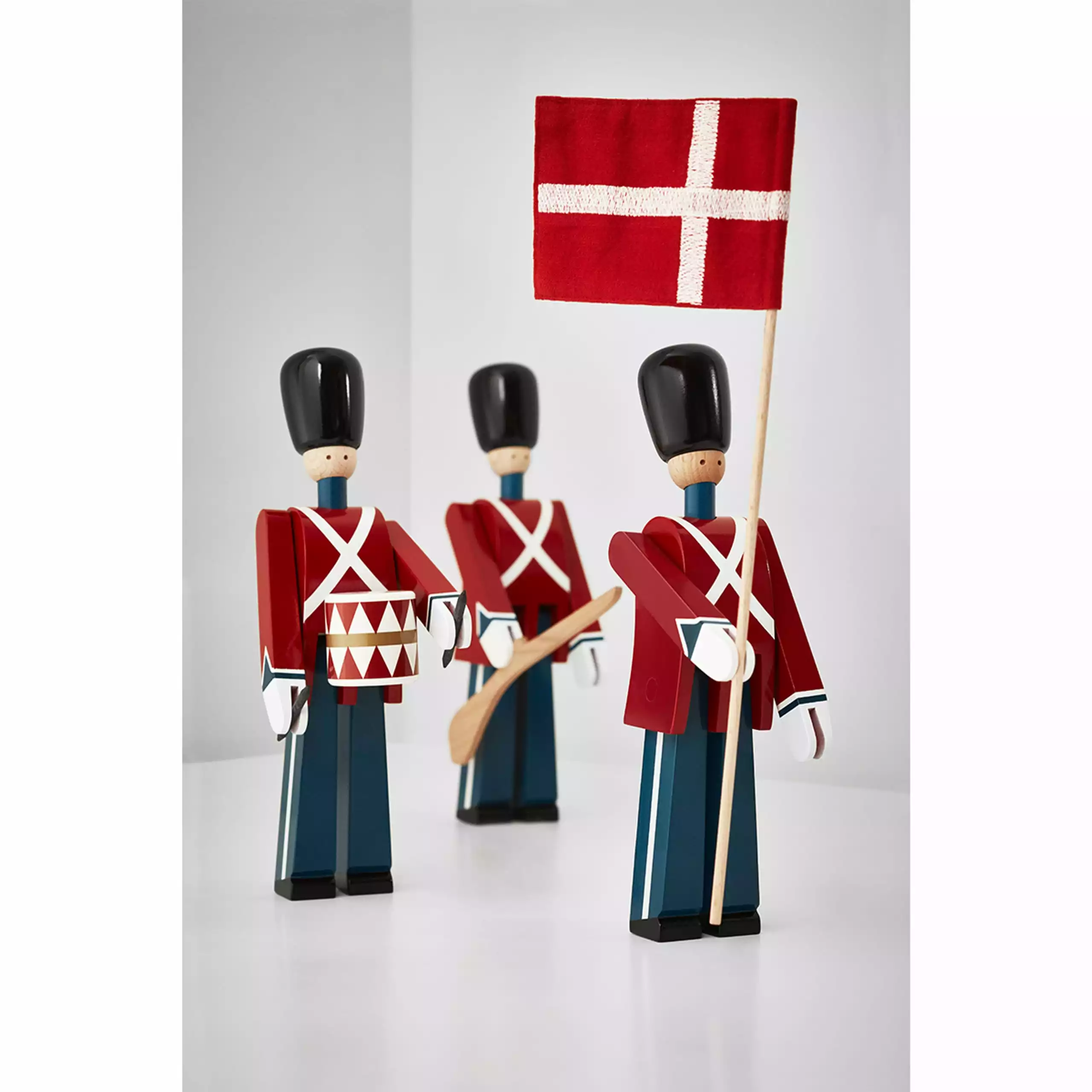 Inspired by one of Denmark's national symbols from Amalienborg Palace Square created Kay Bojesen in 1942 its hand-painted guard. Ever since, Bearer, drummer and common people with rifle been a dear guest at birthday breakfast table and a design icon in the home. A great gift idea for life for both children and adults.