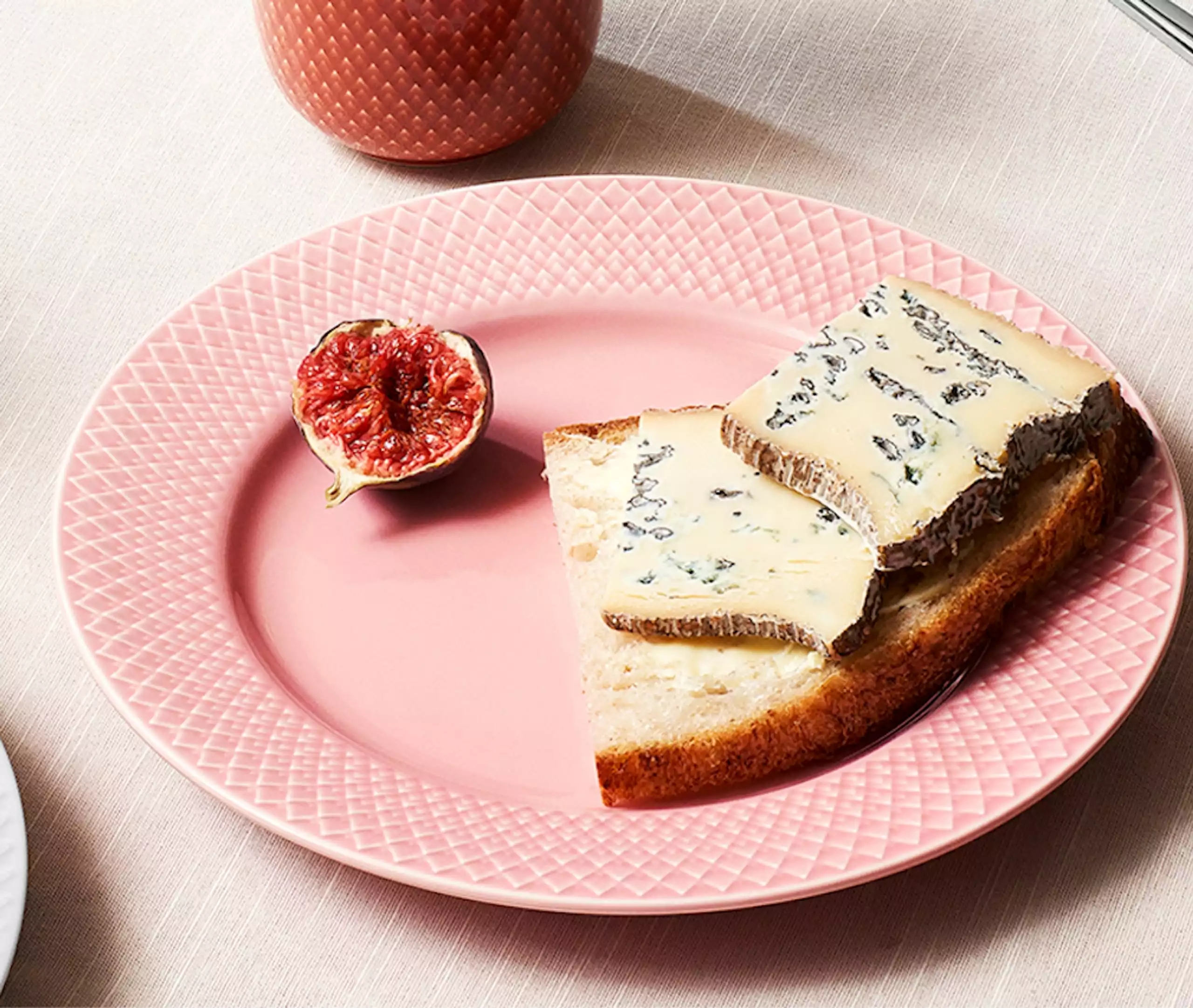 Plate from the Rhombe series from Lyngby Porcelæn. Elegant and classic plate, gives a very stylish look to the table. Has beautiful details on the rim, and is now available in white, pink and aqua.
