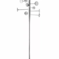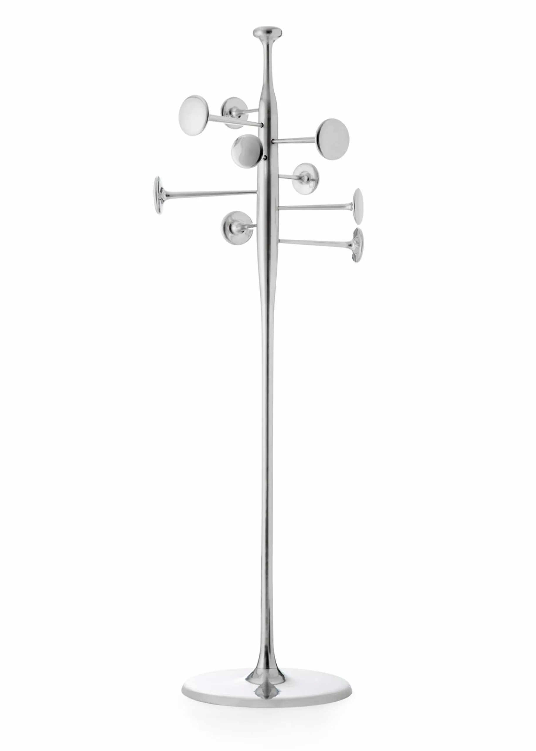Trumpet Coat Stand is designed by the danish architect duo Space Copenhagen. The coat stand has an almost sculptural design. The nine discs on the coat stand have three different sizes that are perfect to hang hats, scarfs or other things on. The coat stand is made with partly recycled aluminium.