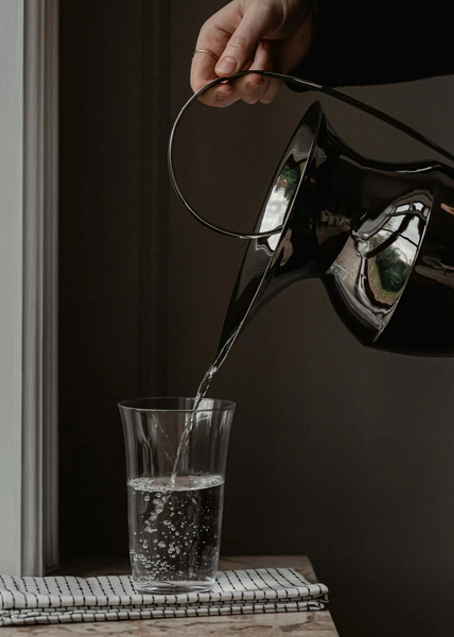 The Etruscan Pitcher from menu is a very elegant pitcher that is both practical and beautiful at the same time. The curved silhouette of the pitcher is made of high gloss polished stainless steel which makes the pitcher very elegant but also durable finish. The jug makes a cool statement on the table, but also as a decorative vase.