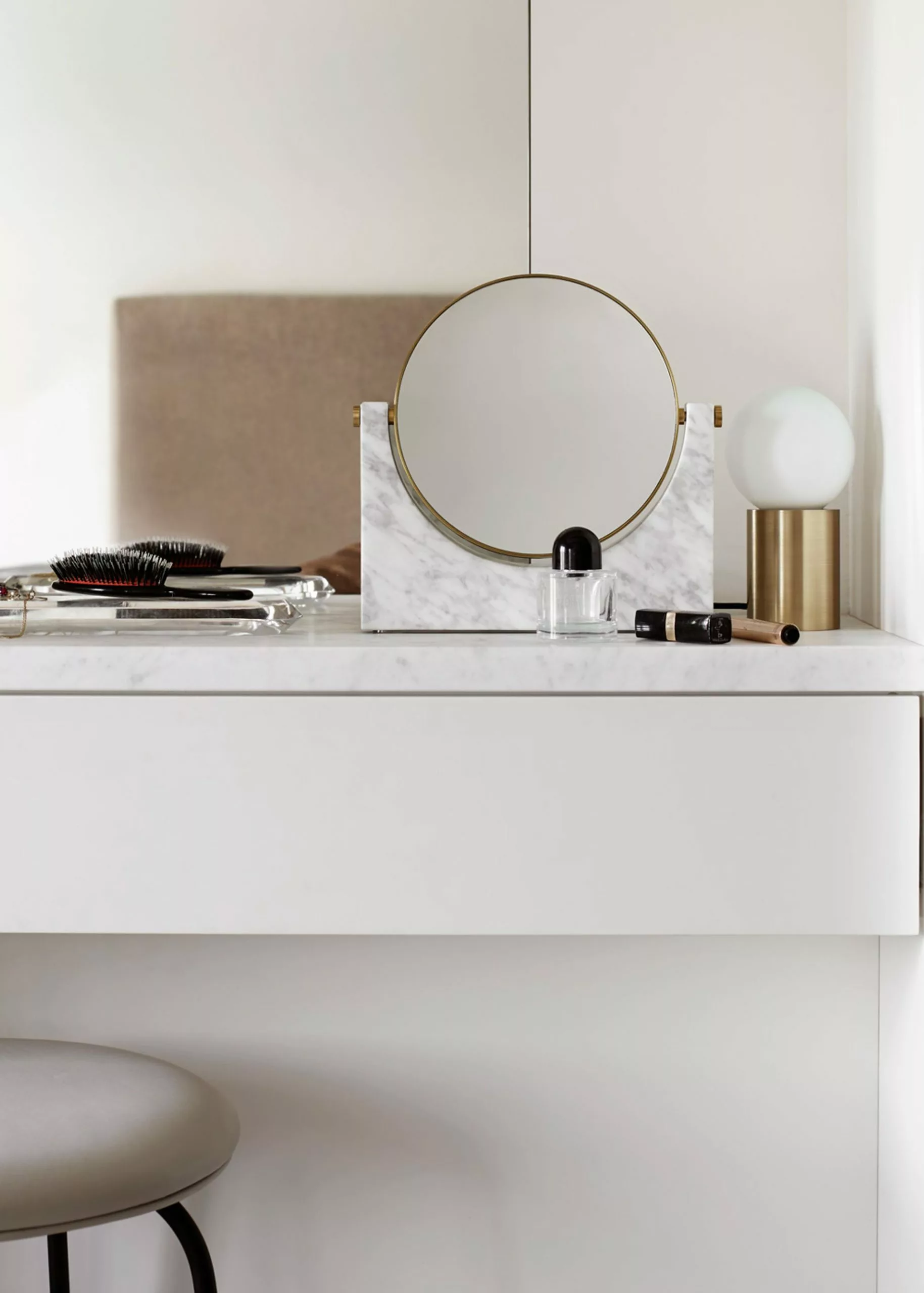 Pepe Marble Mirror is designed by Studiopepe. The mirror has an iconic and aesthetic design. Focus on materials and quality makes the mirror timeless and elegant. The mirror comes as both a standing mirror and a wall mirror. One side of the mirror is a regular reflection and the other side of the mirror is a magnification of 300%.