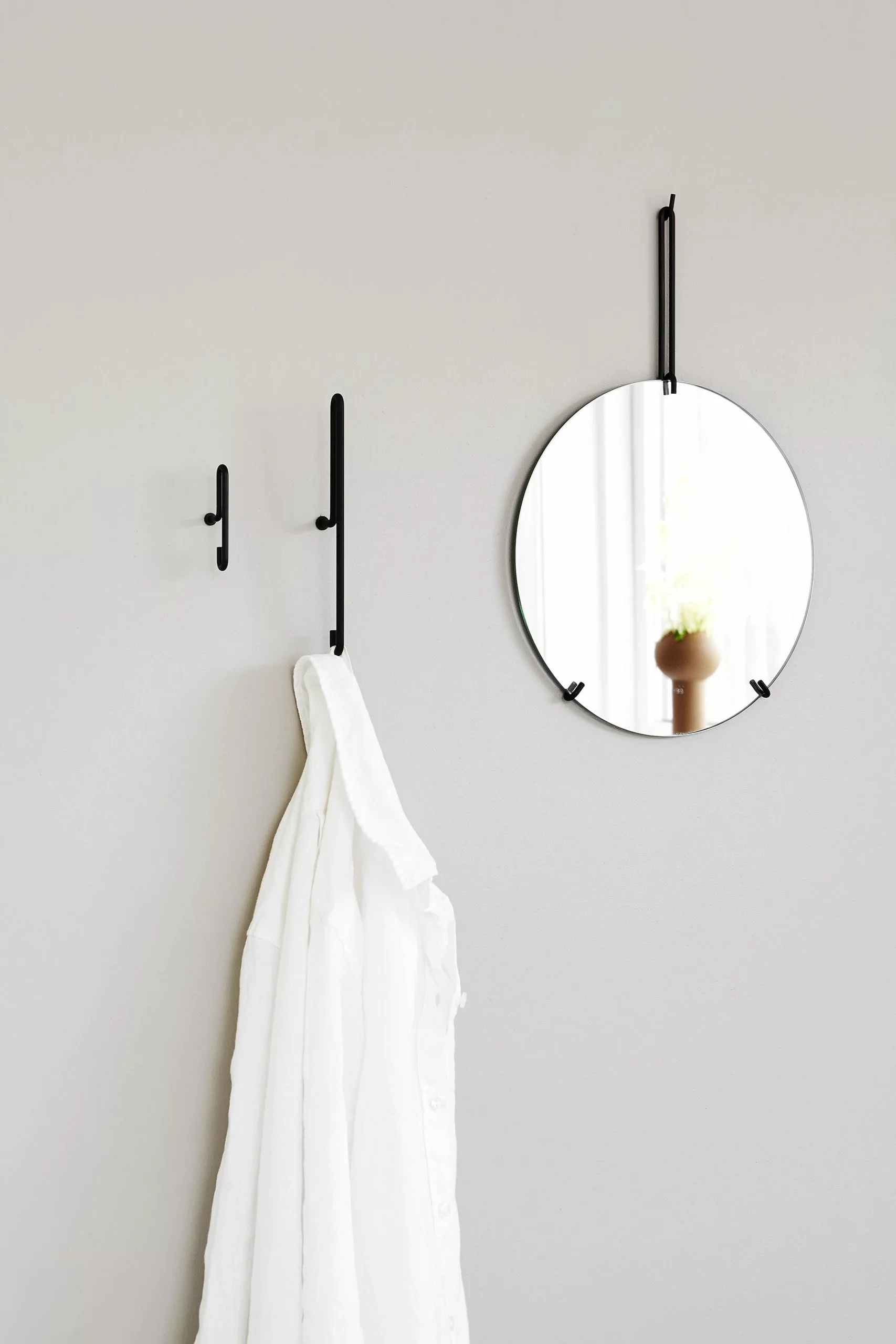 Wall Mirror is made by Moebe. The mirror is shaped from a single mirror glass. The frame of the mirror is available in 3 colours and the frame is made of metal. Wall Mirror can be hung in the bathroom or in the living room.