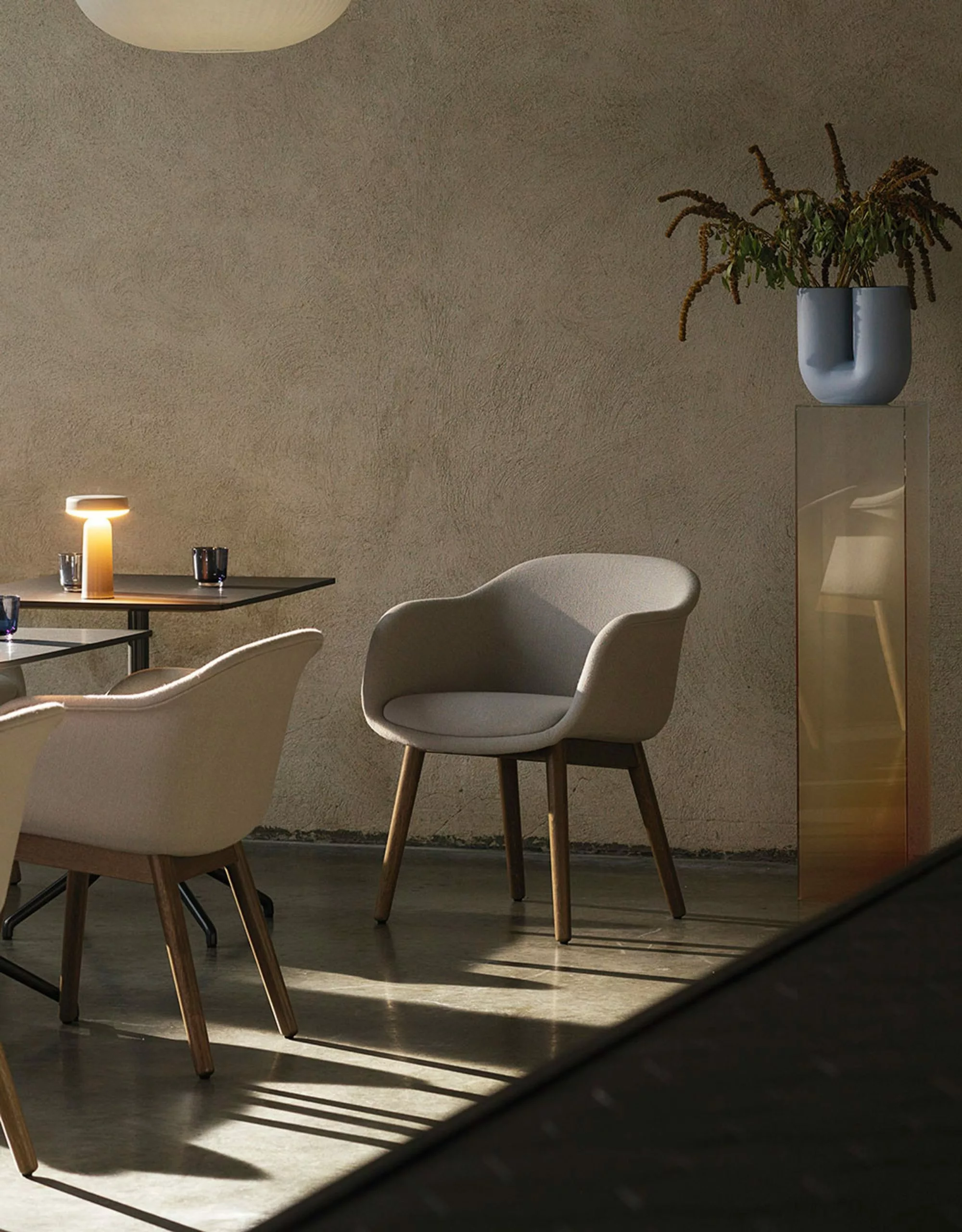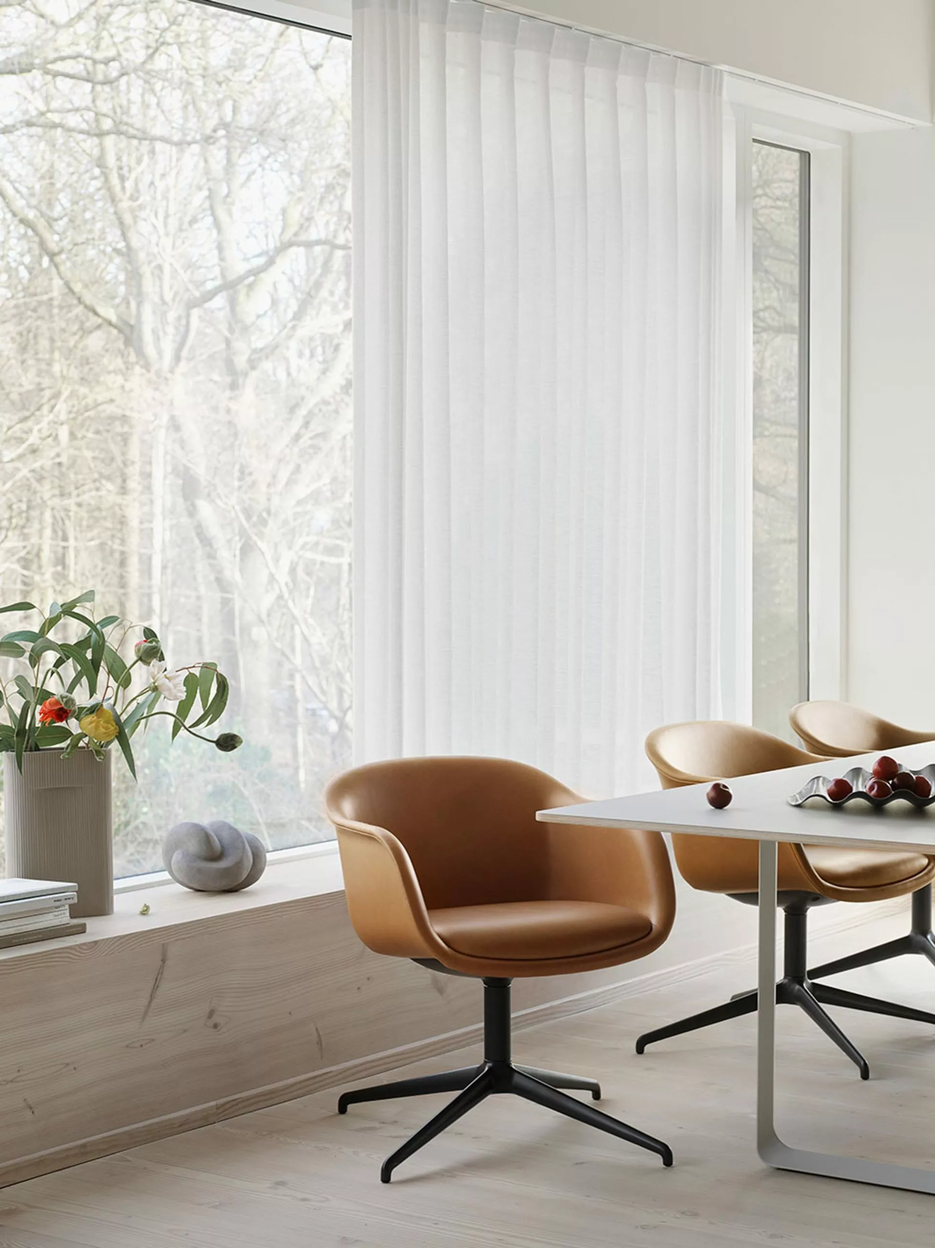 The fine and simple Fiber Conference Armchairs were designed by the design duo Iskos-Berlin in 2021. The shell is made of 99% recycled plastic and 1% strength-enhancing plastic additives, the cushion is moulded in foam and the frame is made of FSC™️ certified oak or ash with water-based lacquer, which gives the chairs good durability. The Fiber Conference Armchair is a sculptural as well as comfortable design that, with its soft firm cushion and embracing curves, is ideal in the home or in public spaces.