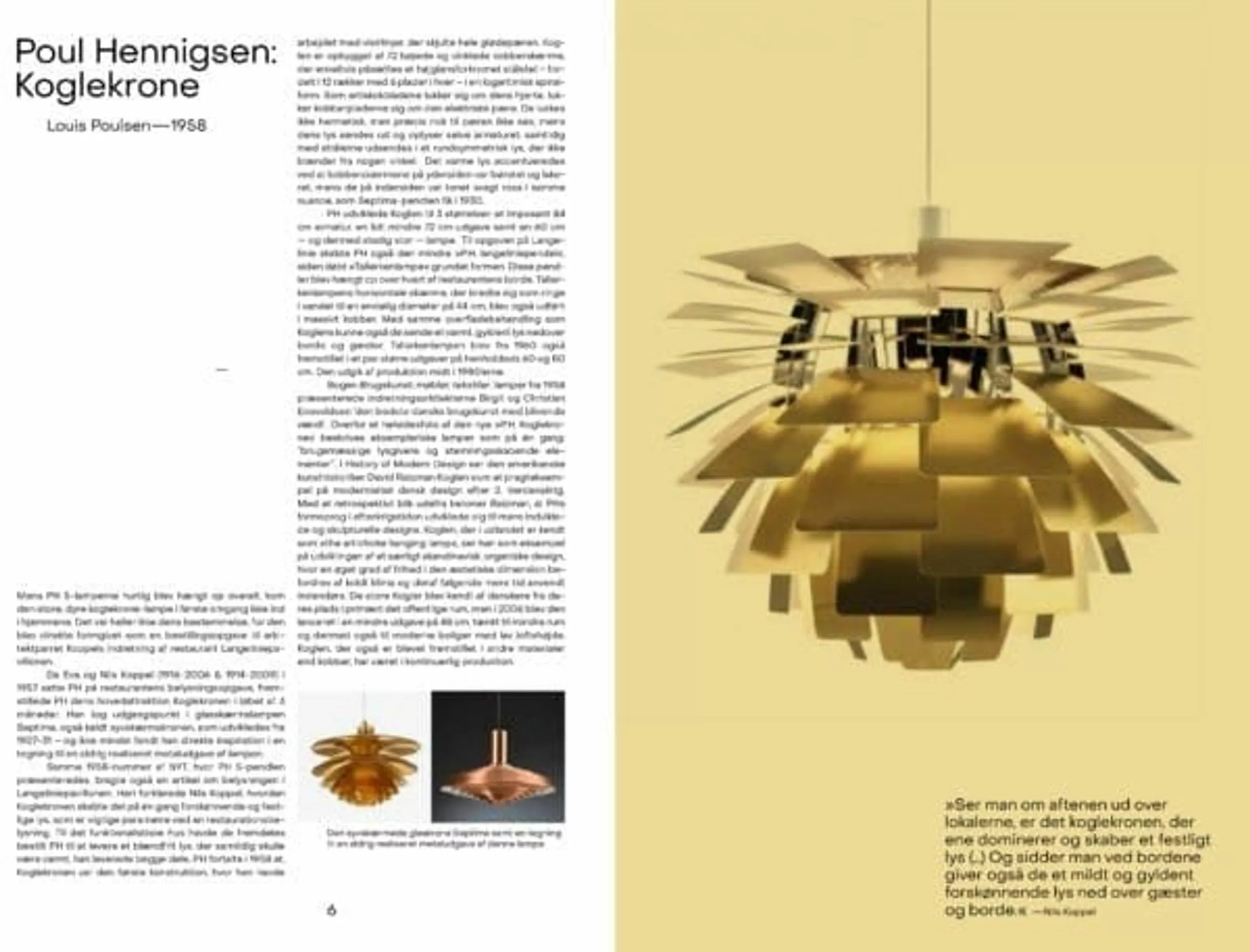 Lighting is a key element in ‘hygge’ – a warm, cosy ambience – and although Henningsen was a functionalist to the core, he had no intention of doing away with hygge. Hygge is a hot topic today, both in Denmark and abroad. Danish lamp design is not only about form. Although hard-core functionalists called for form to follow function, and function alone, real-life factors required them to compromise, and this compromise came to define Danish lamp design: hygge is a crucial quality that has to be included in the design. Thus, the purpose of the modern Danish lamp was– and is – not only to provide light but also to act as a decorative element and to spread a cosy ambience in Danish homes.