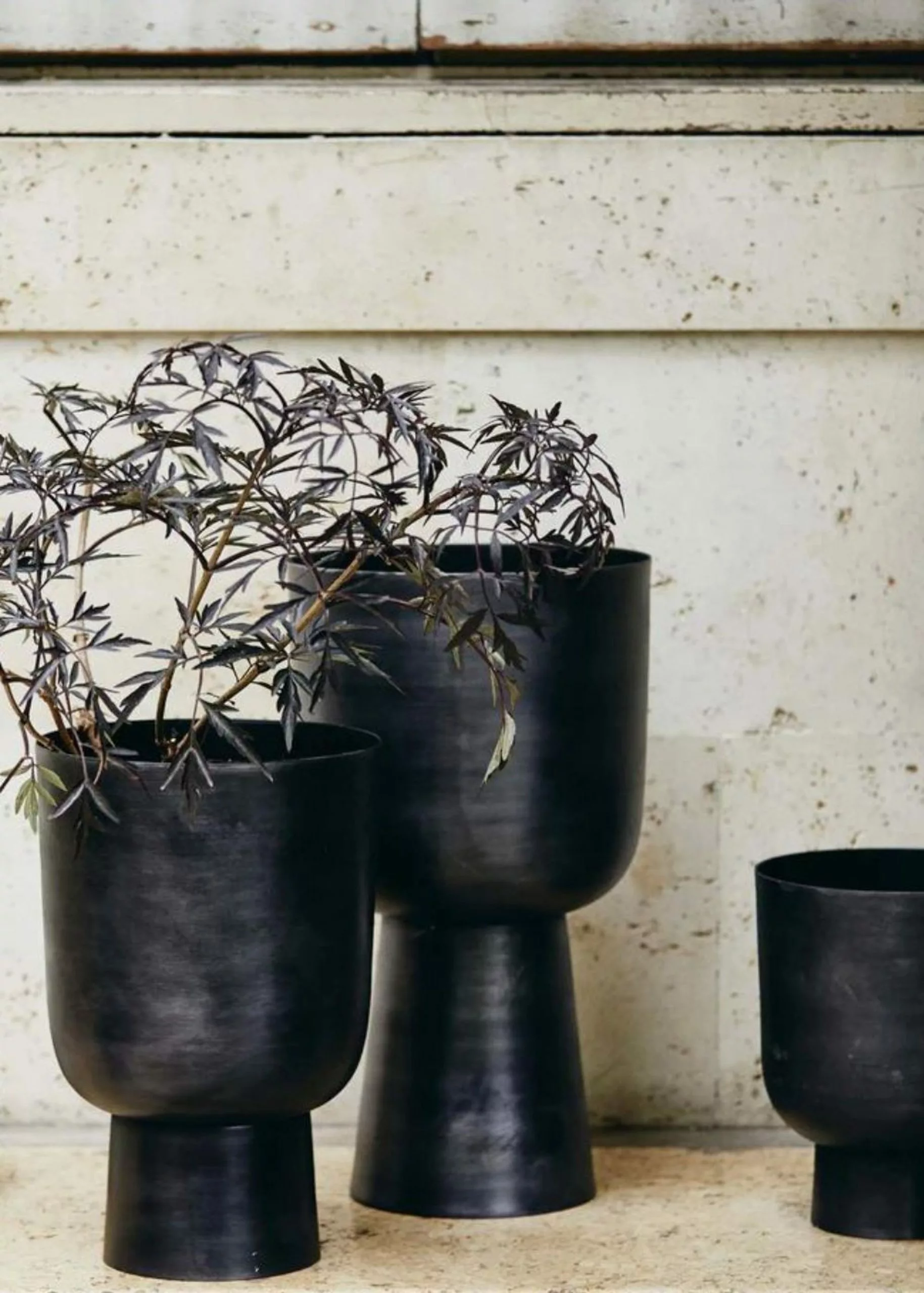 GALOA planter from Nordal is a black aluminium flowerpot, with an industrial expression. The flowerpot brings edge to your decor and with its simple design, will certainly never go out of fashion. Decorate your home with green plants and GALOA flower pots in different sizes.