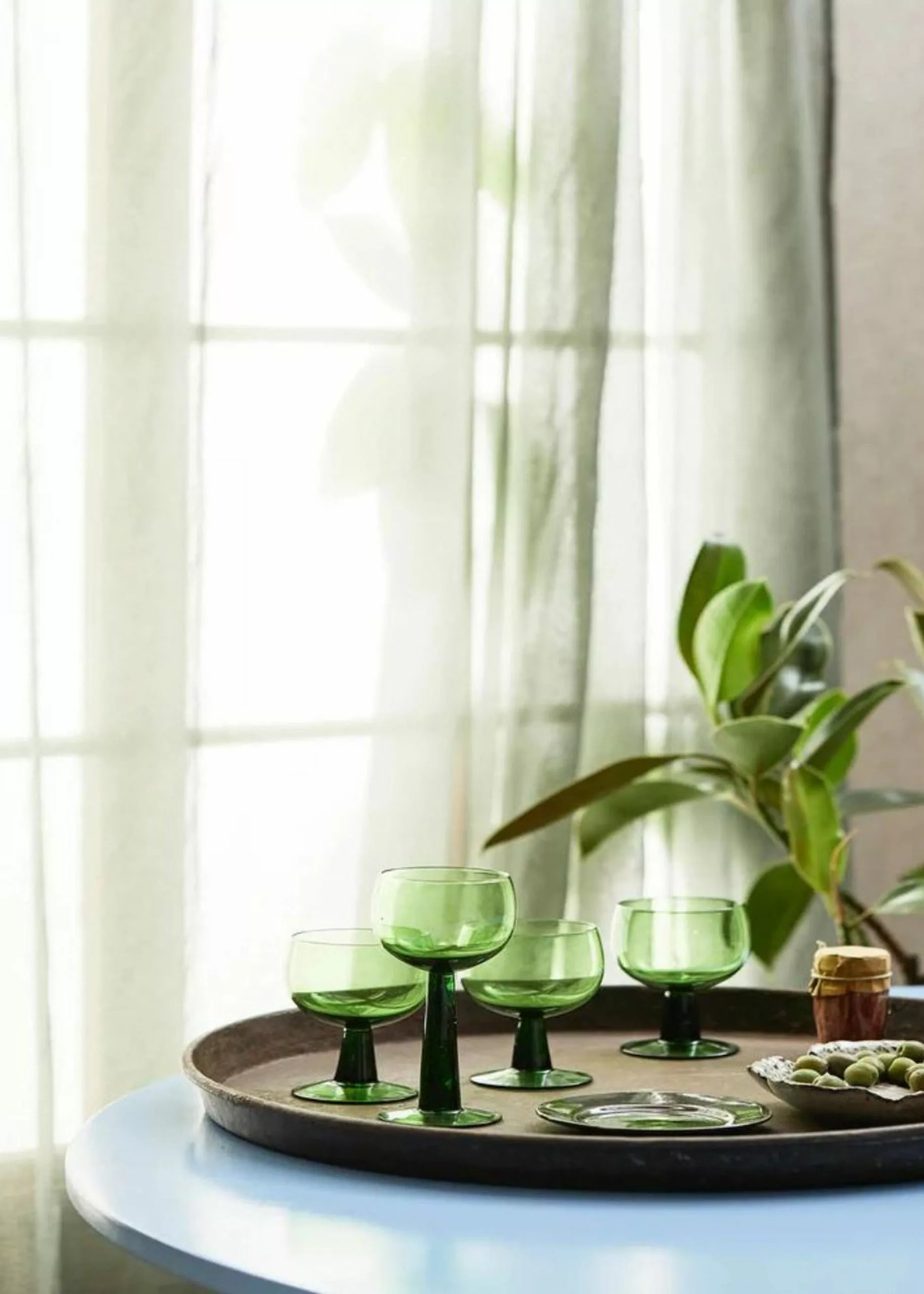 WILMA glass from Nordal is the perfect addition to the festive table. With its elegant green colour, it immediately becomes the eye-catching centrepiece of the table setting. The WILMA glass medium size with its tall stem is perfect as a drinking or wine glass, while the glass in size small with its short stem, is best suited as a drinking or water glass. Mix the WILMA glasses for a more complete table with versatility.