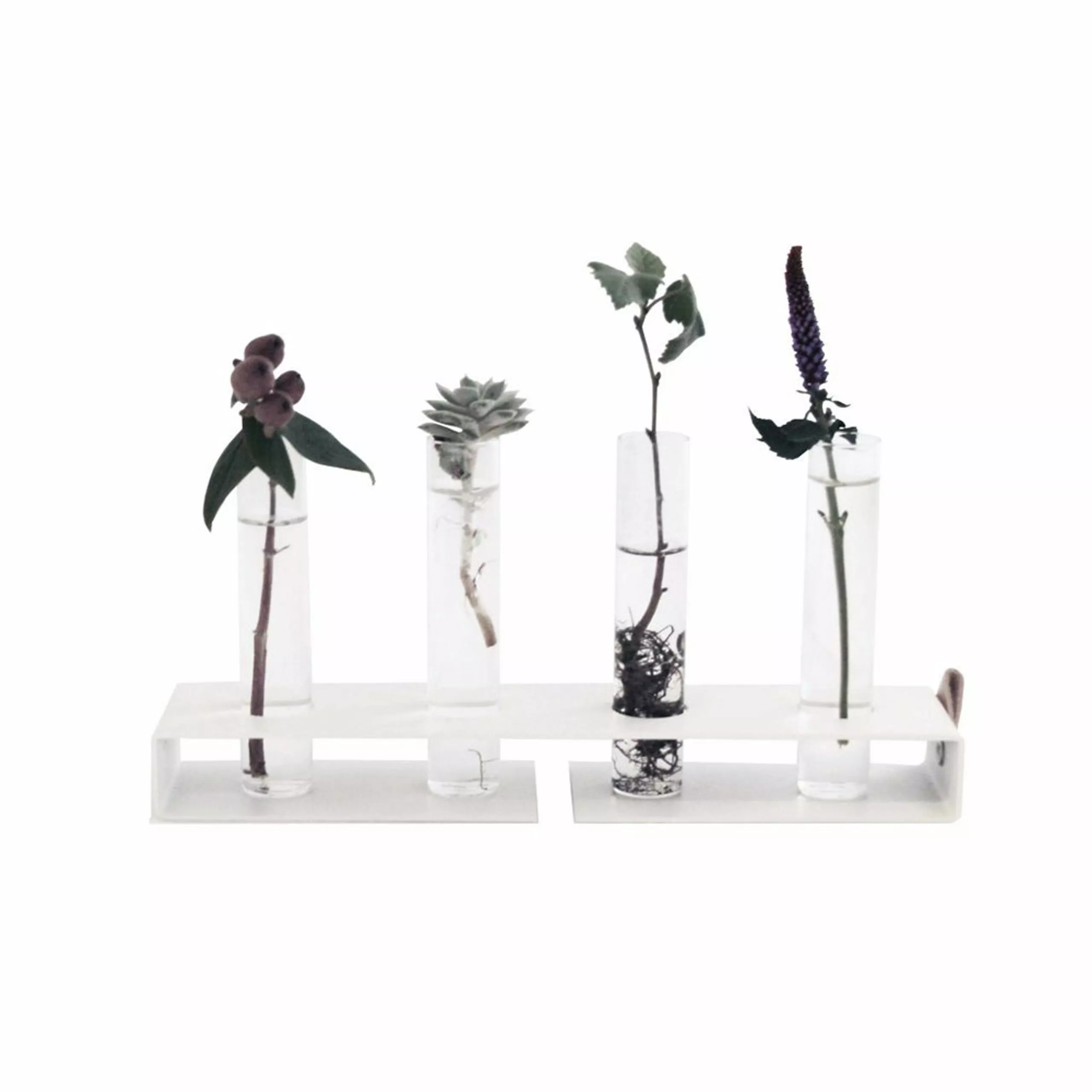 SIMPLY4 is a multifunctional product from Nordic Function. The product can be made into a vase, a candlestick, a spice holder or a coat rack. This can always be changed continuously as needed. 2 leather straps and 2 screws that can be purchased are used to hang SIMPLY4 basic on the wall and turn it into a coat rack. SIMPLY4 is made of metal and has a small leather strap on the side.