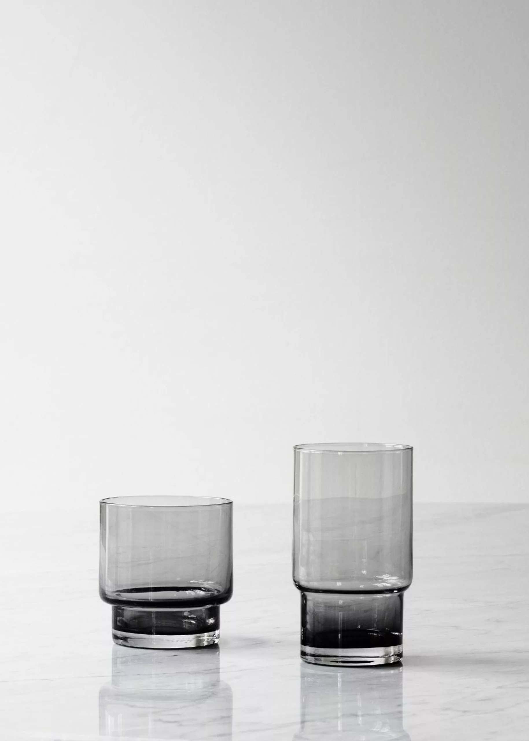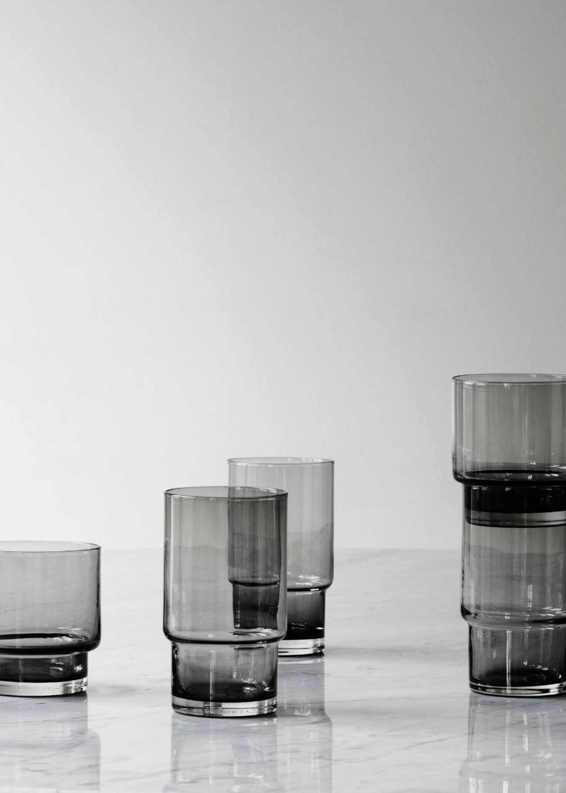 The Fit Glasses are part of Normann Copenhagen's series of glasses that are a little more than just glass. These glasses are not the standard glasses these glasses bring life to the table setting with a little colour. All the glasses in the series are not the same expression wise but they are the same size so they can be stacked. The glasses are completely unique which gives both a wild cool look on the shelf but also on the table.