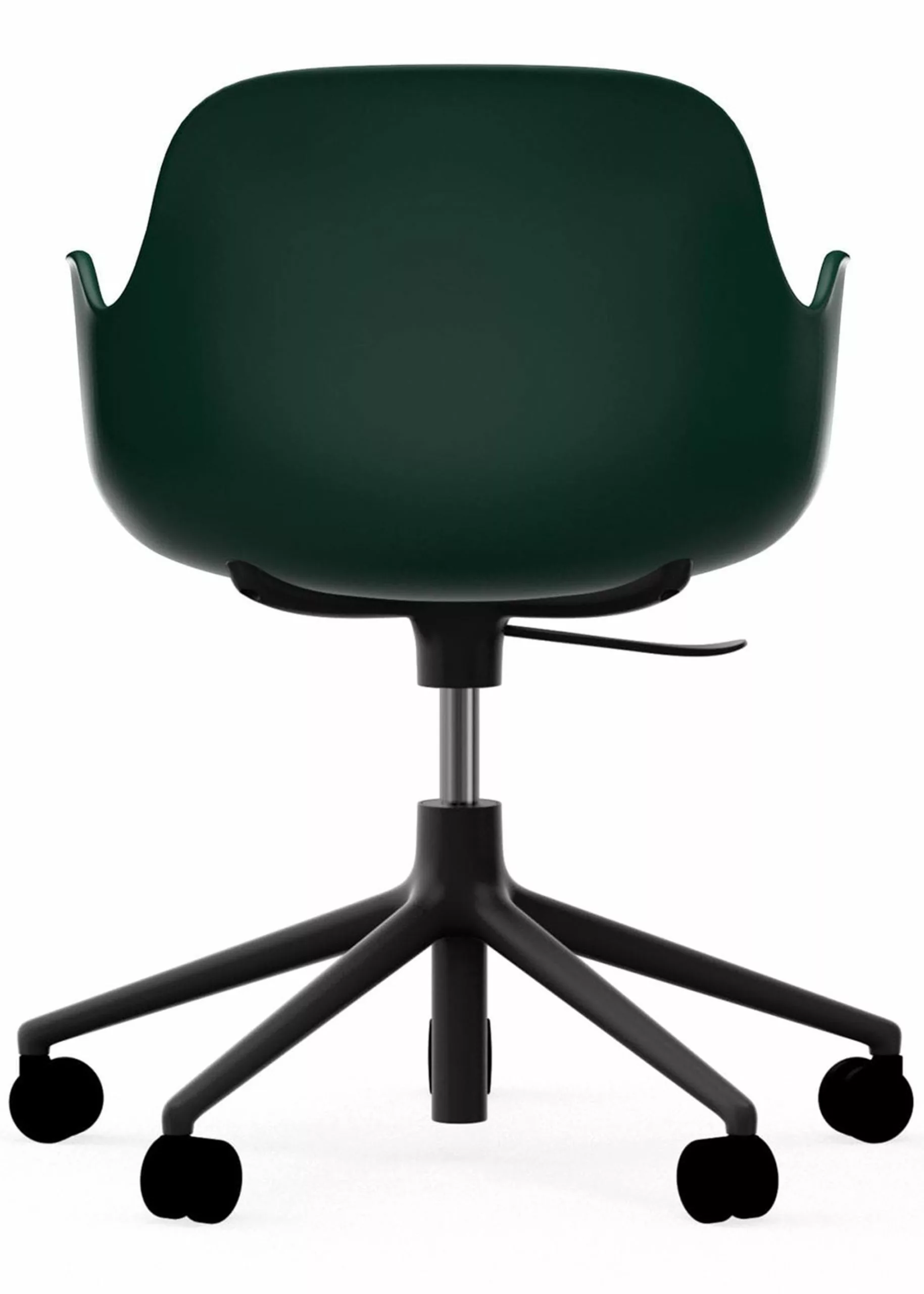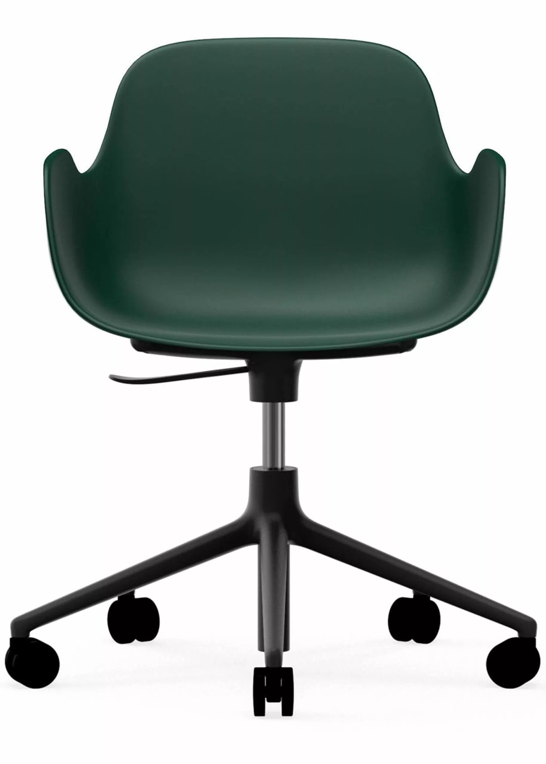 The swivel frame, made of aluminum in black, white or polished, gives the Form chair an exclusive look and a comfortable freedom of movement. This makes the chair the choice for i.a. restaurants and conference rooms. The swivel frame is available with 4 or 5 legs, which comes without or with wheels respectively.