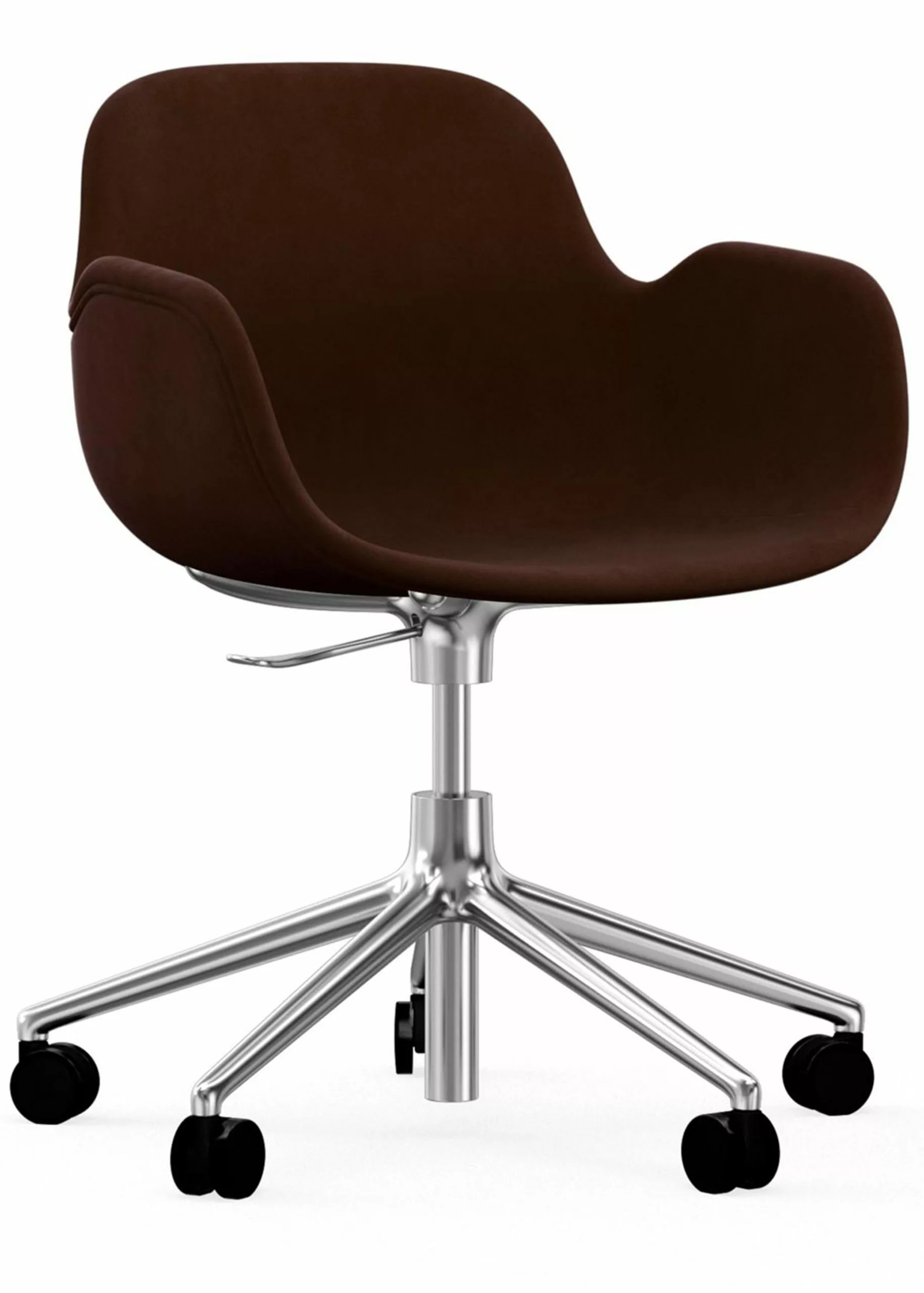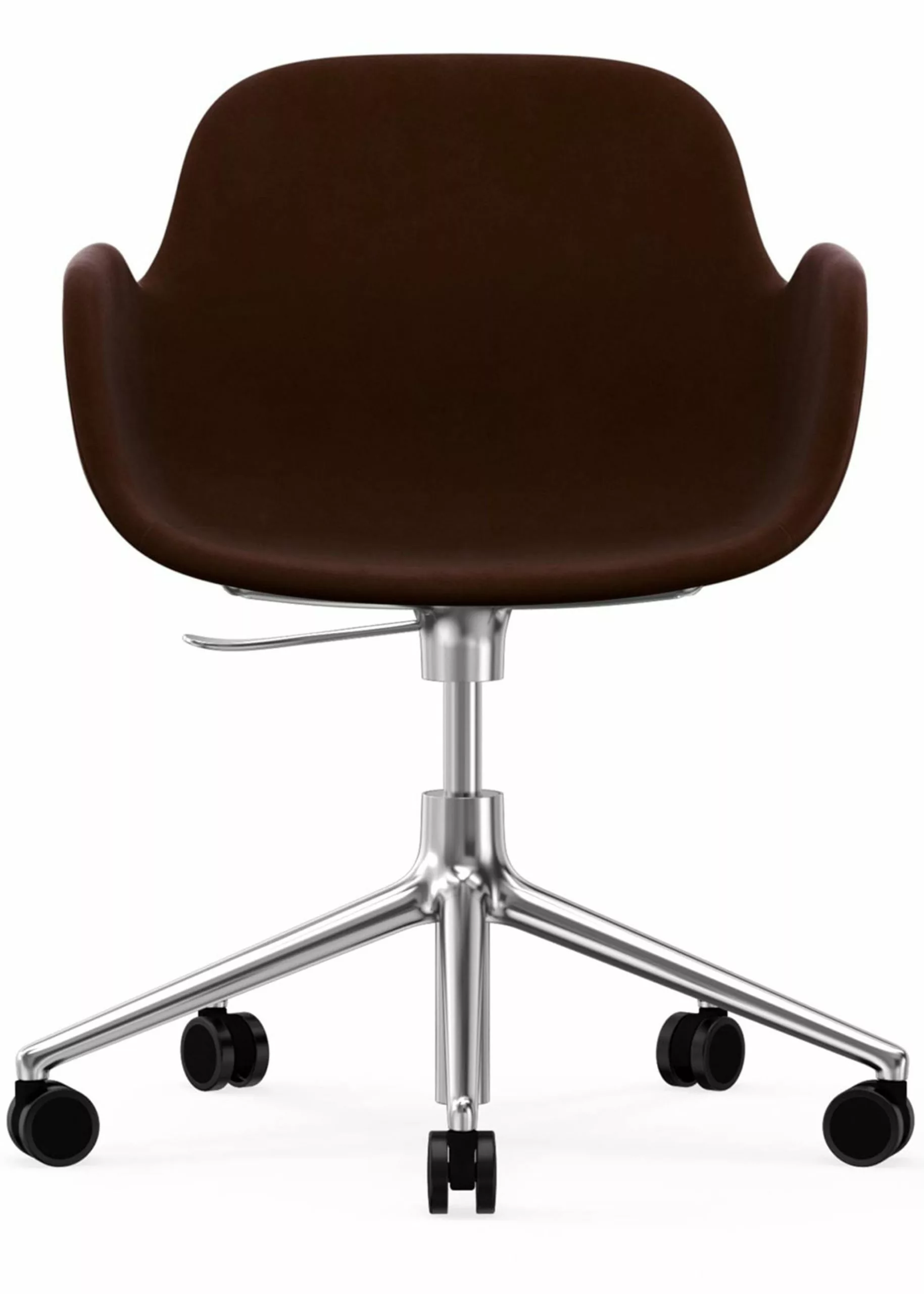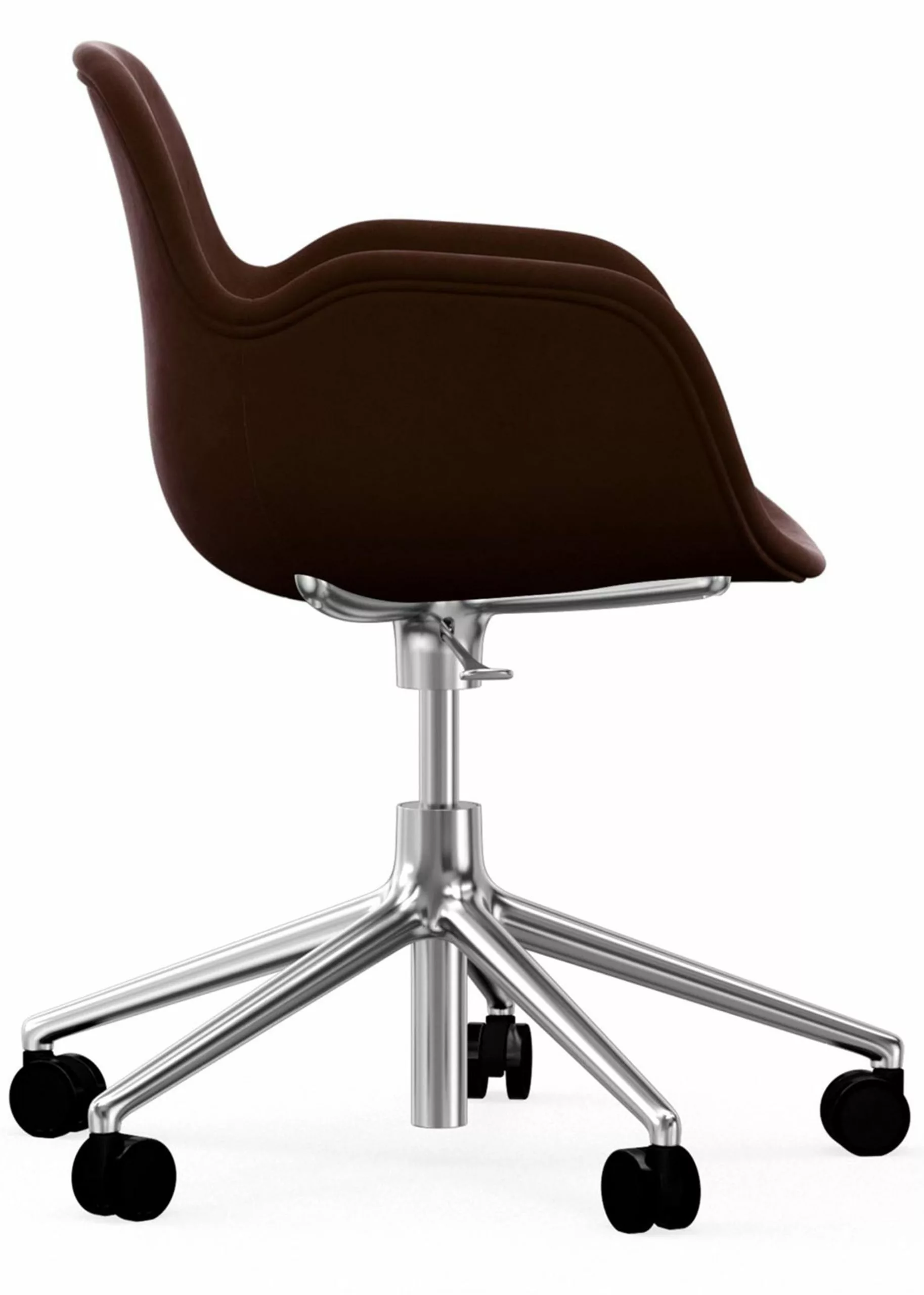 The swivel frame, made of aluminum in black, white or polished, gives the Form chair an exclusive look and a comfortable freedom of movement. This makes the chair the choice for i.a. restaurants and conference rooms. The swivel frame is available with 4 or 5 legs, which comes without or with wheels respectively.
