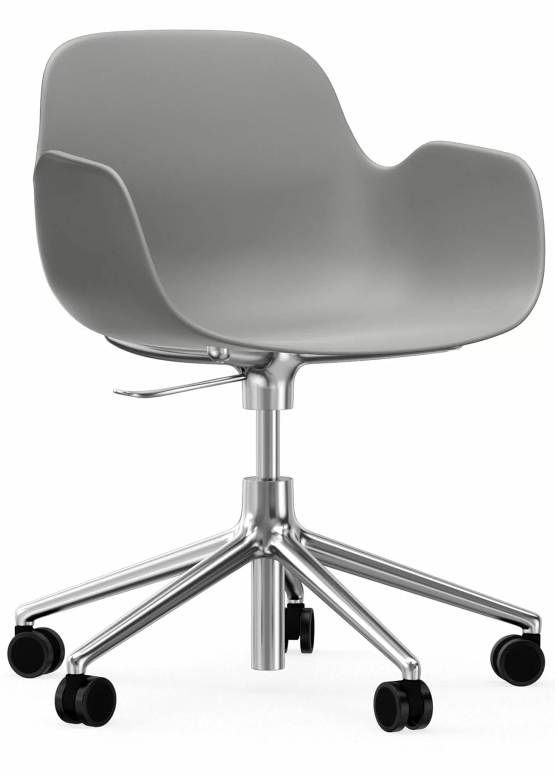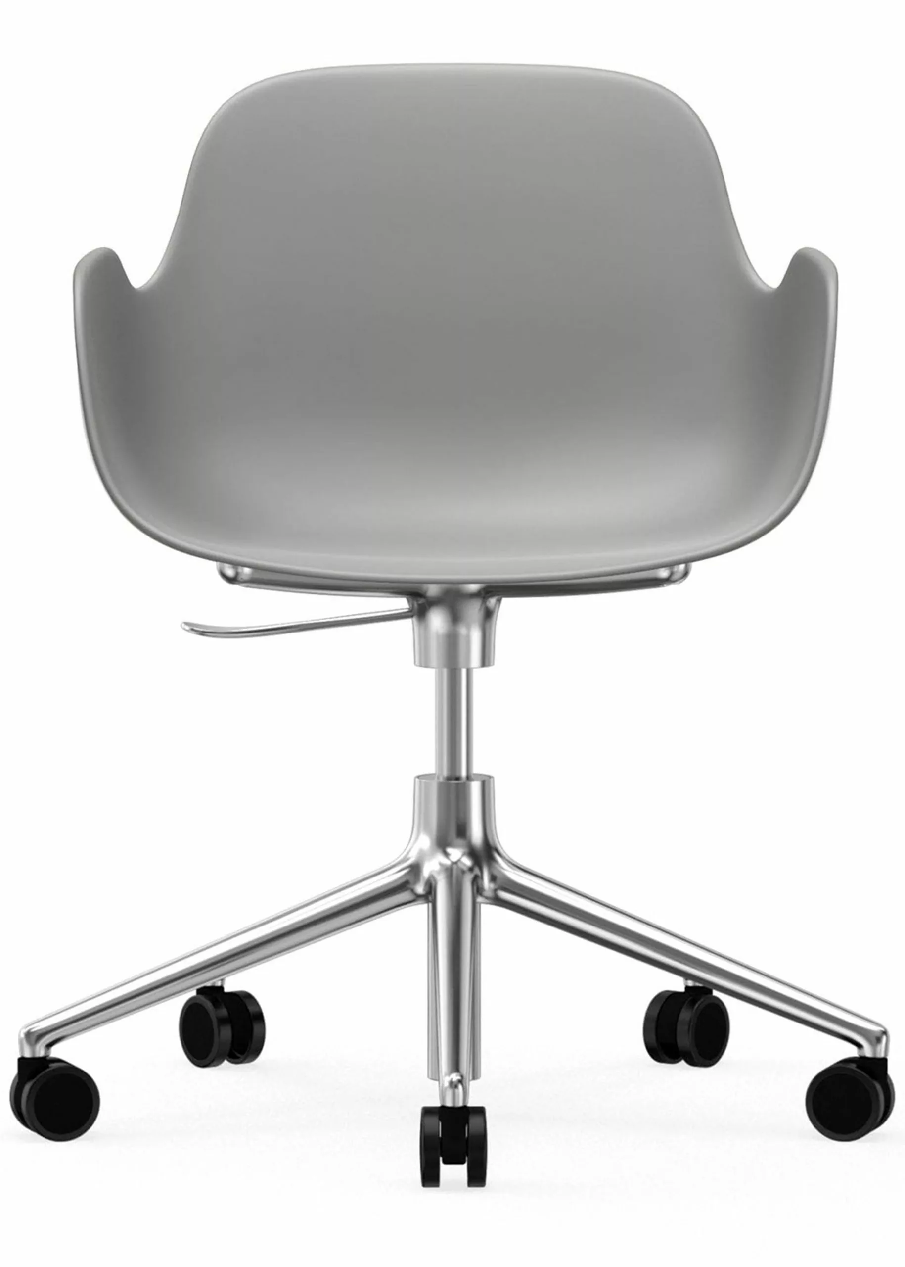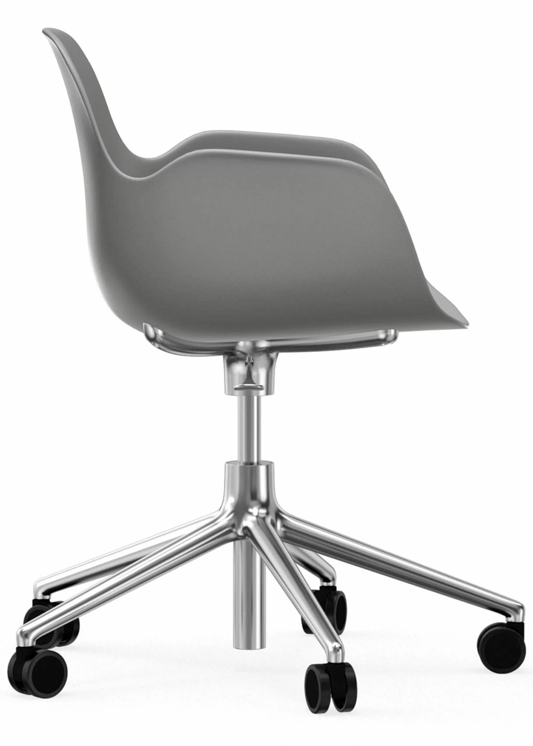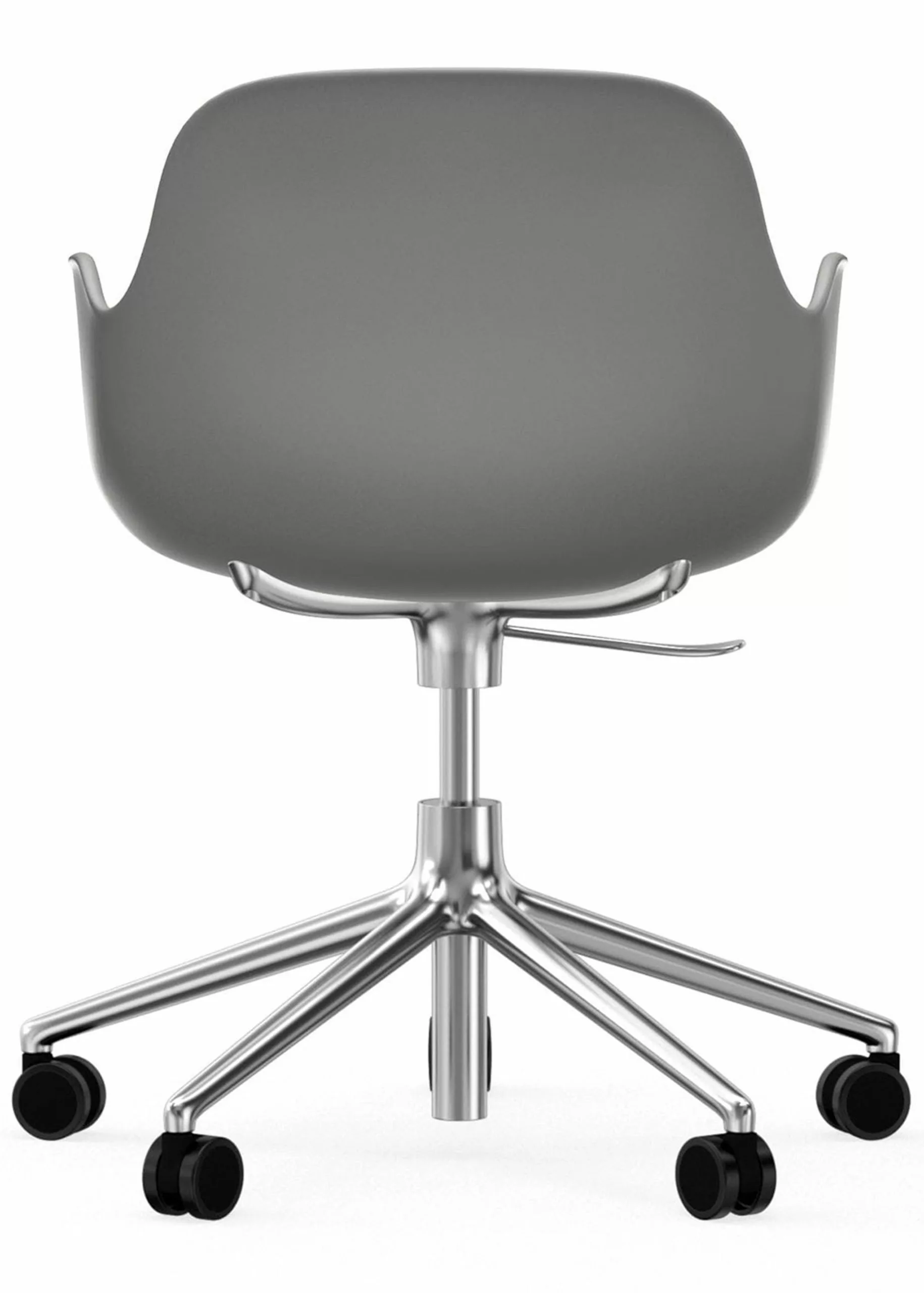 The swivel frame, made of aluminum in black, white or polished, gives the Form chair an exclusive look and a comfortable freedom of movement. This makes the chair the choice for i.a. restaurants and conference rooms. The swivel frame is available with 4 or 5 legs, which comes without or with wheels respectively.