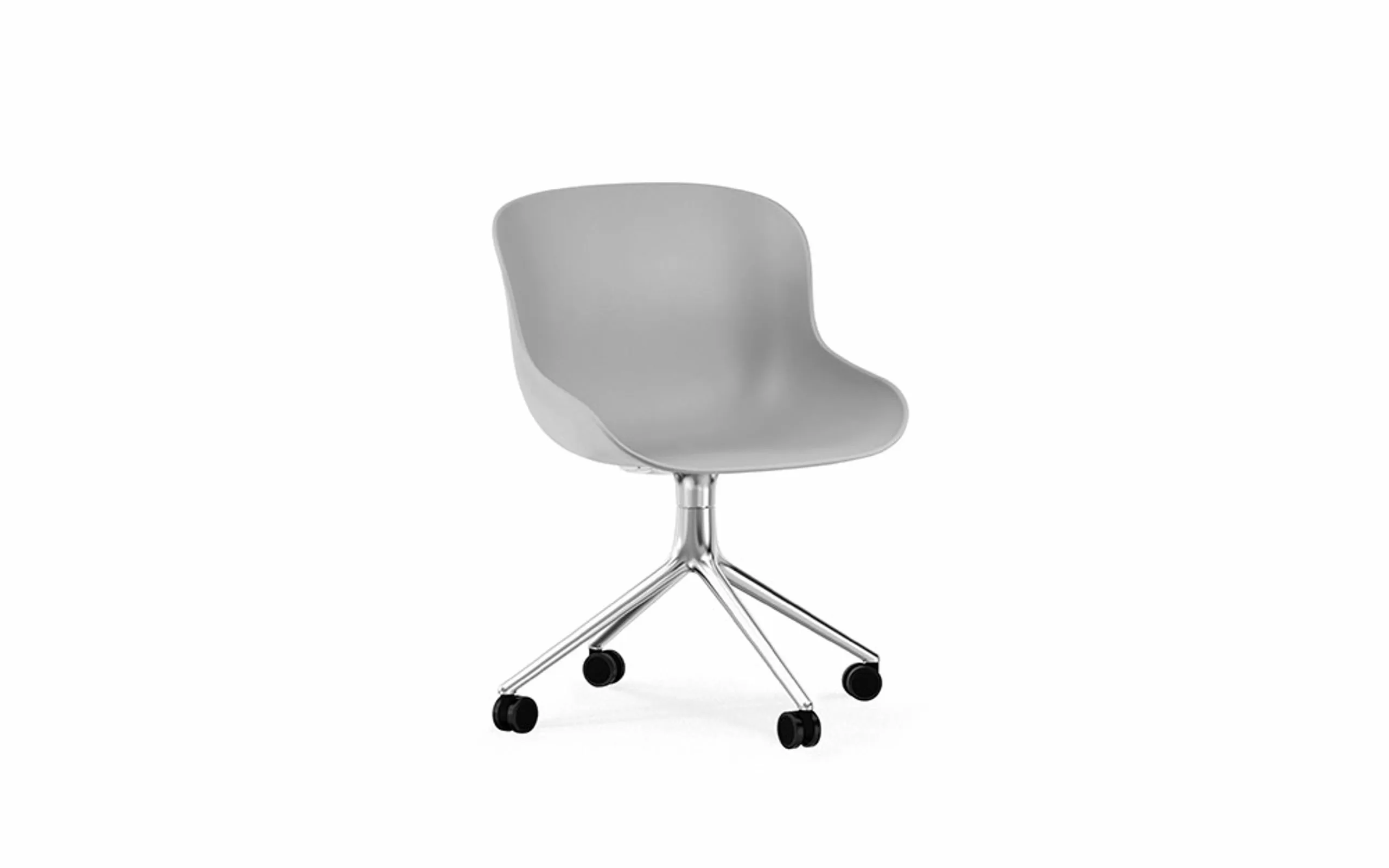 Hyg chair swivel 4W is inspired by Danish hygge, which Simon Legald has created with his furniture series Hyg. The shell of the chair is made of polypropylene, and the legs are made of aluminum and black aluminum. The Hyg chair swivel 4W and the Hyg series would like to express the moments where we sit together, immerse ourselves in conversations or share a meal together.