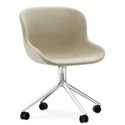 Hyg chair swivel 4W is inspired by Danish hygge, which Simon Legald has created with his furniture series Hyg. The shell of the chair is made of polypropylene, and the legs are made of aluminum and black aluminum. The Hyg chair swivel 4W and the Hyg series would like to express the moments where we sit together, immerse ourselves in conversations or share a meal together.