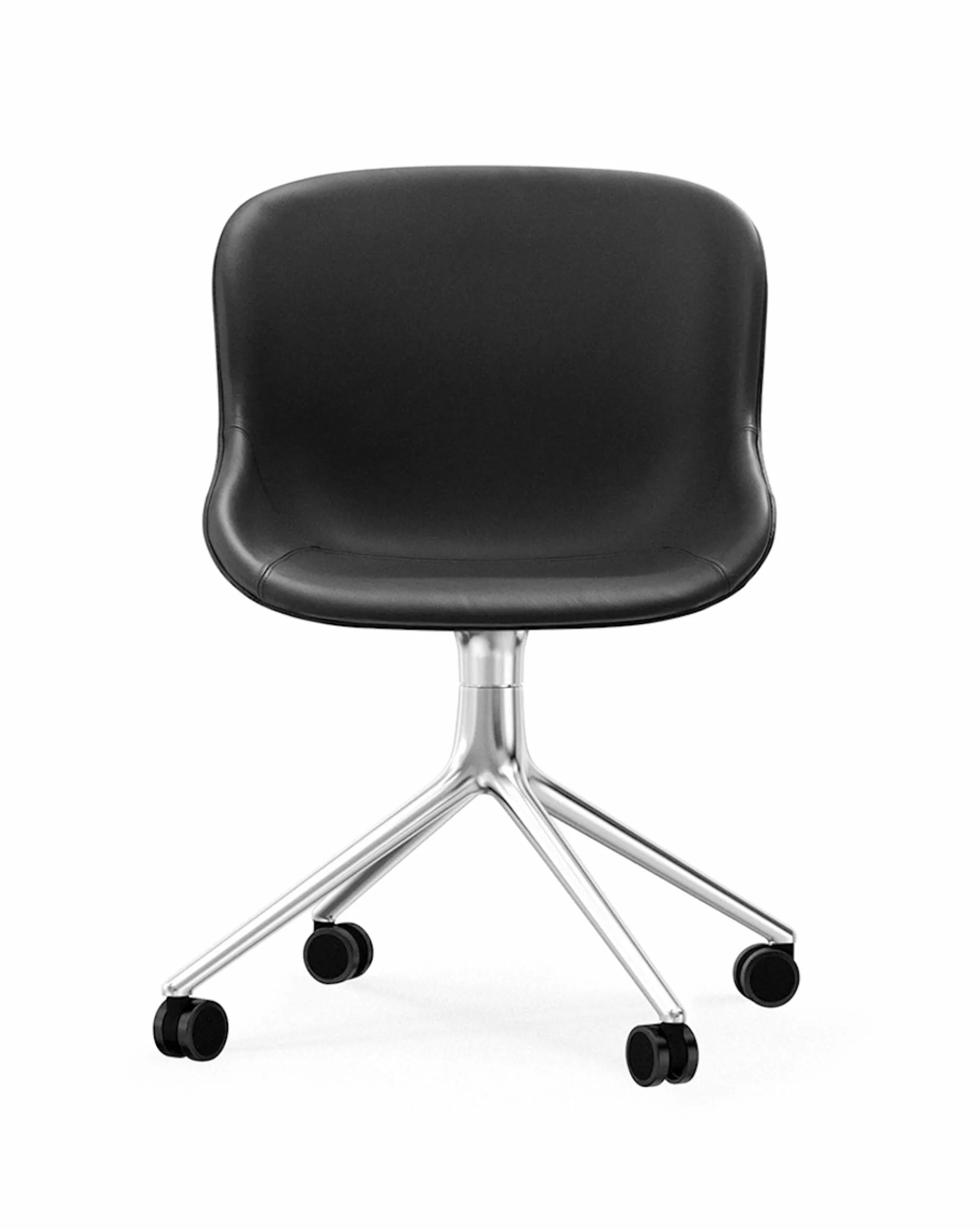 Hyg chair swivel 4W is inspired by Danish hygge, which Simon Legald has created with his furniture series Hyg. The shell of the chair is made of polypropylene, and the legs are made of aluminum and black aluminum. The Hyg chair swivel 4W and the Hyg series would like to express the moments where we sit together, immerse ourselves in conversations or share a meal together.