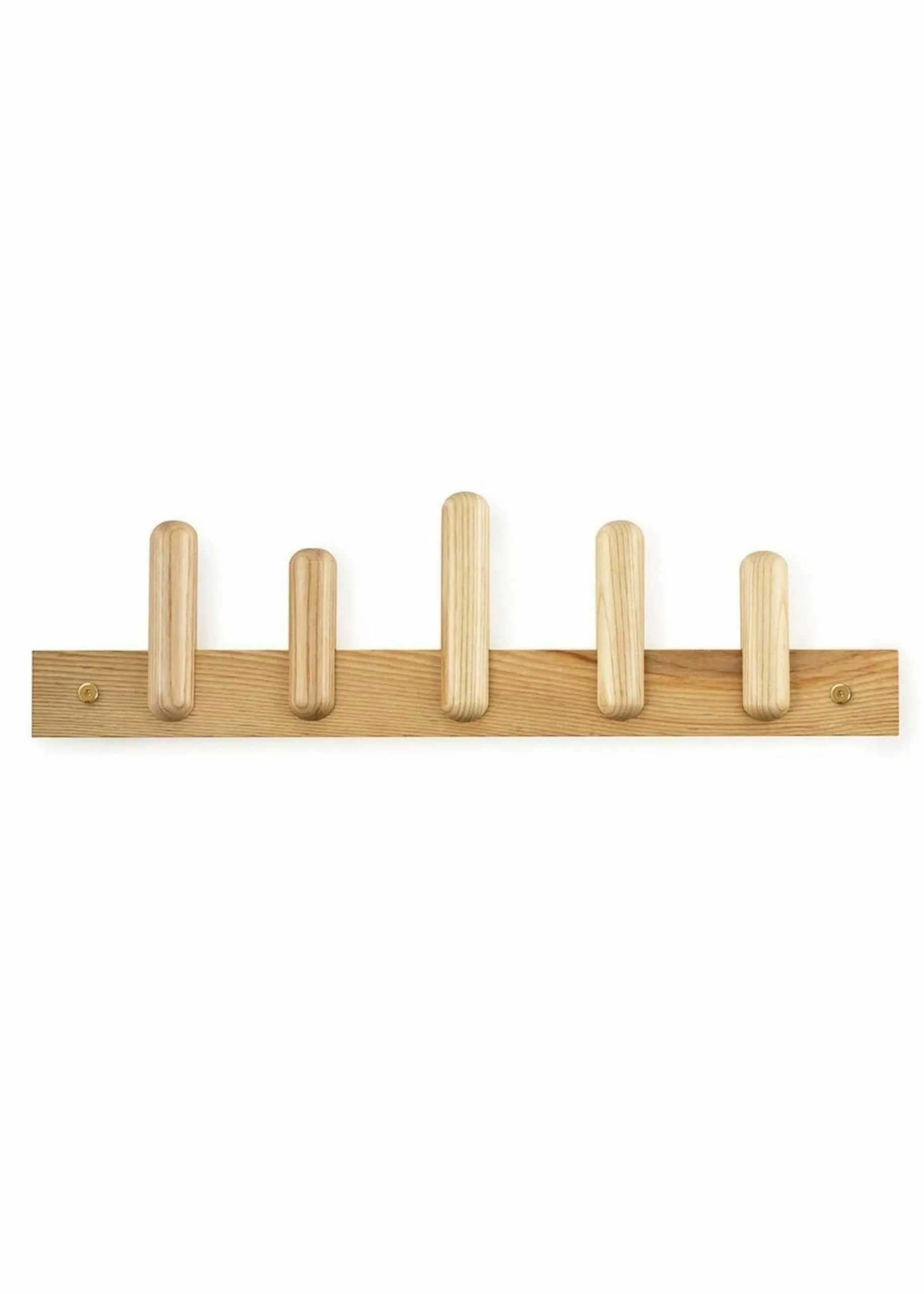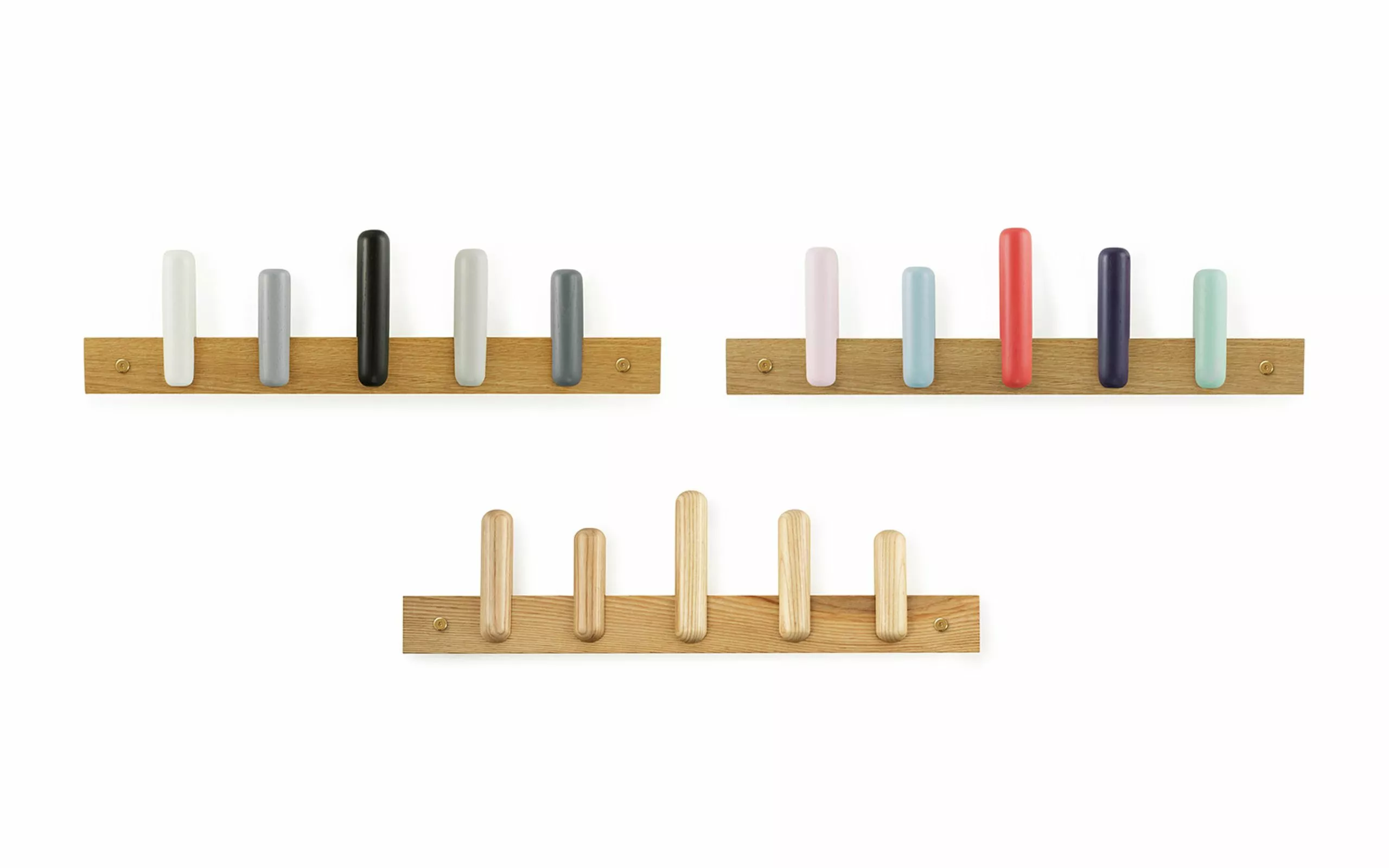 Play is a simple and functional coat rack with a playful expression designed by the Norwegian design duo Gridy. The coat rack is made of oak with rounded sticks in different lengths and colors. With its characterful and eye-catching design, Play is a decorative addition to walls in any room in the home. The inspiration for the placement of the sticks is taken from the small players on table football tables. Play has an honest, straightforward design and is intuitive to use. The vein structure of the wood stands out clearly, and the natural materials give warmth and life to the product. The charming coat rack invites you to hang jackets, coats, hats and scarves. The soft shapes make Play gentle on clothes. Play comes in two delicate color variations with hooks in a mix of inviting pastels or cool shades of gray. In addition, a version in natural oak. The coat rack is easy to set up and is suitable for the whole family, where each member can have his own coat.